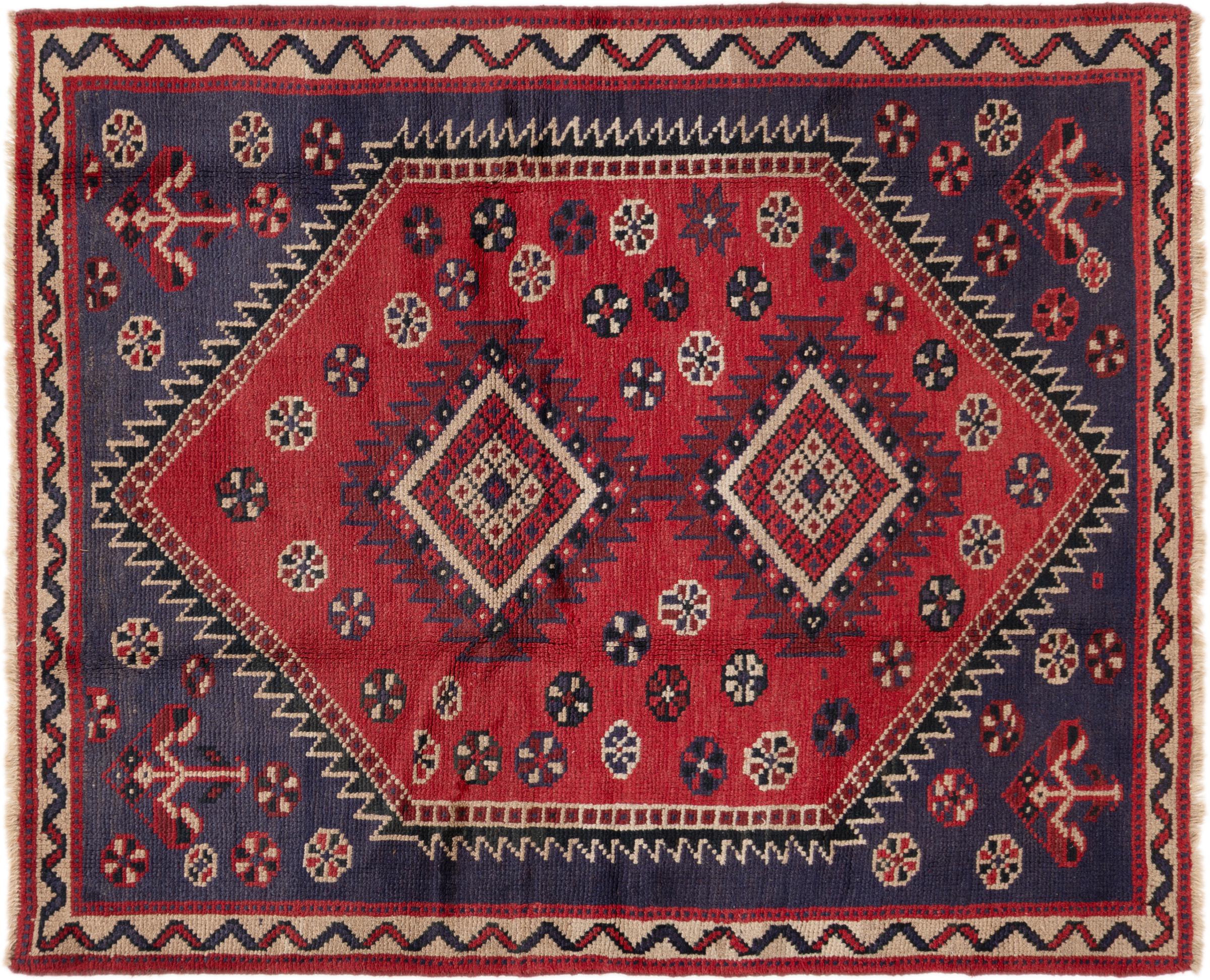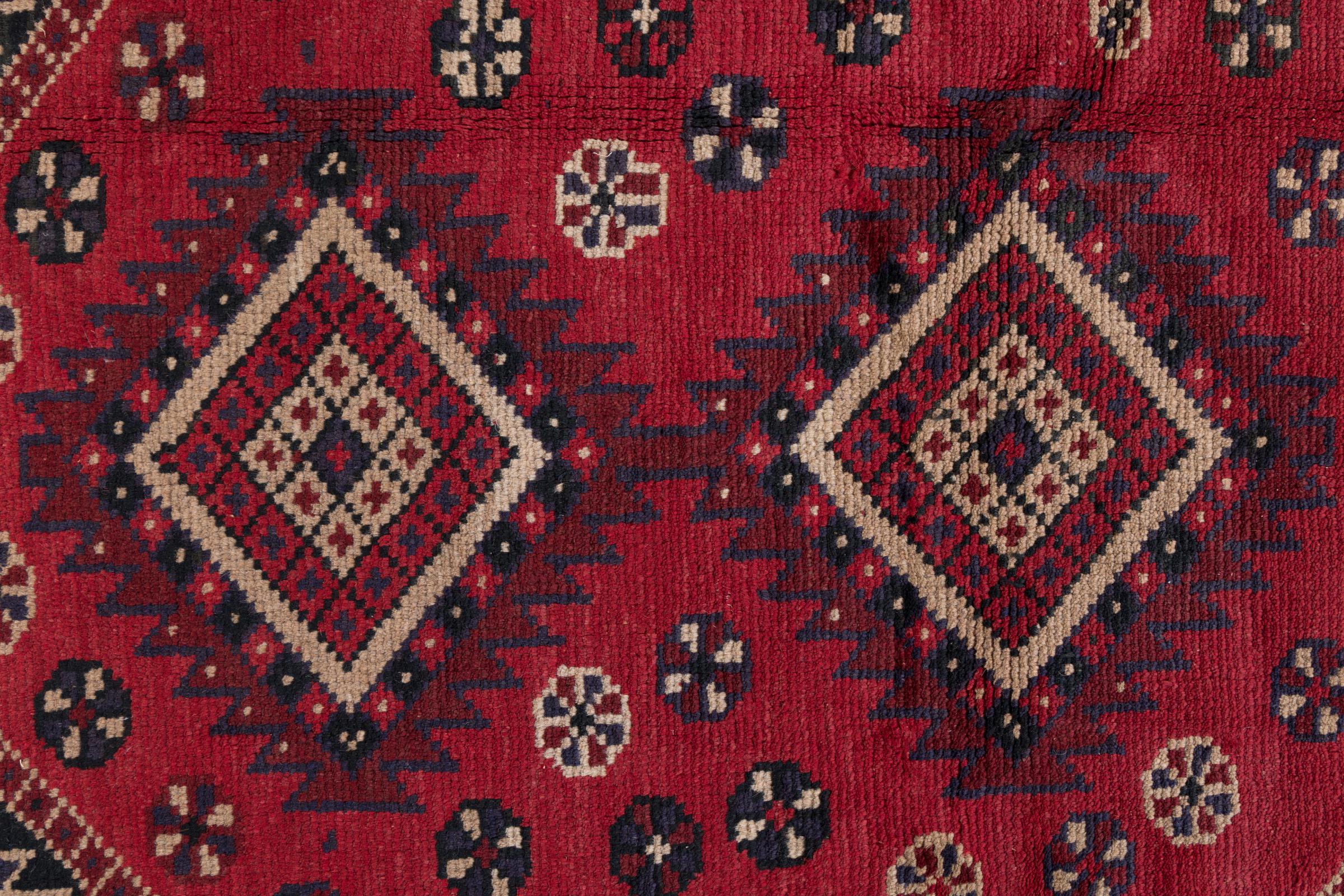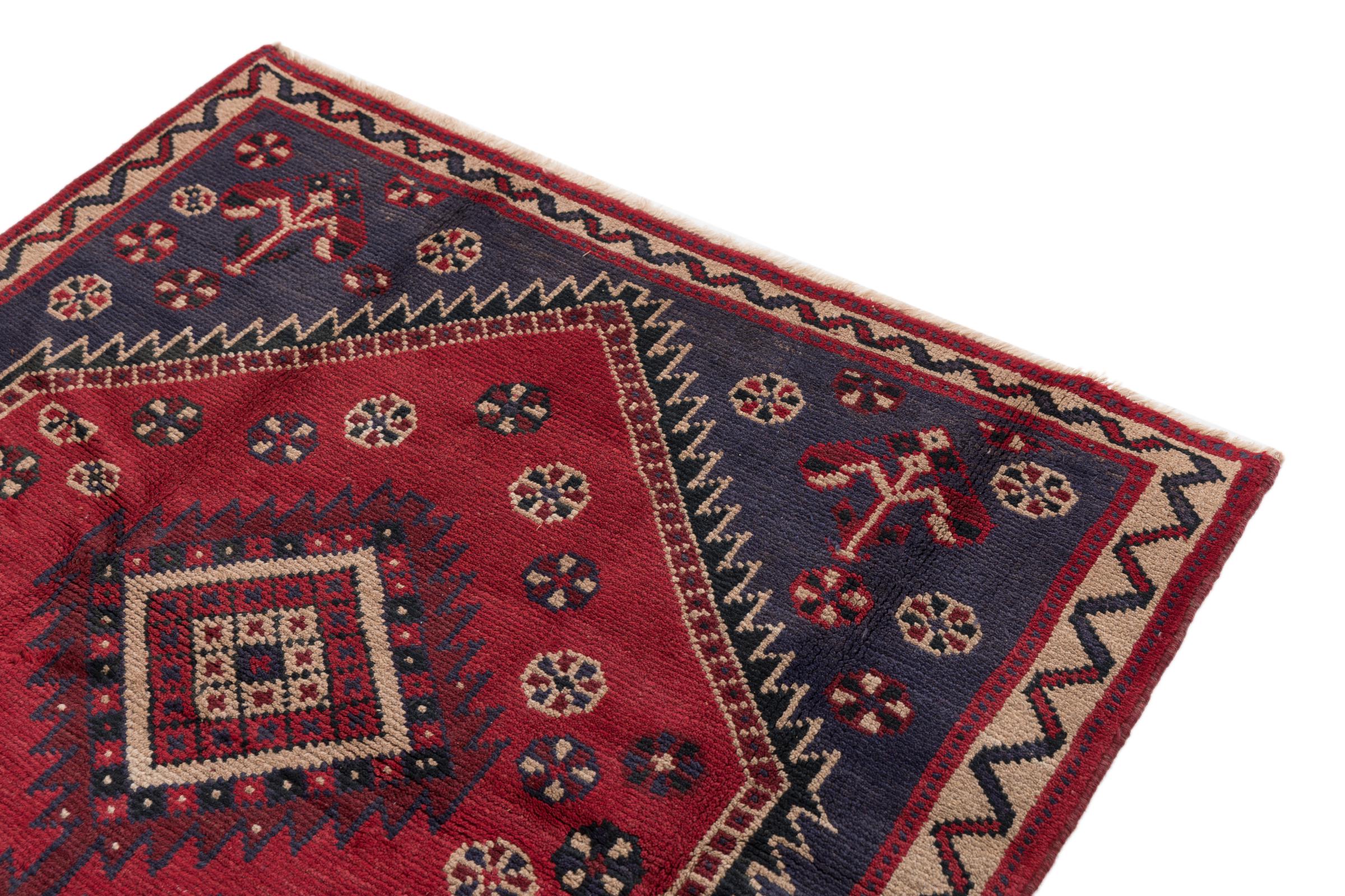 This rug belongs to village and nomadic rugs from Iran, formerly Persia. This type of rug is knotted by hand in smaller towns and villages in old tradition. Even nomads still knot Persian rugs in the open air. The rugs are knotted without a draft and completely from the mind. They are characterized by classical ornaments, which are arranged in straight and geometrical patterns. Thanks to their cultural-traditional origin, these rugs have a unique character that embodies ancient Persia.