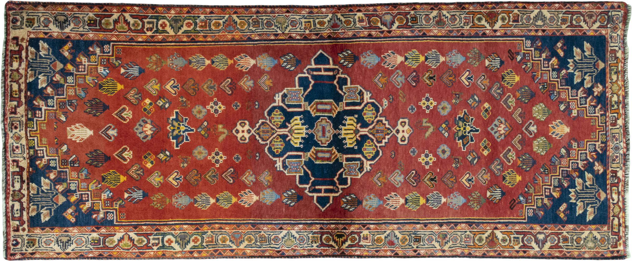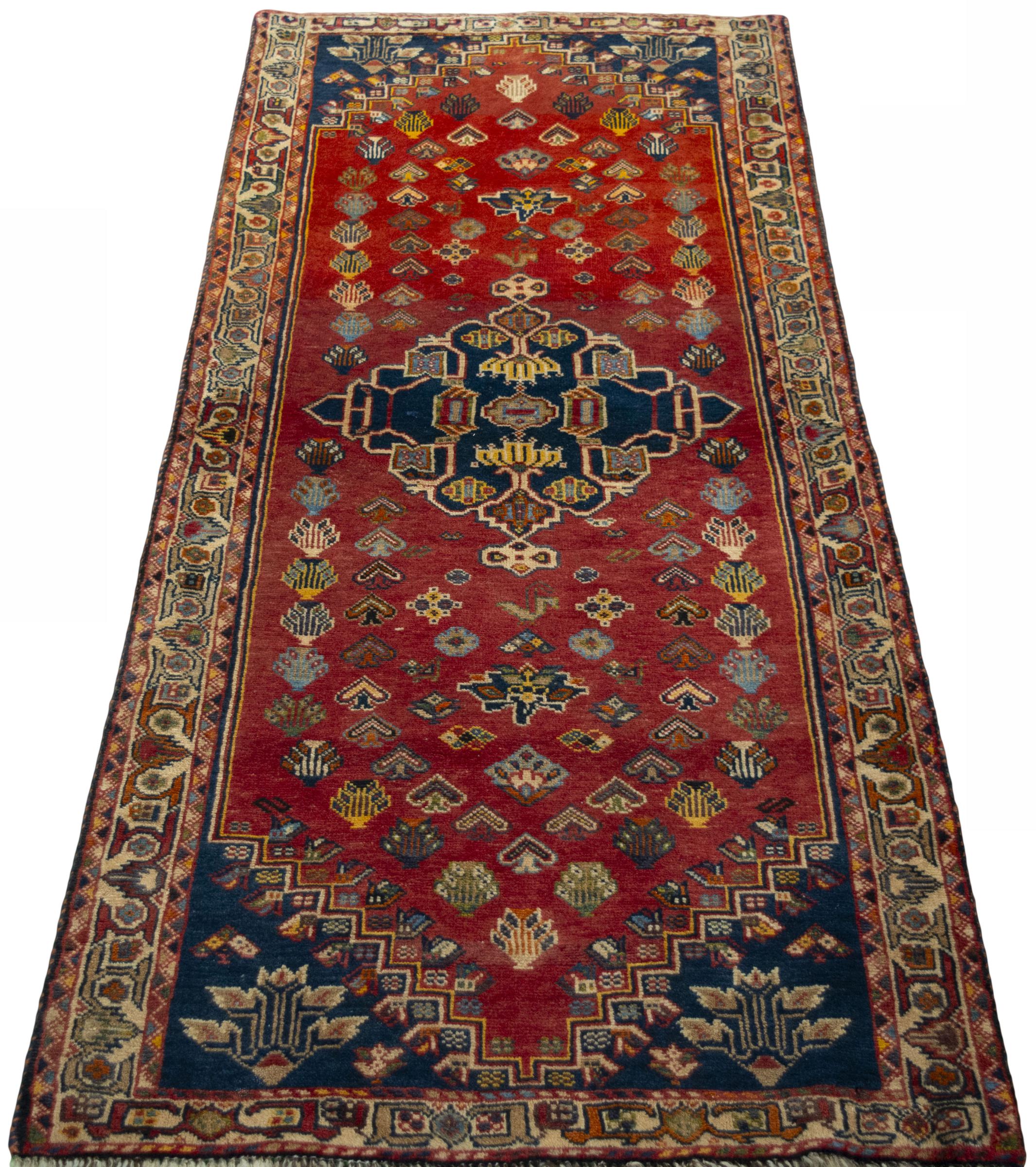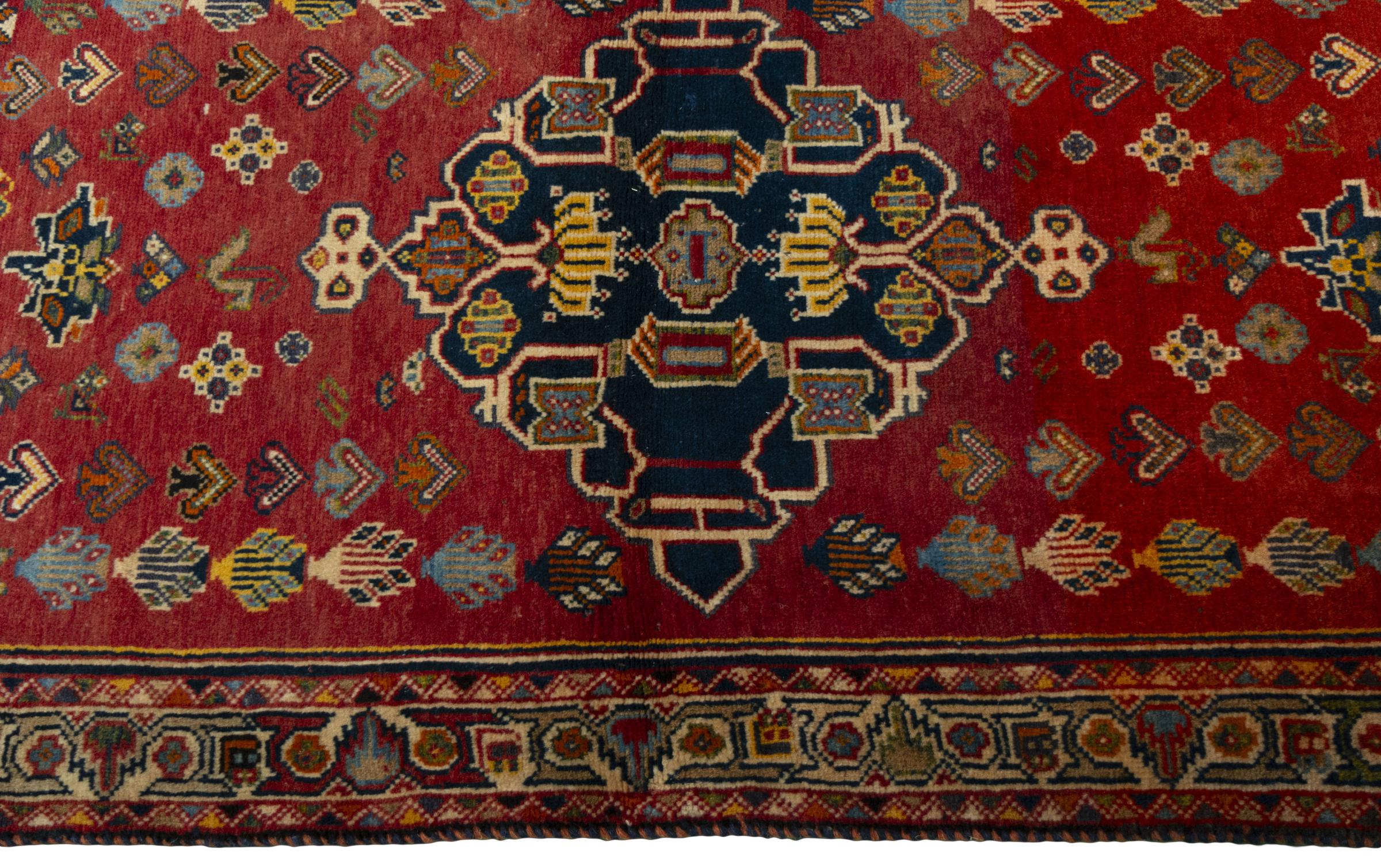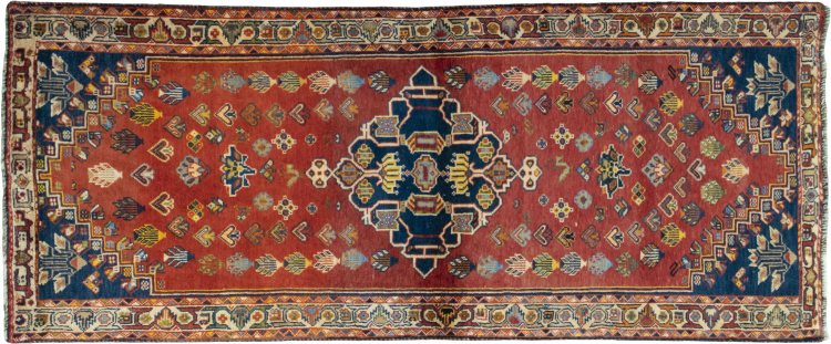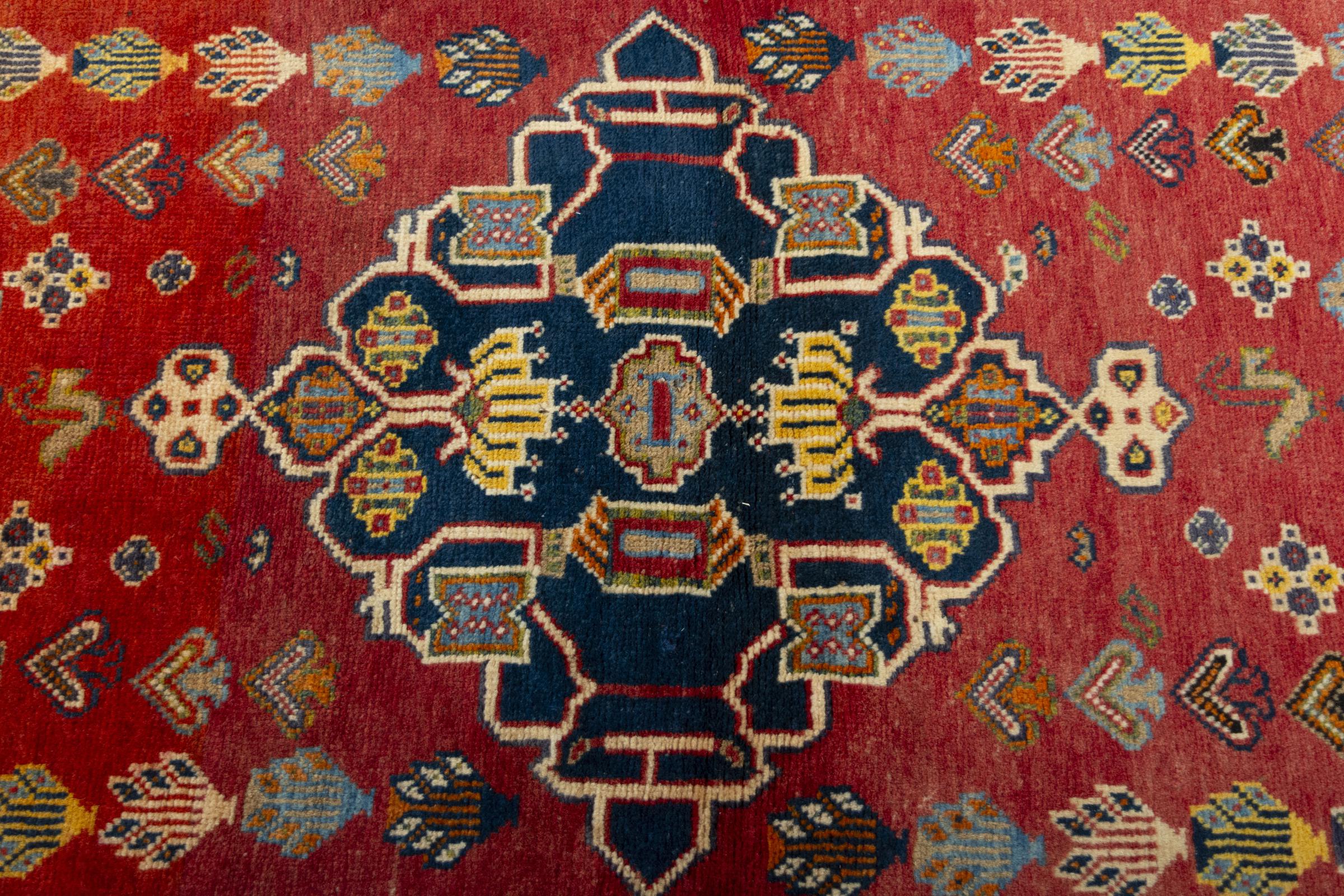 This rug belongs to village and nomadic rugs from Iran, formerly Persia. This type of rug is knotted by hand in smaller towns and villages in old tradition. Even nomads still knot Persian rugs in the open air. The rugs are knotted without a draft and completely from the mind. They are characterized by classical ornaments, which are arranged in straight and geometrical patterns. Thanks to their cultural-traditional origin, these rugs have a unique character that embodies ancient Persia.