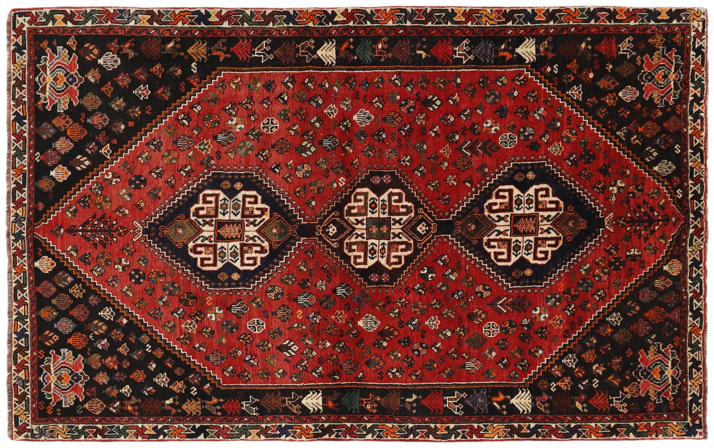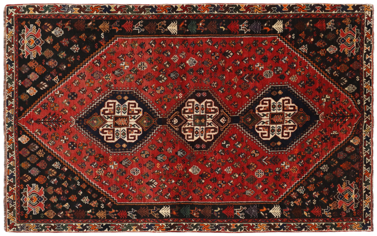 This Shiraz carpet reflects the handicraft of Nomads from the province Fars. Its simple design, the beautiful colours and the good quality convince without any doubt. Their geometric patterns make them the most modern pieces for scandinavian interior concepts. If you like Persian carpets, you will love Shiraz carpets.