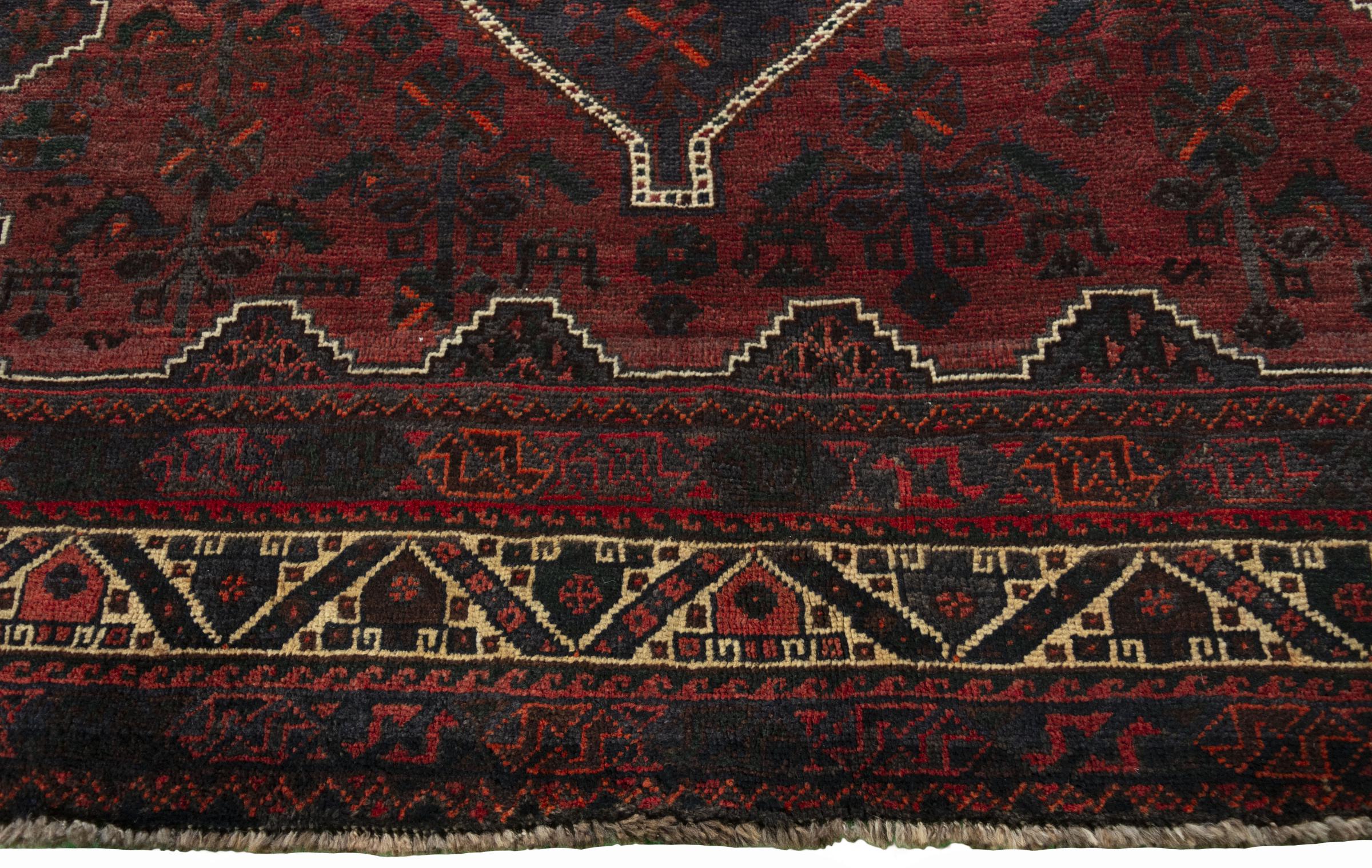 This rug belongs to village and nomadic rugs from Iran, formerly Persia. This type of rug is knotted by hand in smaller towns and villages in old tradition. Even nomads still knot Persian rugs in the open air. The rugs are knotted without a draft and completely from the mind. They are characterized by classical ornaments, which are arranged in straight and geometrical patterns. Thanks to their cultural-traditional origin, these rugs have a unique character that embodies ancient Persia.