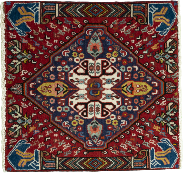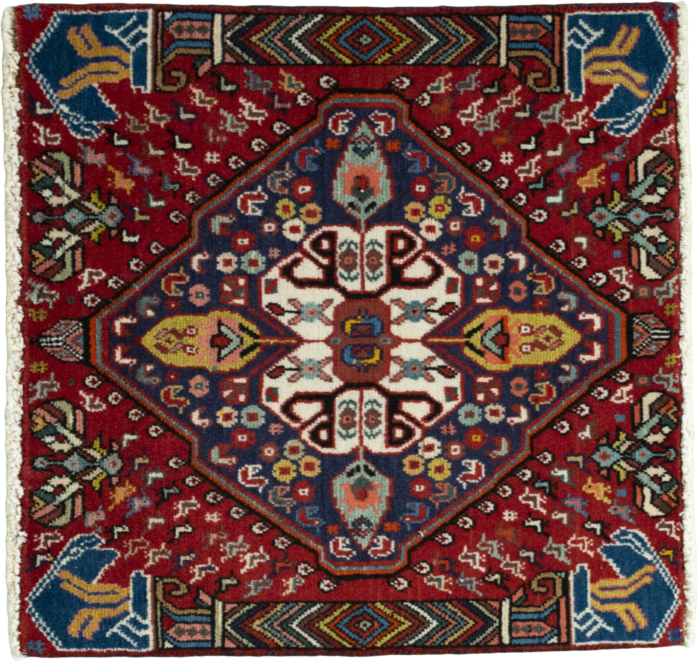 Carpet ID: 285594001548803 Size: 54x53 cm Thickness: ap. 10 mm Knot density: 96 000 - 120 000 / m² Manufacturing: Knotted by hand Pile: Handspun wool Warp: Cotton Origin: Persia Age: New Weight: ap. 1 kg In stock: Unique - Only 1 in stock