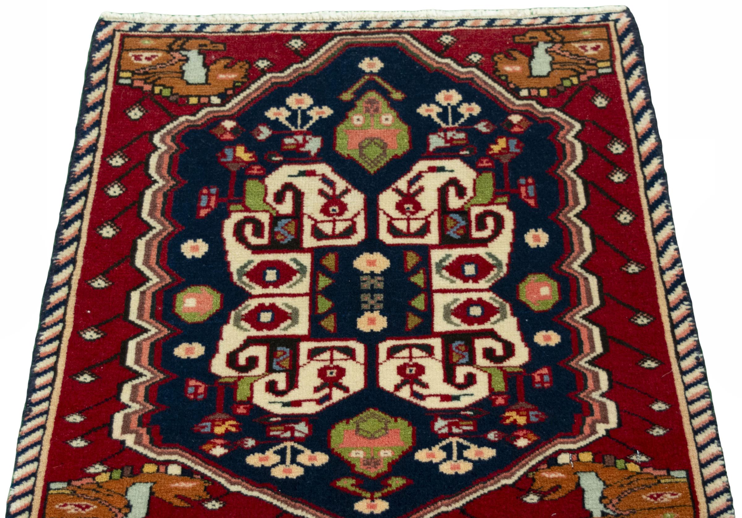 This rug belongs to village and nomadic rugs from Iran, formerly Persia. This type of rug is knotted by hand in smaller towns and villages in old tradition. Even nomads still knot Persian rugs in the open air. The rugs are knotted without a draft and completely from the mind. They are characterized by classical ornaments, which are arranged in straight and geometrical patterns. Thanks to their cultural-traditional origin, these rugs have a unique character that embodies ancient Persia.