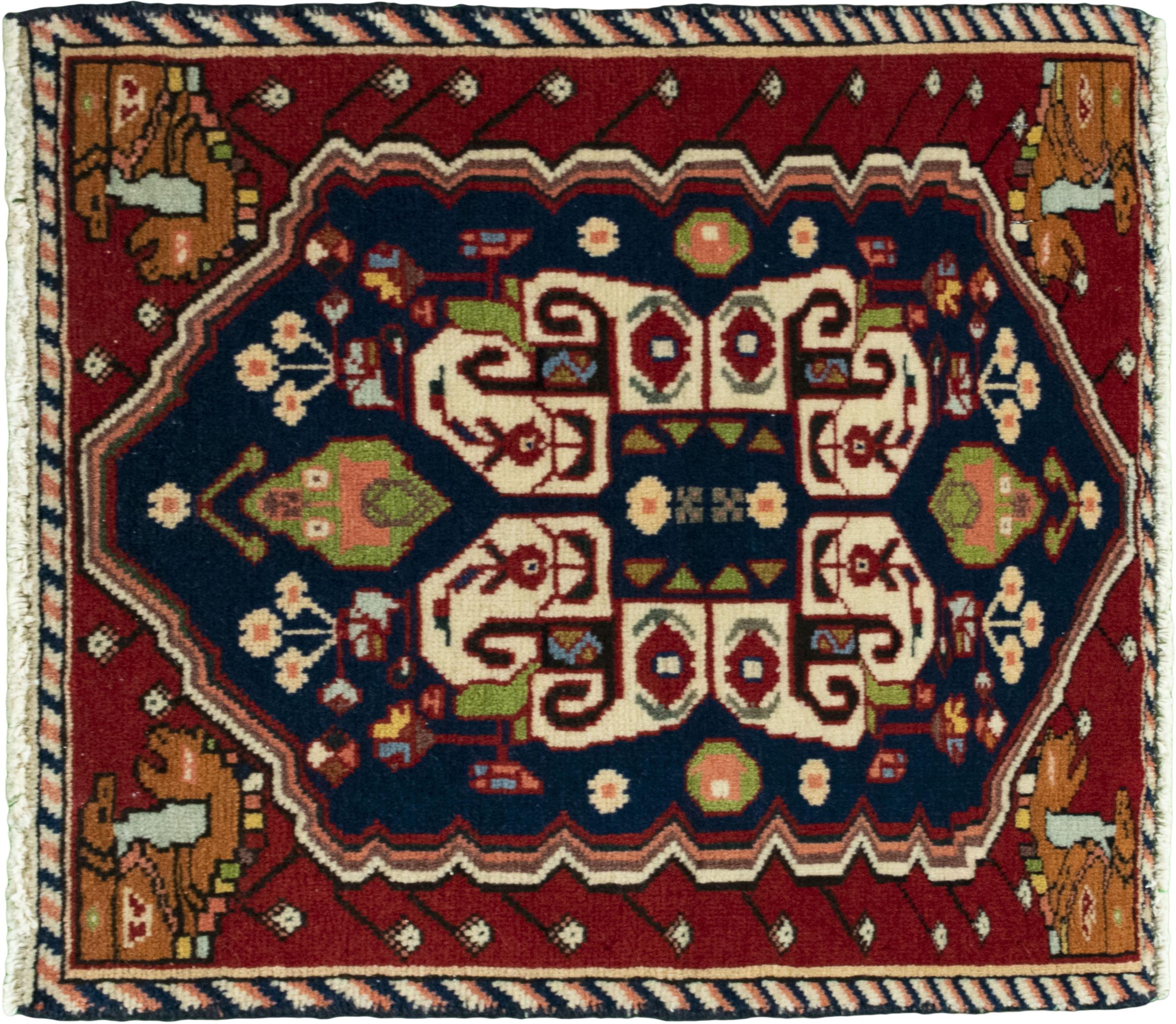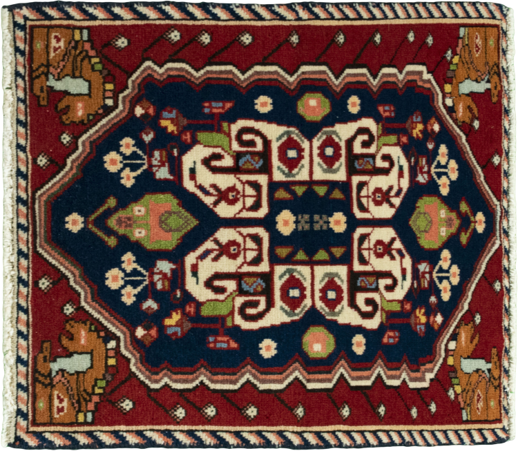 Carpet ID: 285576006042240 Size: 55x52 cm Thickness: ap. 10 mm Knot density: 96 000 - 120 000 / m² Manufacturing: Knotted by hand Pile: Handspun wool Warp: Cotton Origin: Persia Age: New Weight: ap. 1 kg In stock: Unique - Only 1 in stock
