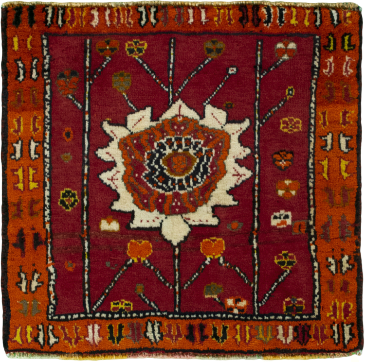 Carpet ID: 285701001371322 Size: 56x59 cm Thickness: ap. 10 mm Knot density: 96 000 - 120 000 / m² Manufacturing: Knotted by hand Pile: Handspun wool Warp: Cotton Origin: Persia Age: New Weight: ap. 1 kg In stock: Unique - Only 1 in stock