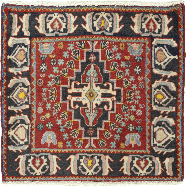 Carpet ID: 285334005059488 Size: 58x64 cm Thickness: ap. 10 mm Knot density: 96 000 - 120 000 / m² Manufacturing: Knotted by hand Pile: Handspun wool Warp: Cotton Origin: Persia Age: New Weight: ap. 1 kg In stock: Unique - Only 1 in stock
