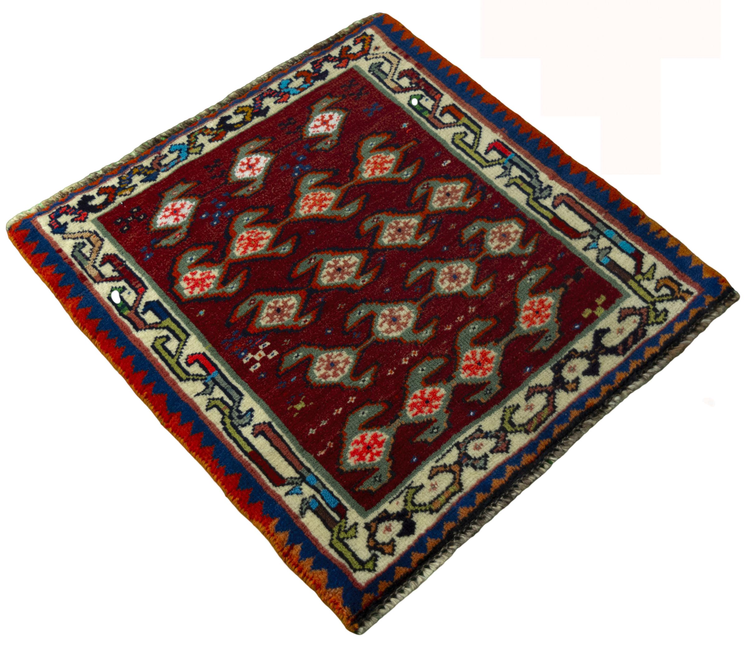 Carpet ID: 285920009610523 Size: 61x59 cm Thickness: ap. 10 mm Knot density: 96 000 - 120 000 / m² Manufacturing: Knotted by hand Pile: Handspun wool Warp: Cotton Origin: Persia Age: New Weight: ap. 1 kg In stock: Unique - Only 1 in stock