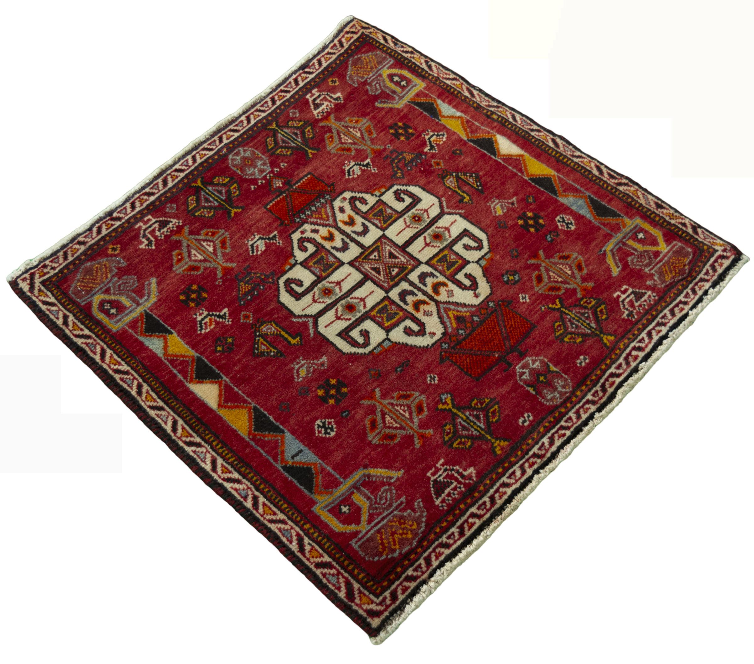 Carpet ID: 285706005839874 Size: 61x65 cm Thickness: ap. 10 mm Knot density: 96 000 - 120 000 / m² Manufacturing: Knotted by hand Pile: Handspun wool Warp: Cotton Origin: Persia Age: New Weight: ap. 1 kg In stock: Unique - Only 1 in stock