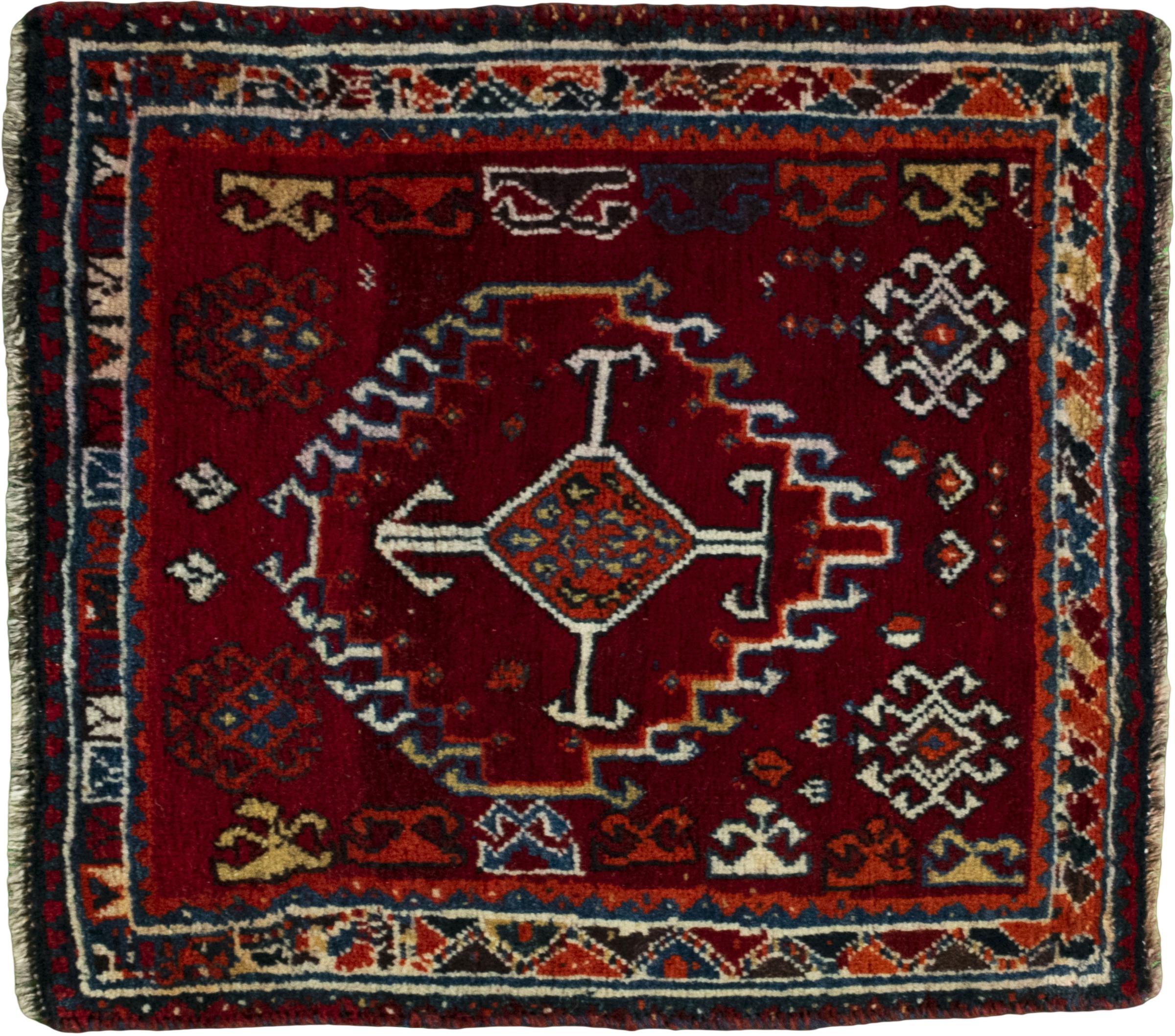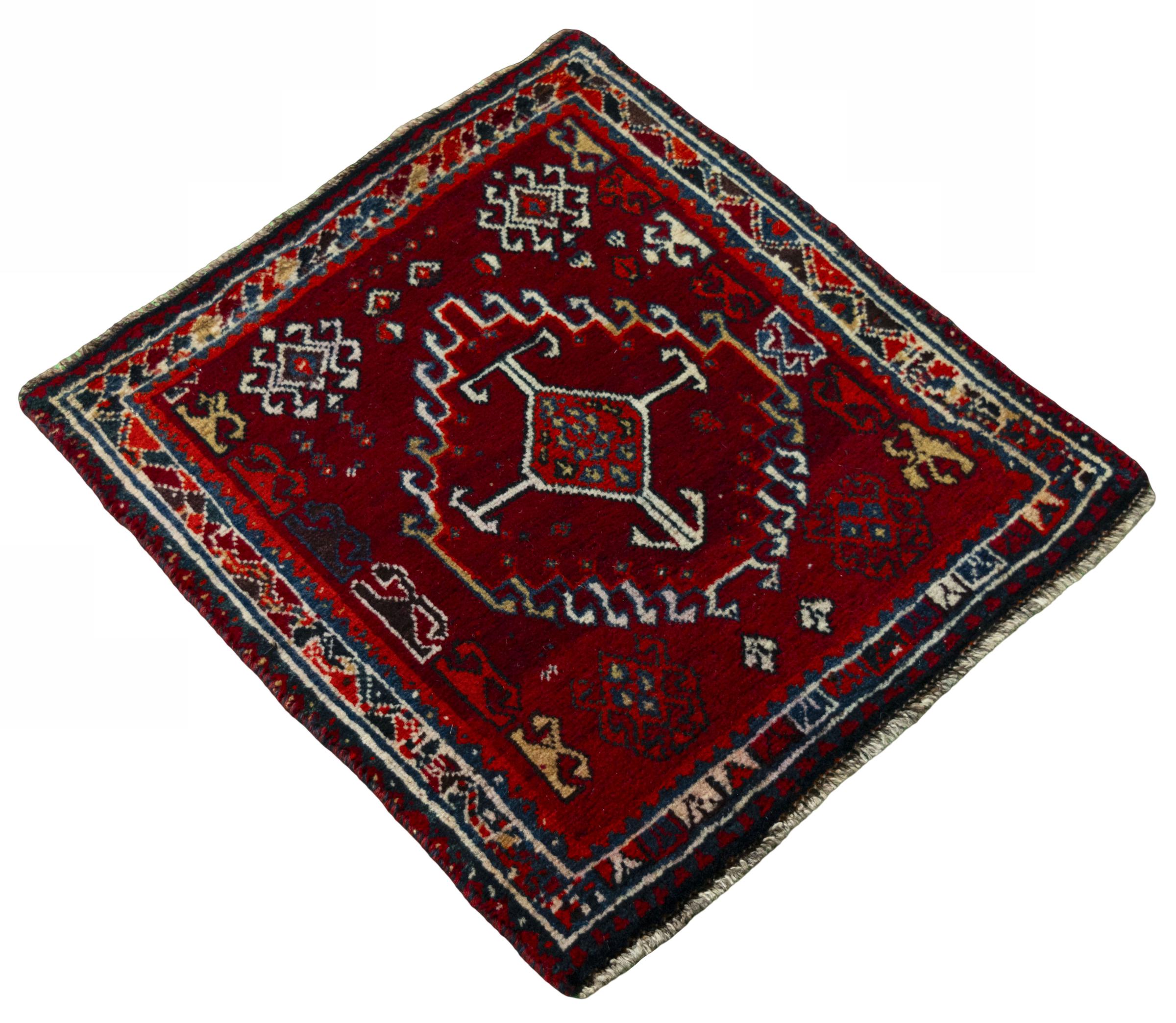 Carpet ID: 286012009957527 Size: 63x59 cm Thickness: ap. 10 mm Knot density: 96 000 - 120 000 / m² Manufacturing: Knotted by hand Pile: Handspun wool Warp: Cotton Origin: Persia Age: New Weight: ap. 1 kg In stock: Unique - Only 1 in stock