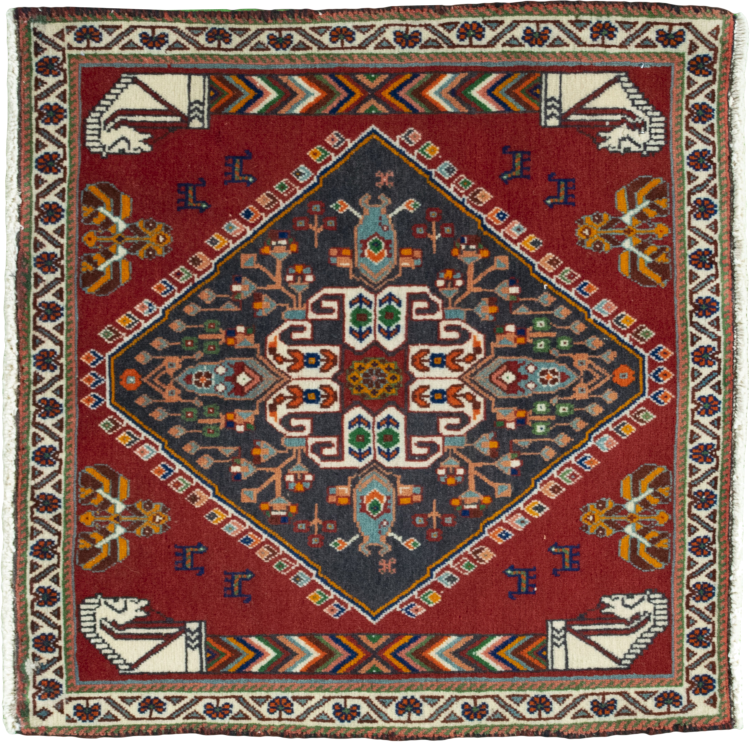 Carpet ID: 285725009035772 Size: 66x67 cm Thickness: ap. 10 mm Knot density: 96 000 - 120 000 / m² Manufacturing: Knotted by hand Pile: Handspun wool Warp: Cotton Origin: Persia Age: New Weight: ap. 2 kg In stock: Unique - Only 1 in stock