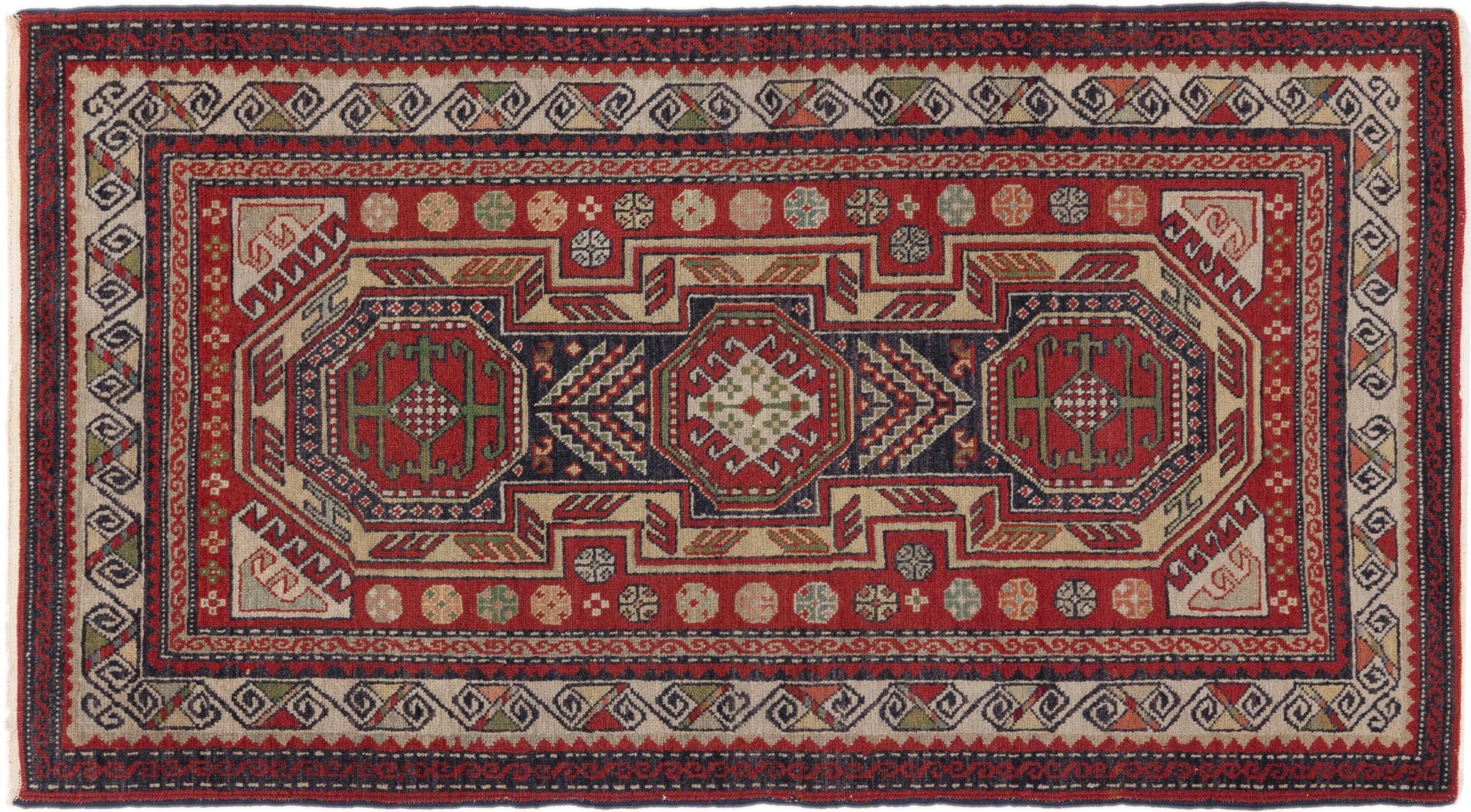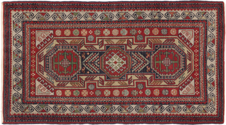 Carpet ID: 296049002480 Size: 147x80 cm Thickness: ap. 12 mm Knot density: 200 000 - 250 000 / m² Manufacturing: Knotted by hand Pile: Handspun wool Warp: Cotton Origin: Azerbaijan / Russia Age: Old/Semi antique, over 50 years Weight: ap. 4 kg Also know as Afghan Shirvan, Kaukasisch In stock: Unique - Only 1 in stock