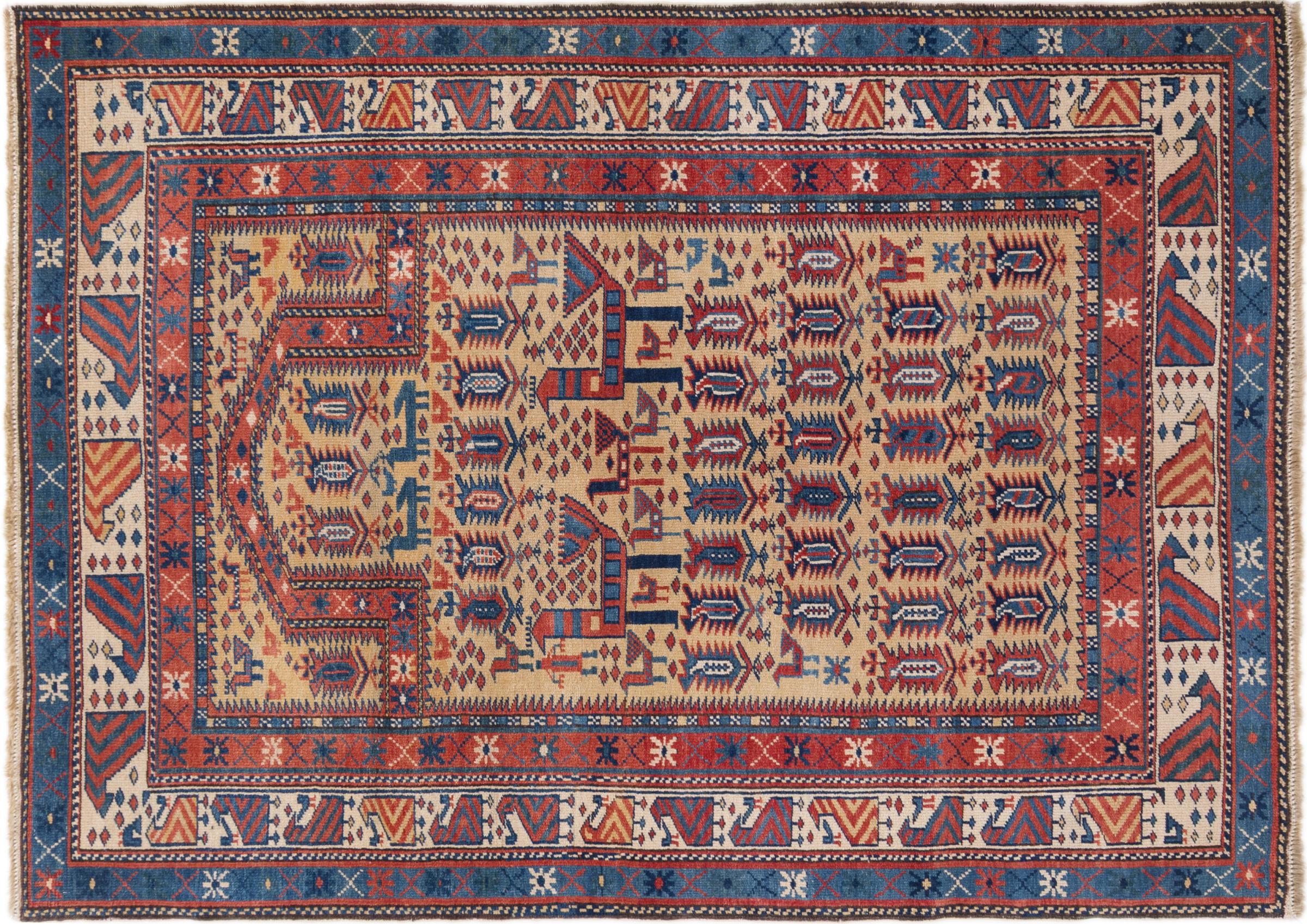 Carpet ID: 296520001883 Size: 168x121 cm Thickness: ap. 12 mm Knot density: 200 000 - 250 000 / m² Manufacturing: Knotted by hand Pile: Handspun wool Warp: Sheep wool Origin: Azerbaijan / Russia Age: New Weight: ap. 6 kg Also know as Afghan Shirvan, Kaukasisch In stock: Unique - Only 1 in stock