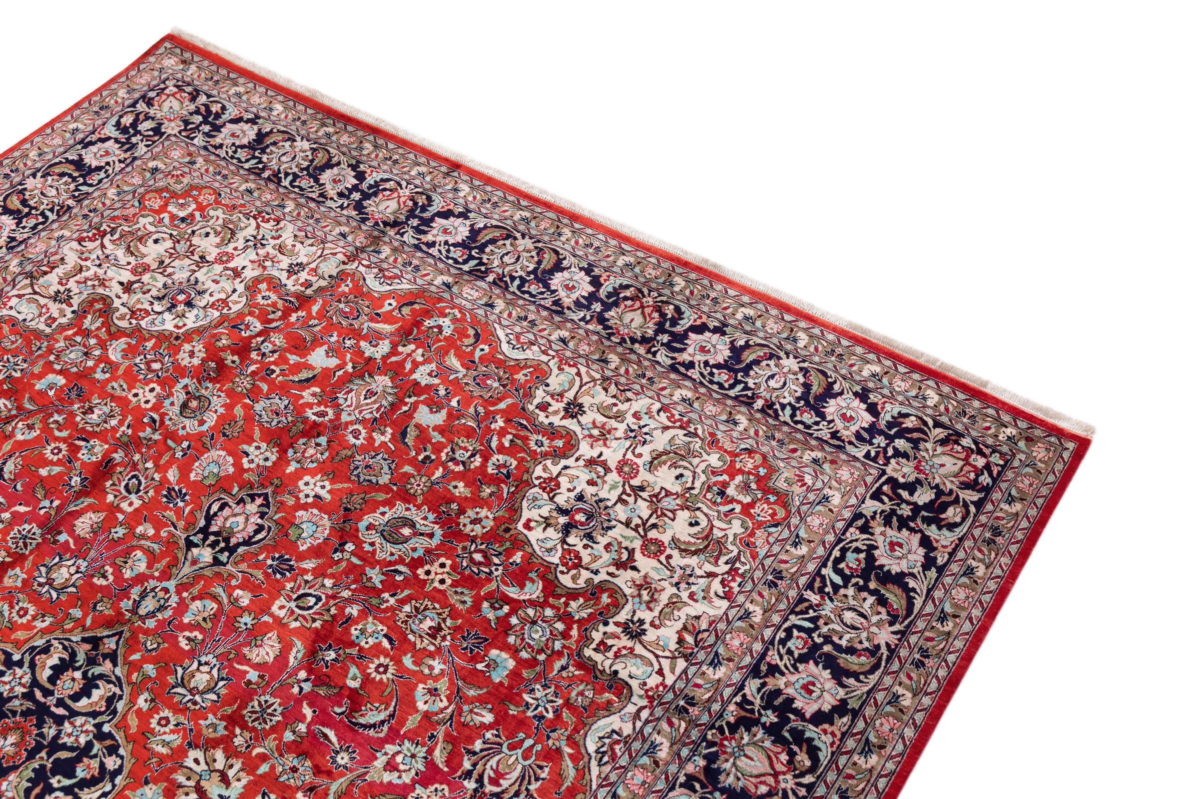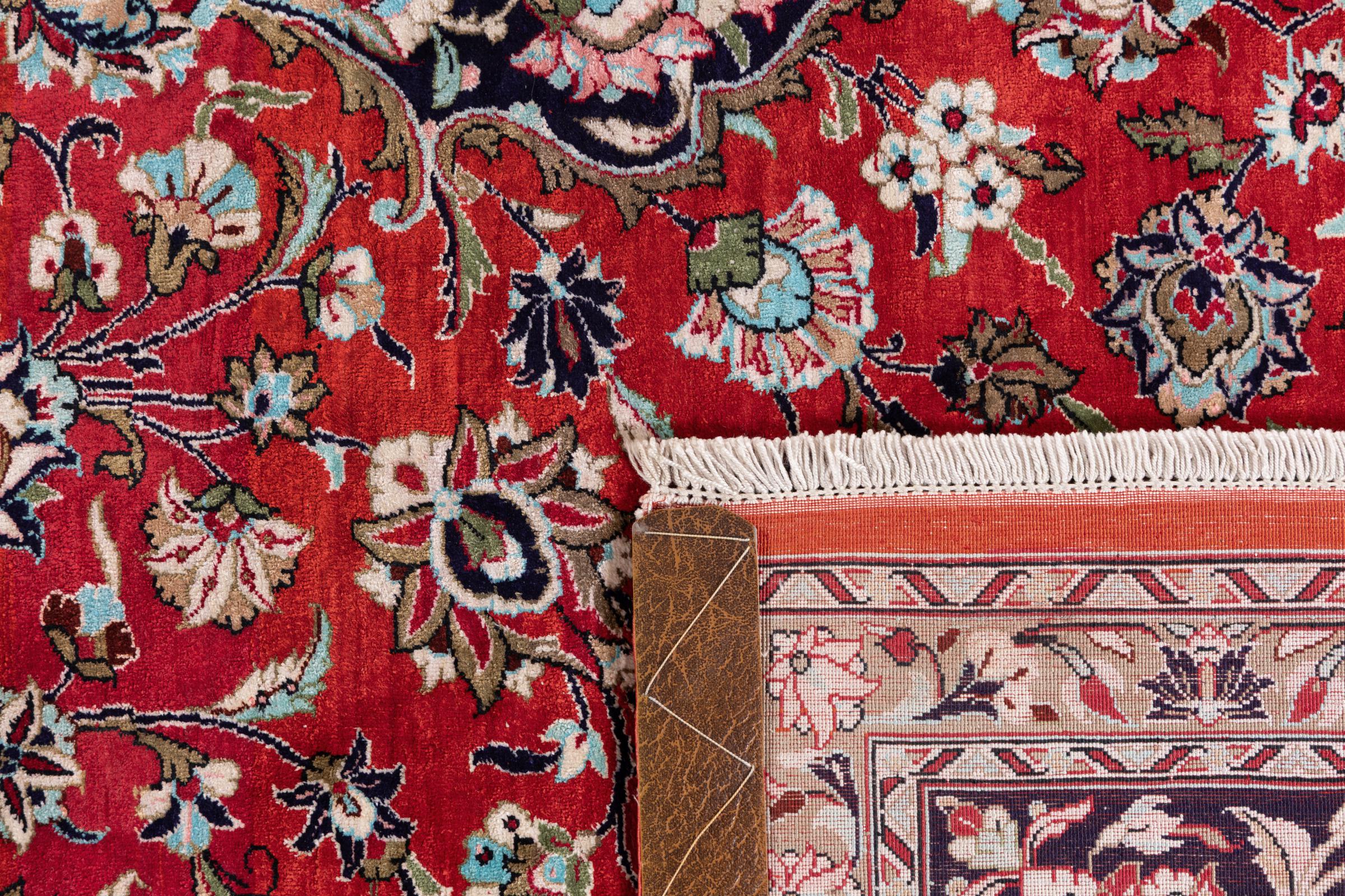 This Qum (also called: Qom) carpet is pure luxury for your home. It consist of natural silk from the city Qum, which is known to possess the highest grade silk in Persia. Its astonishing ornaments made from silk are going to impress without any doubt. The silk reveals new colours and details depending on the angle of how light is reflected. This carpet is a unique piece of art, which you wouldn't want to miss anymore.
