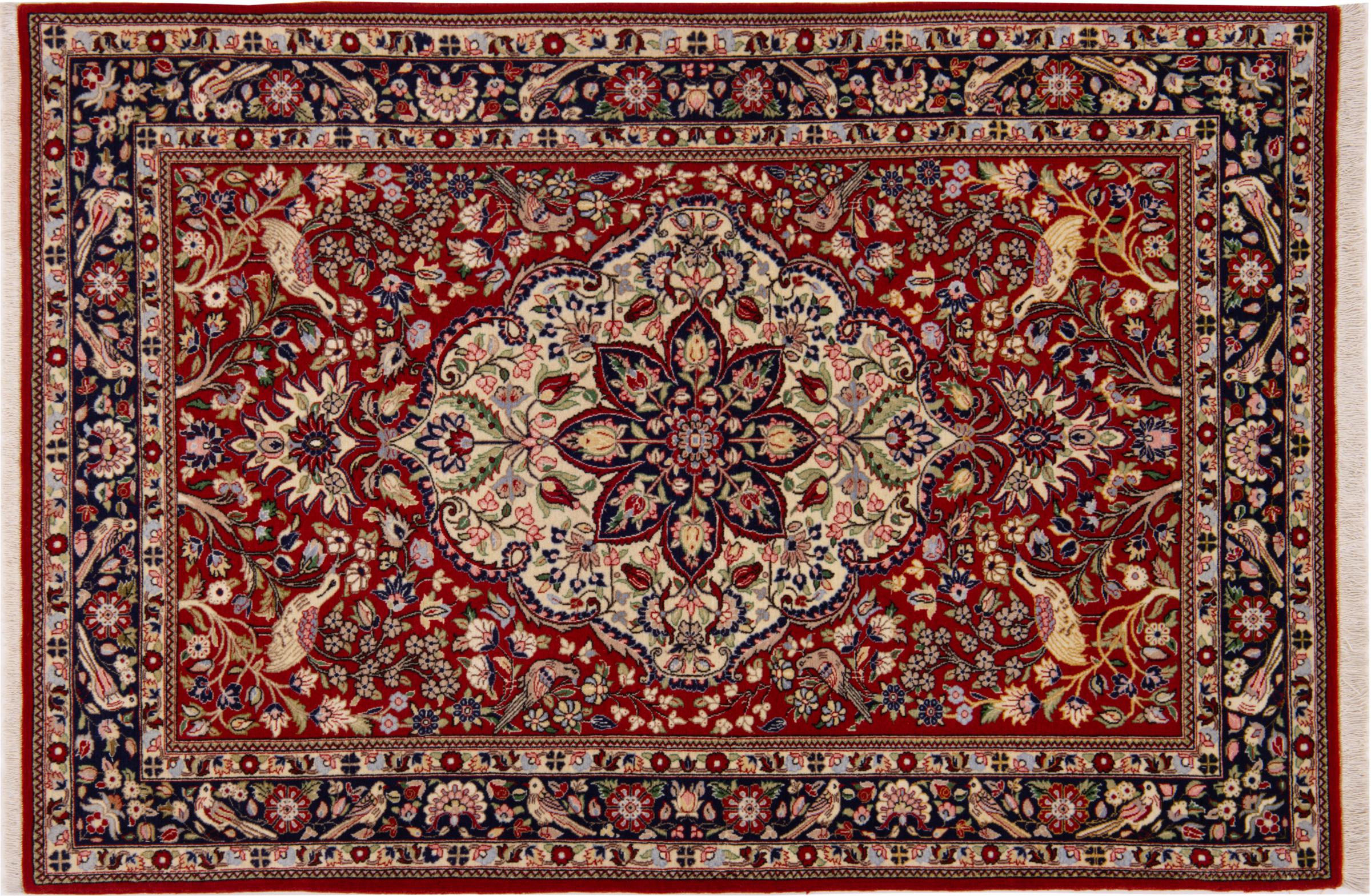 This carpet comes from Iran (formerly Persia) and as a Persian rug enjoys probably the highest reputation among all hand-knotted rug types. No other region looks back on such a long tradition in rug making as Iran. Thus, the probably finest and most elaborate rugs originate here. The robustness, durability and quality of the Persian knot are still unsurpassed today. Persian rugs are usually named after their region of origin. For instance, a Nain, a Ghom as well as an Isfahan carpet comes from the city of the same name in Iran.