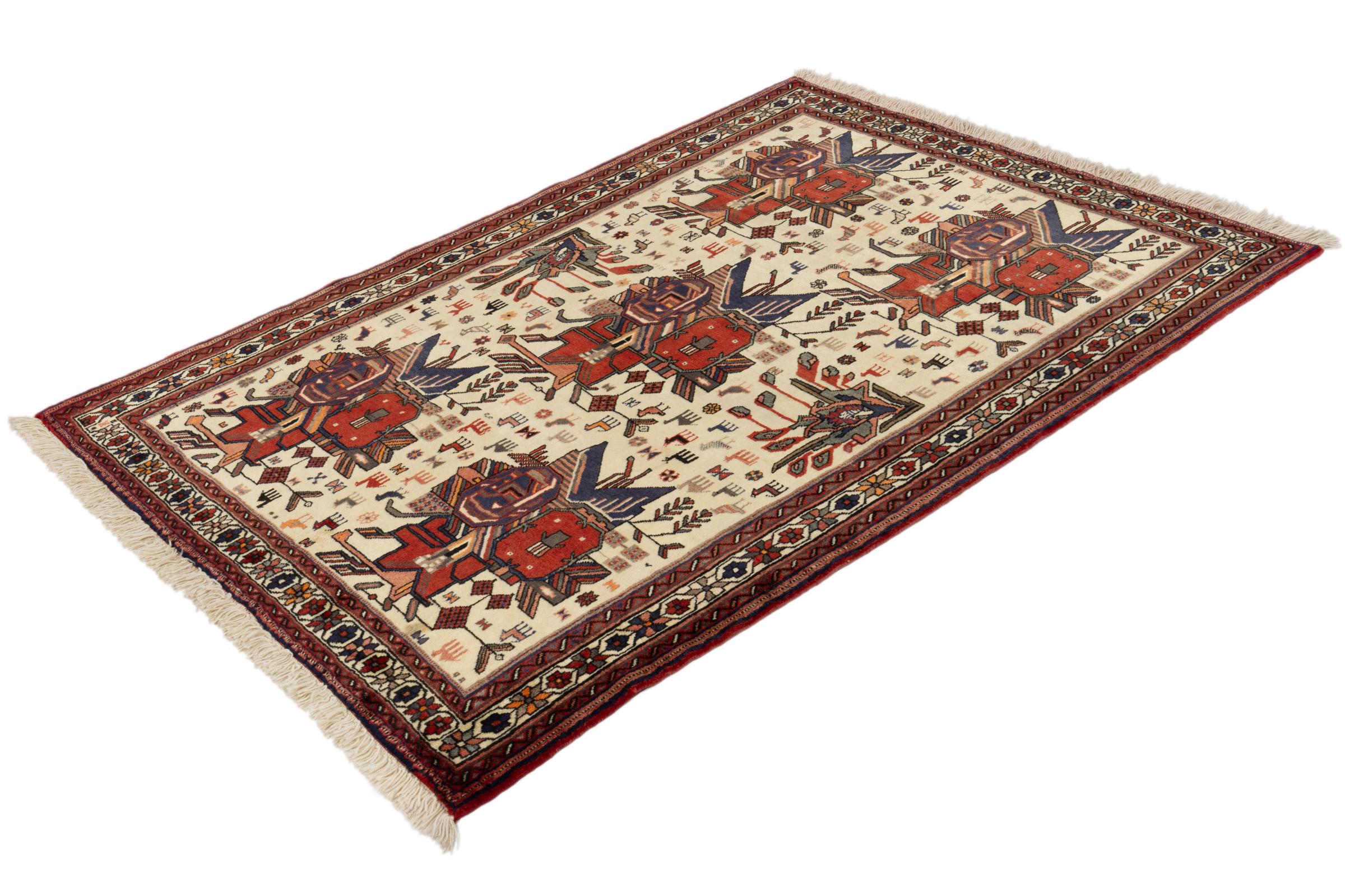 This carpet, made by the Afshar nomads, convinces with red colours. Every room gets an oriental touch from a real Persian Afshar carpet. Each connoisseur will love this kind of Persian carpets. The used wool of the pile has a very high quality and is therefore convincing. Buy this special carpet before it is out of stock.