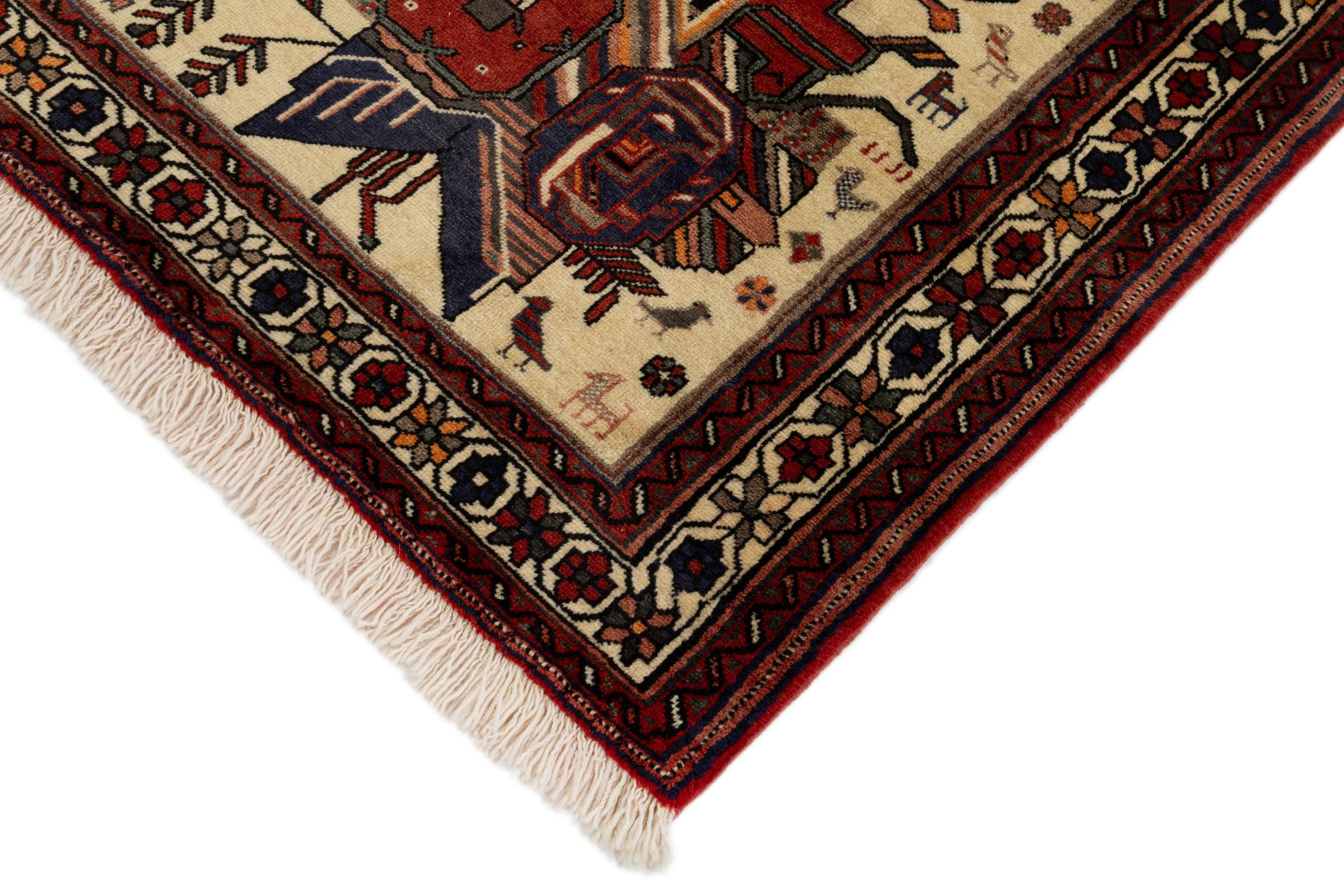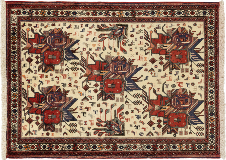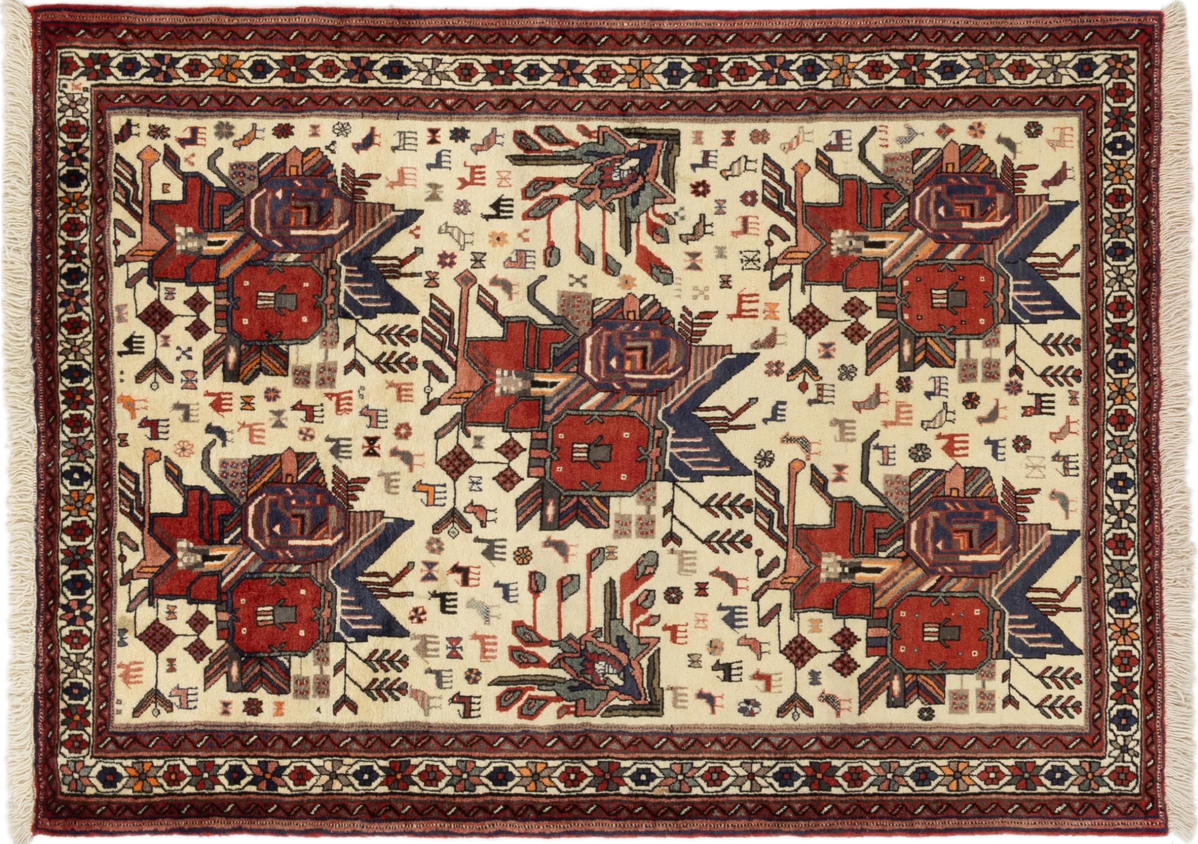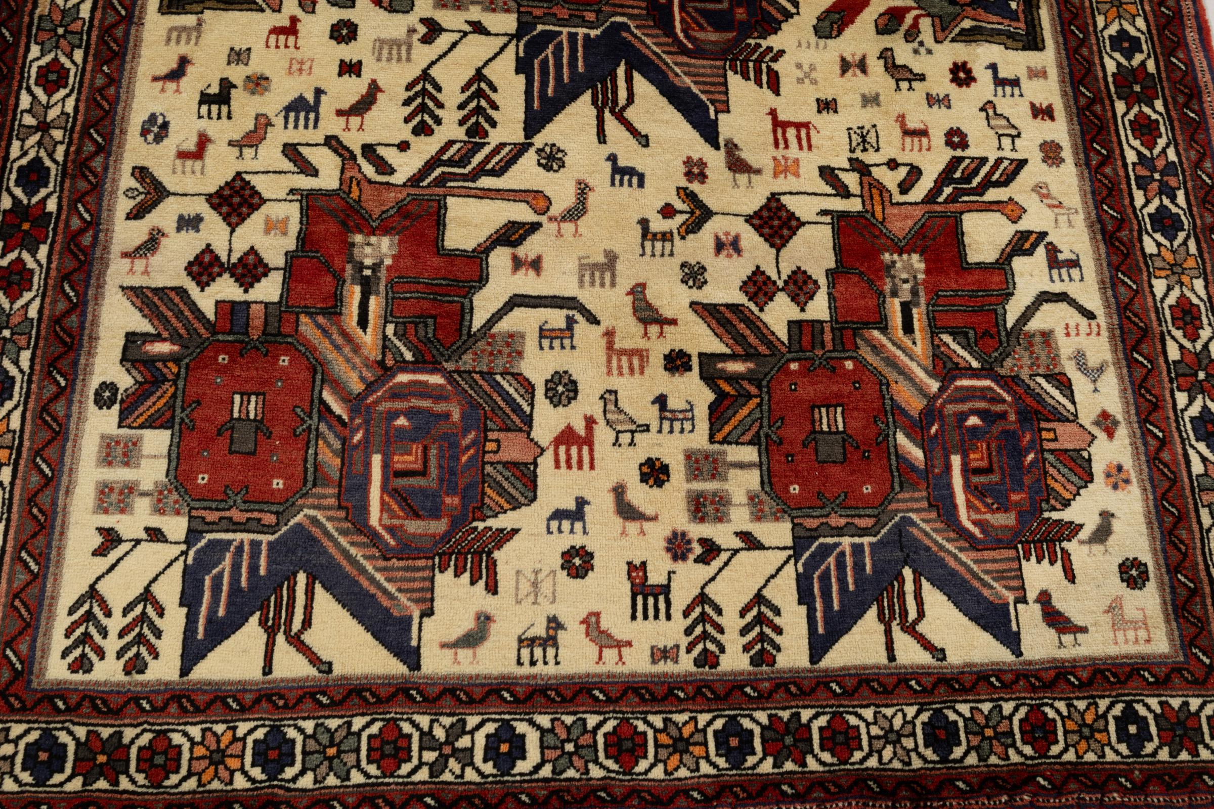 This rug belongs to village and nomadic rugs from Iran, formerly Persia. This type of rug is knotted by hand in smaller towns and villages in old tradition. Even nomads still knot Persian rugs in the open air. The rugs are knotted without a draft and completely from the mind. They are characterized by classical ornaments, which are arranged in straight and geometrical patterns. Thanks to their cultural-traditional origin, these rugs have a unique character that embodies ancient Persia.