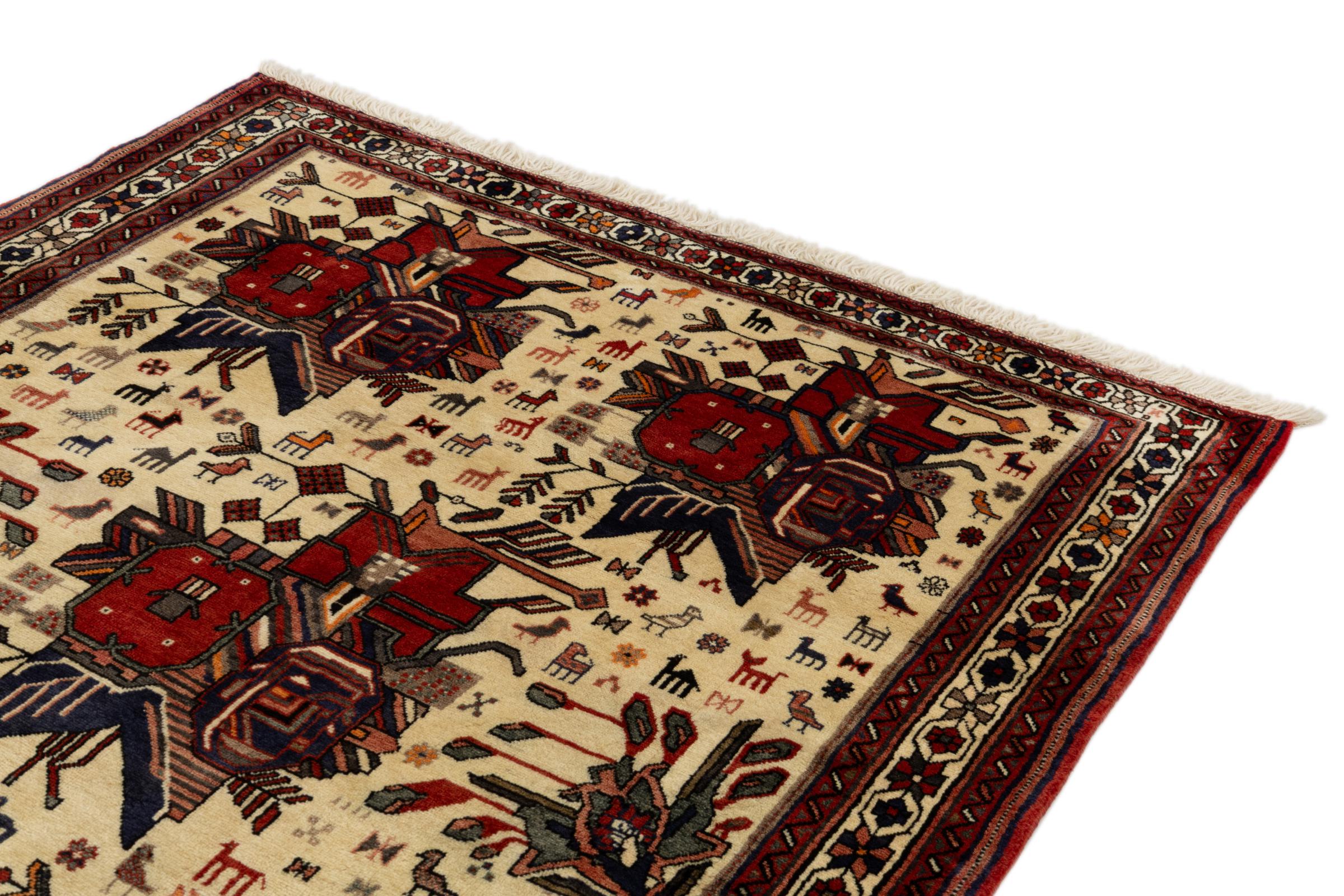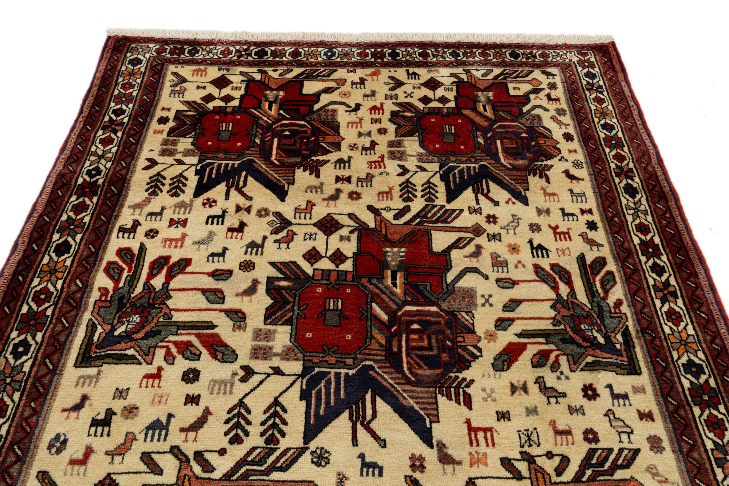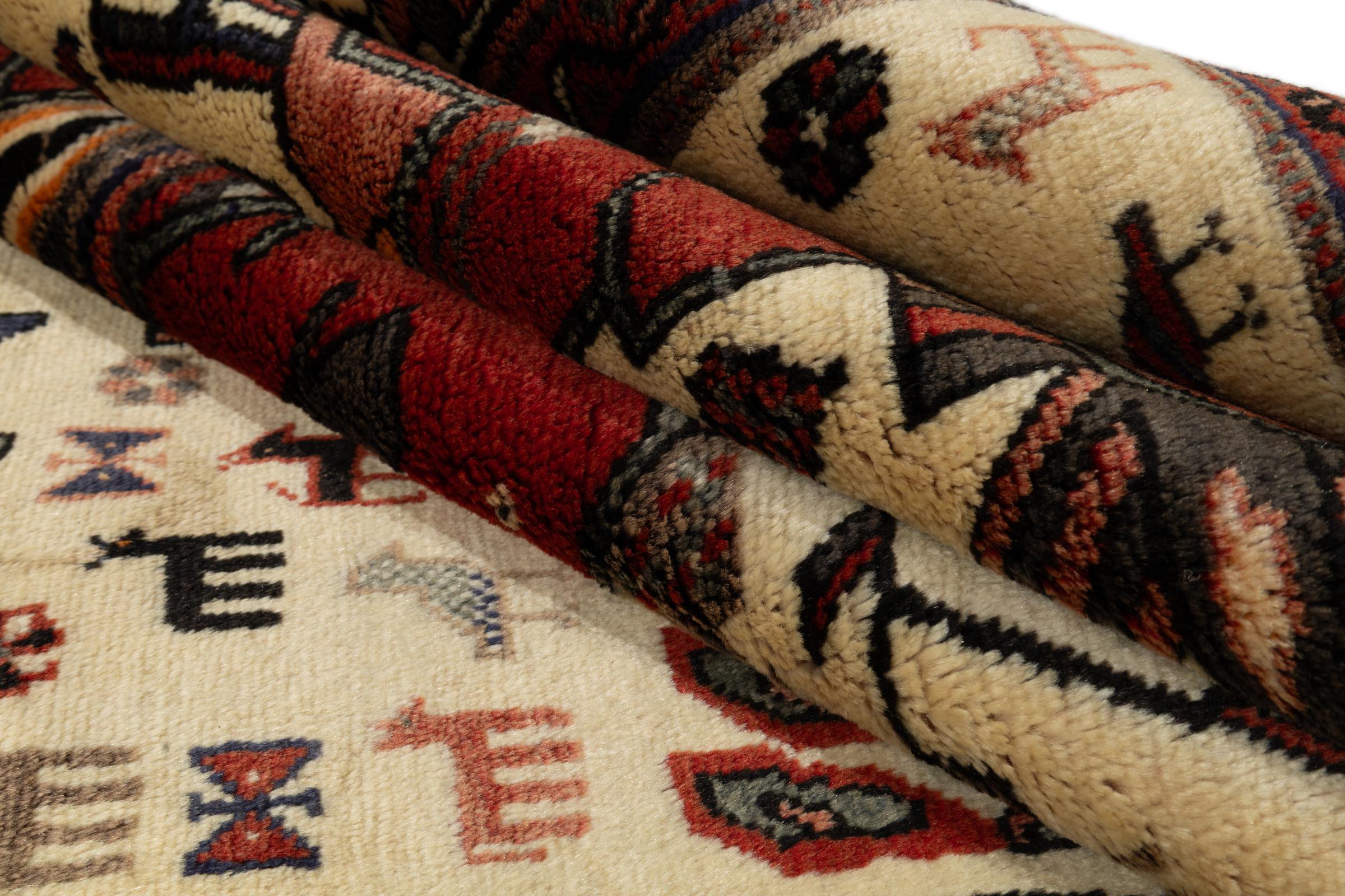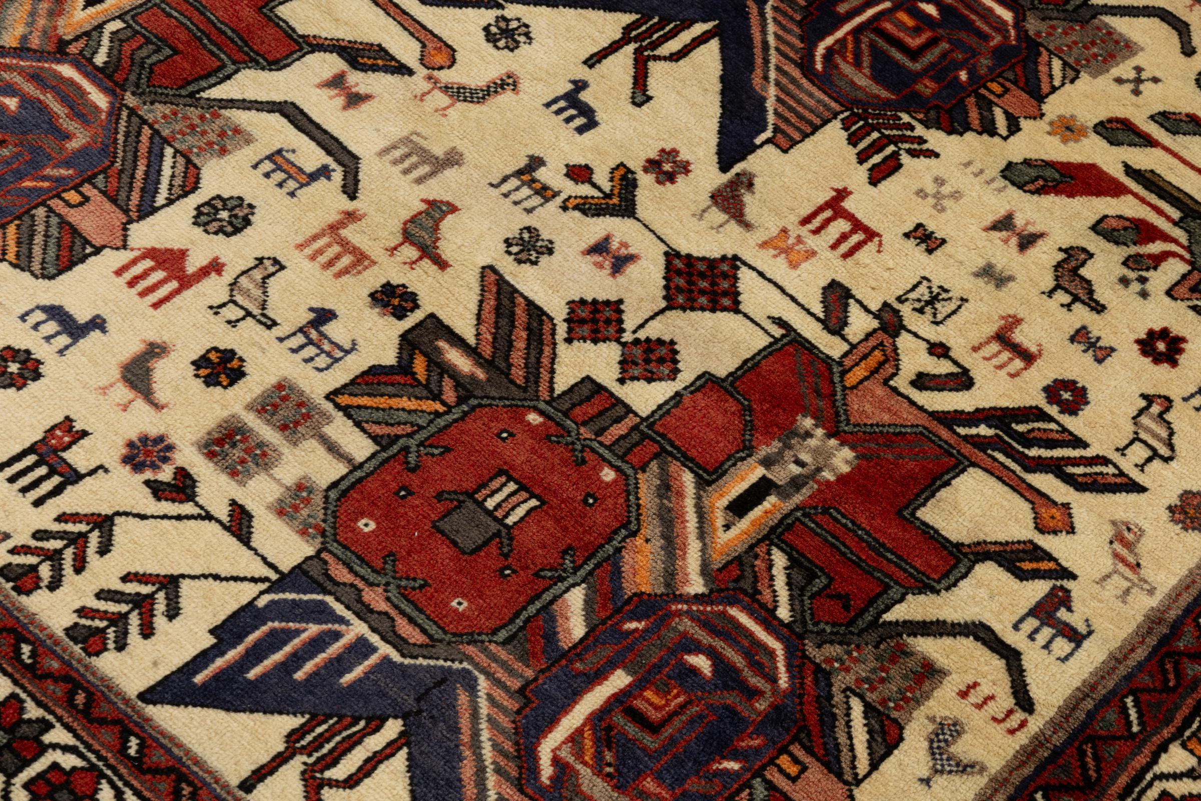 This rug belongs to village and nomadic rugs from Iran, formerly Persia. This type of rug is knotted by hand in smaller towns and villages in old tradition. Even nomads still knot Persian rugs in the open air. The rugs are knotted without a draft and completely from the mind. They are characterized by classical ornaments, which are arranged in straight and geometrical patterns. Thanks to their cultural-traditional origin, these rugs have a unique character that embodies ancient Persia.