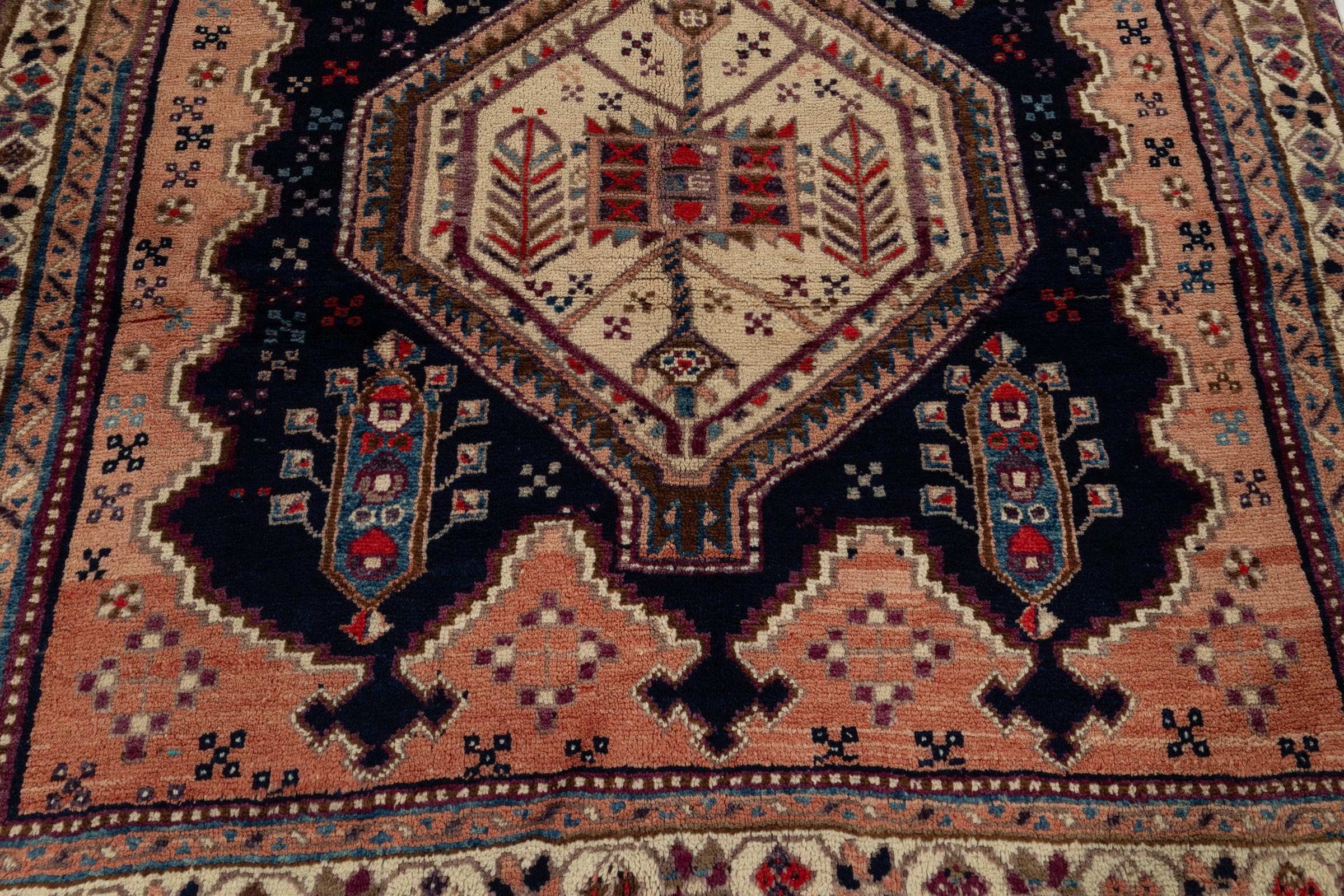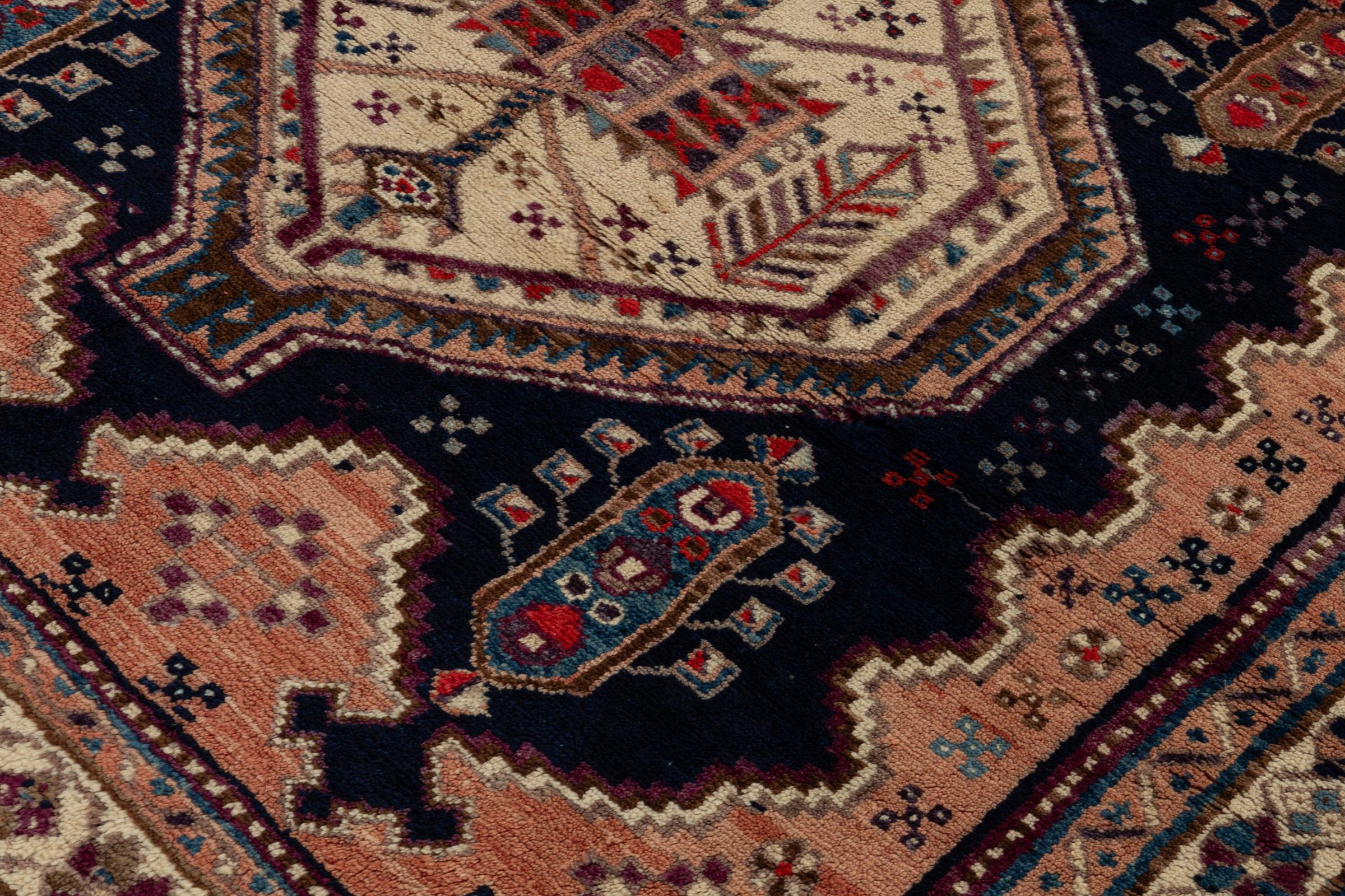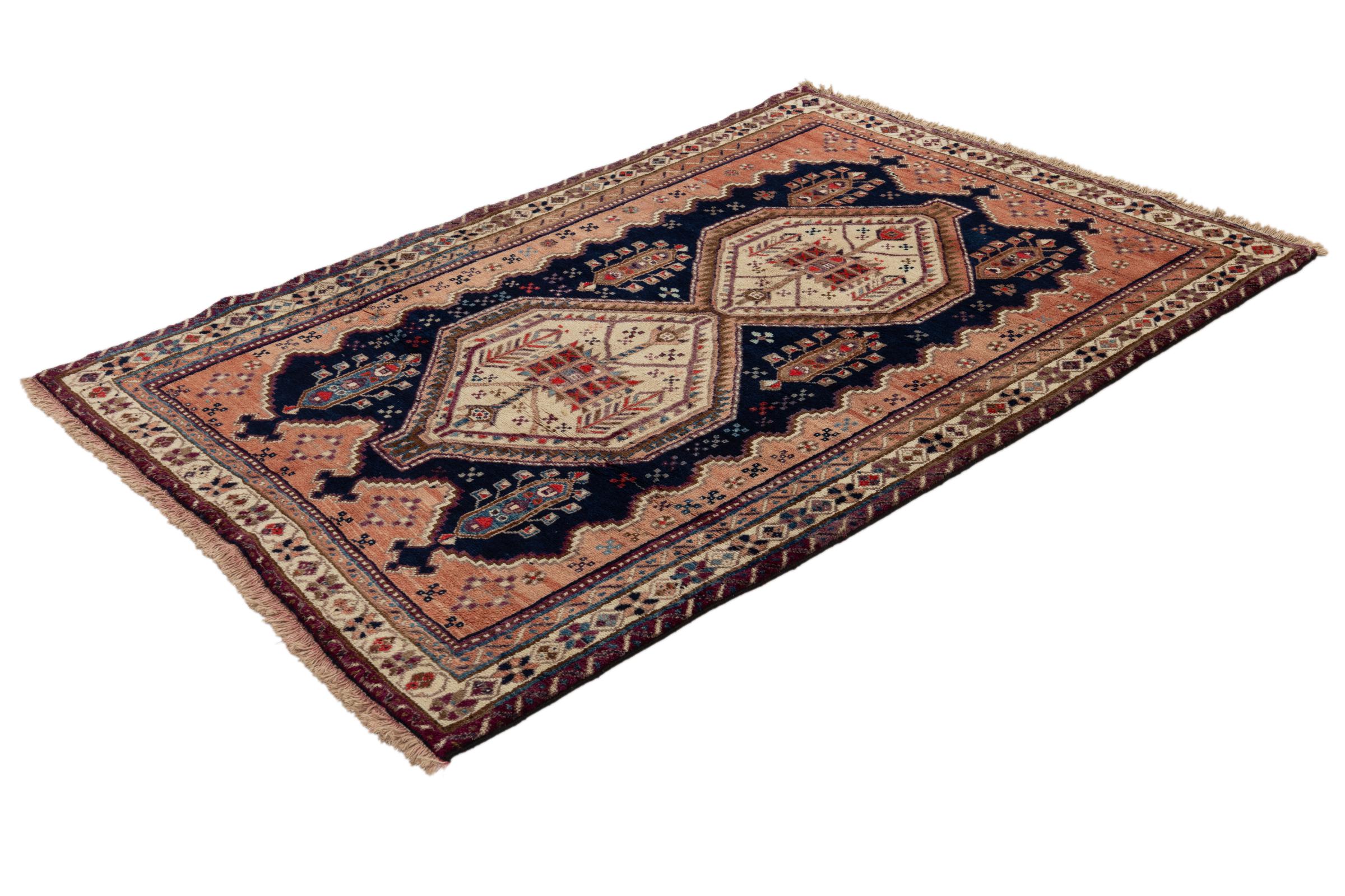 This rug belongs to village and nomadic rugs from Iran, formerly Persia. This type of rug is knotted by hand in smaller towns and villages in old tradition. Even nomads still knot Persian rugs in the open air. The rugs are knotted without a draft and completely from the mind. They are characterized by classical ornaments, which are arranged in straight and geometrical patterns. Thanks to their cultural-traditional origin, these rugs have a unique character that embodies ancient Persia.