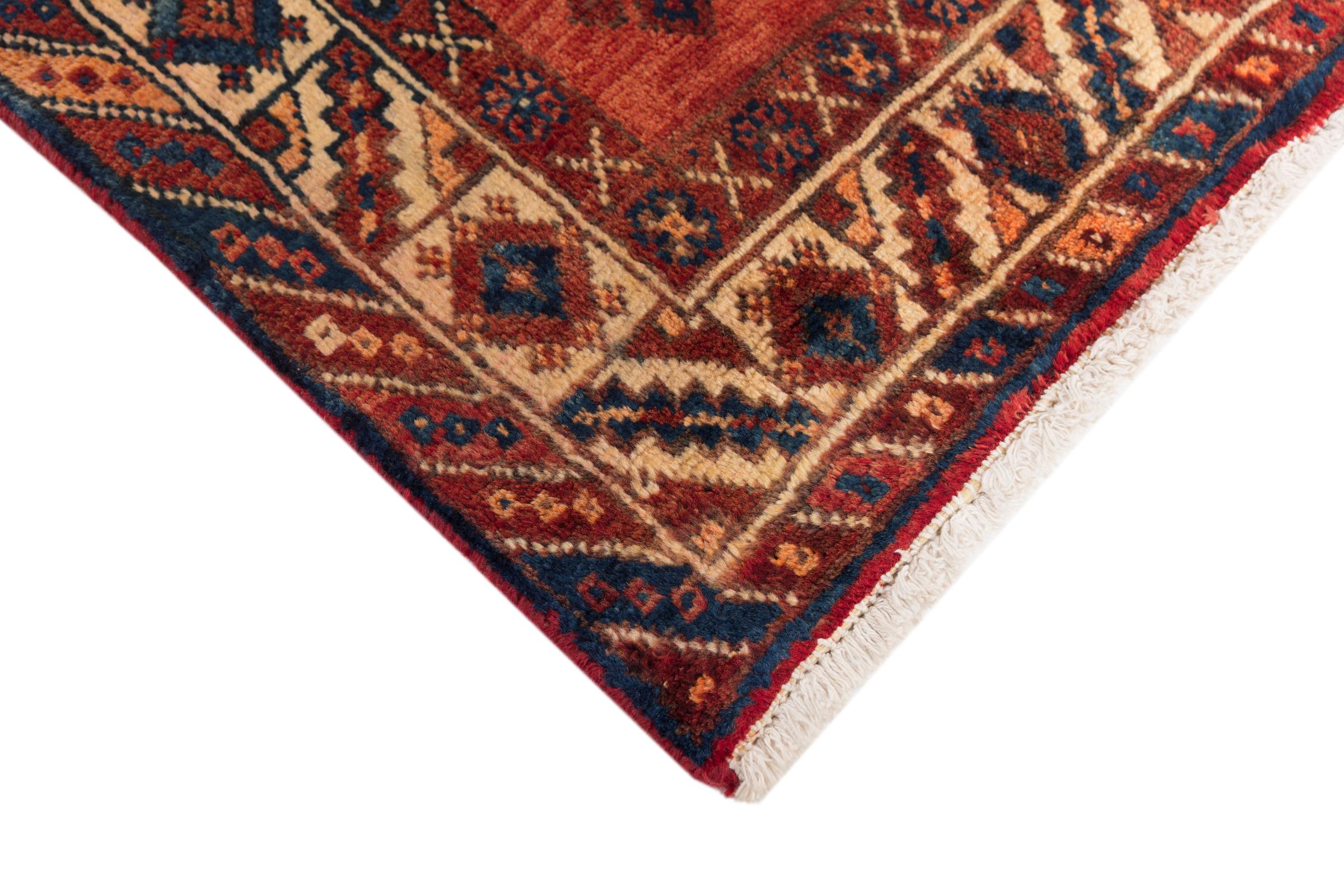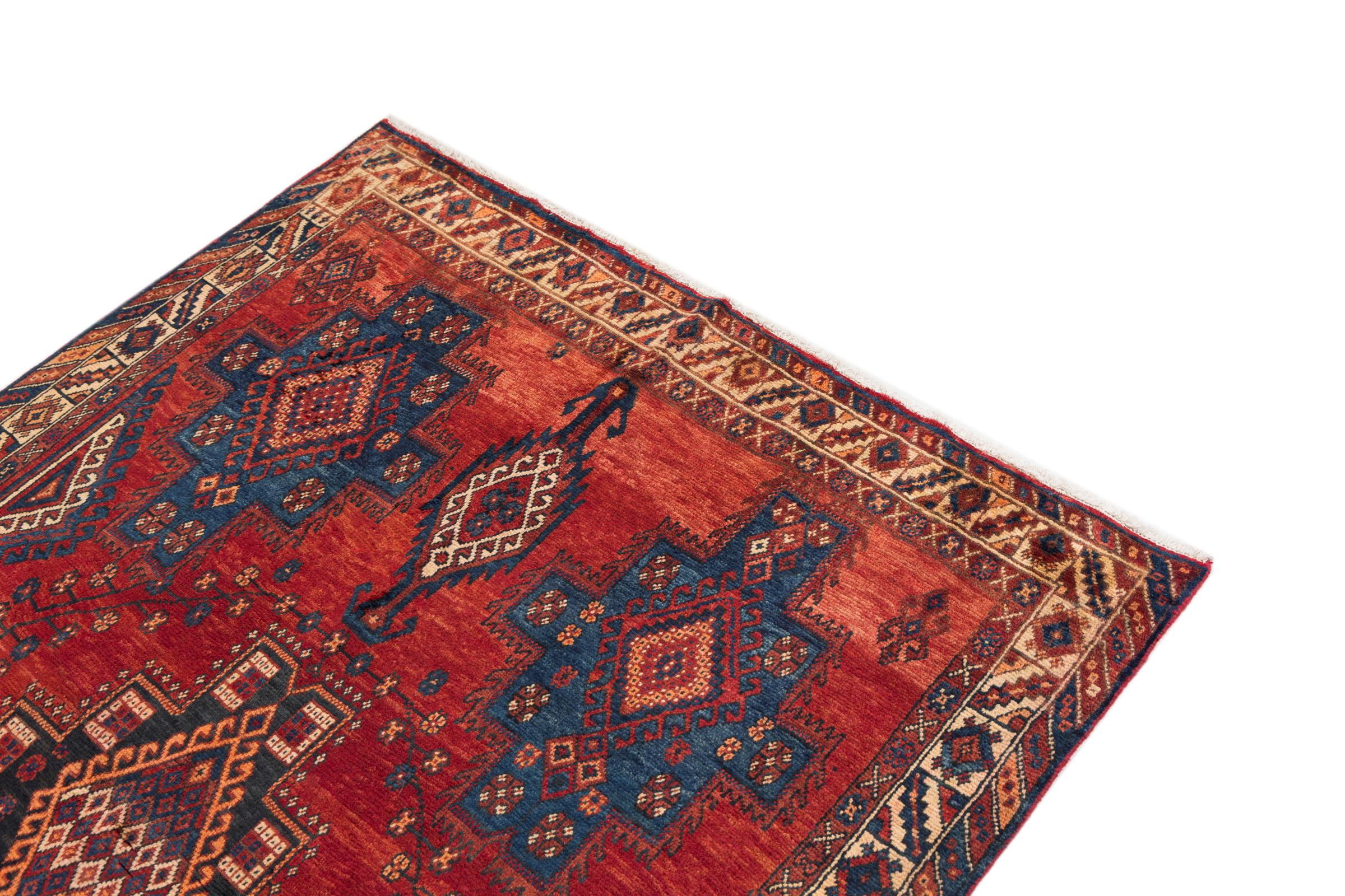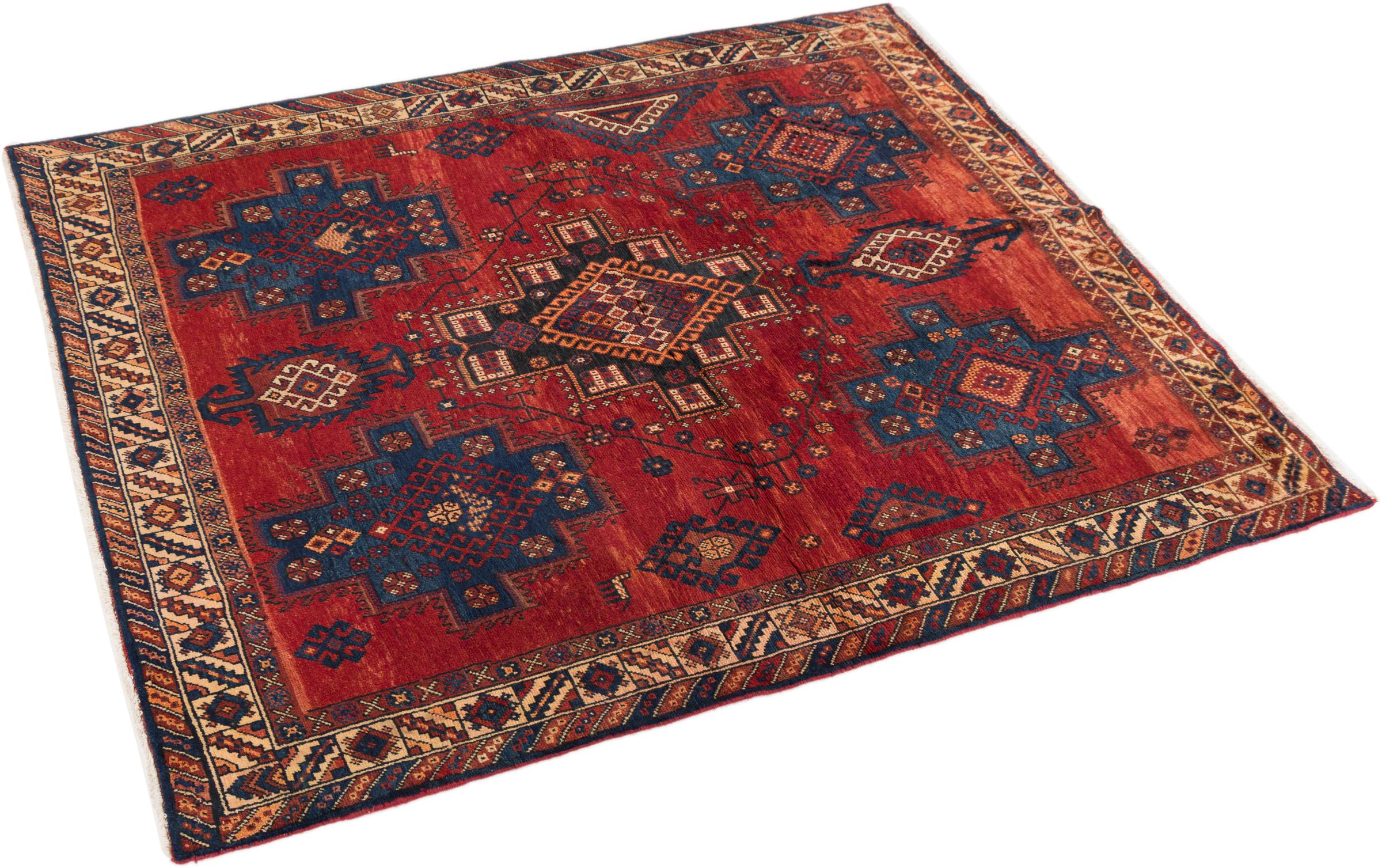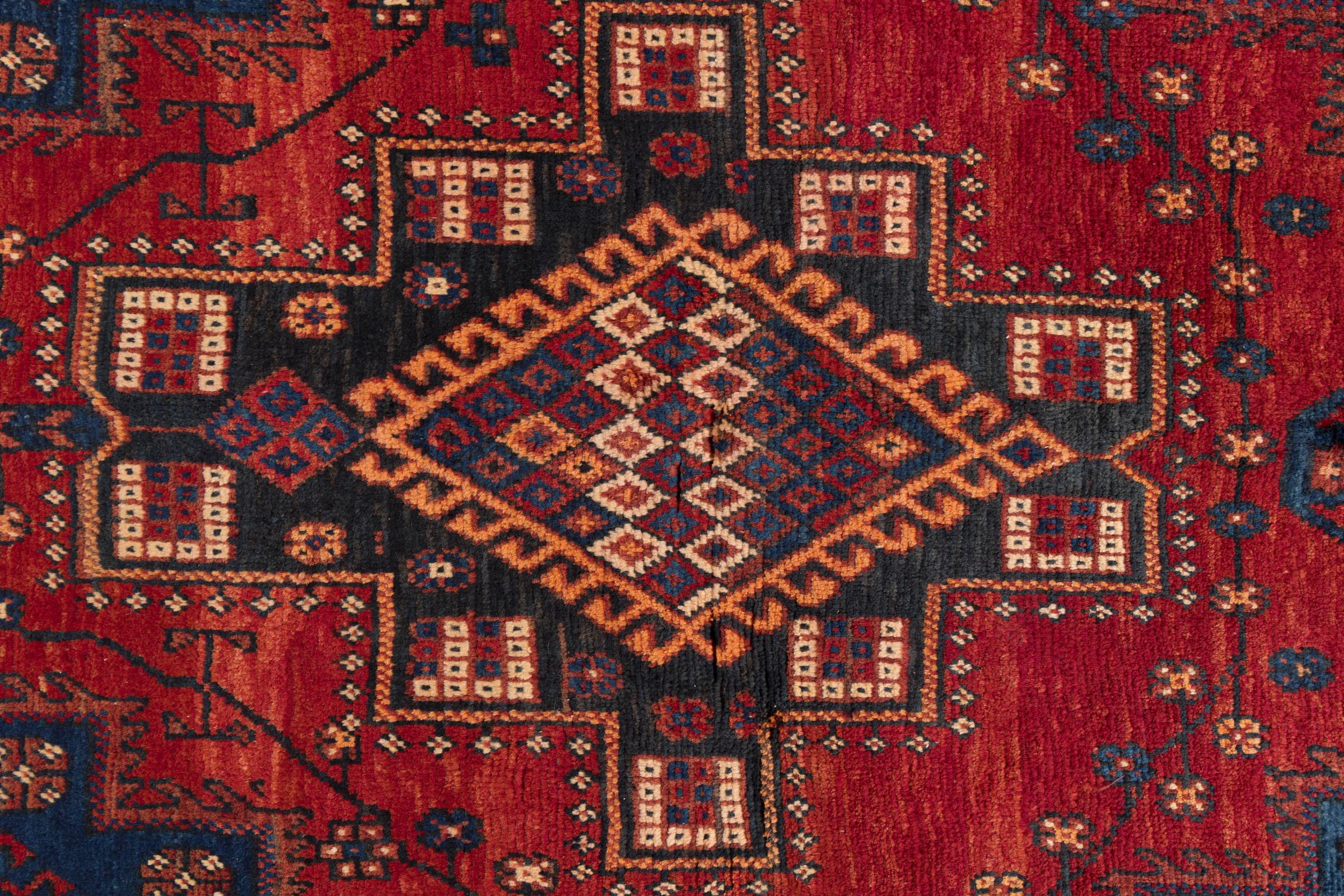 This rug belongs to village and nomadic rugs from Iran, formerly Persia. This type of rug is knotted by hand in smaller towns and villages in old tradition. Even nomads still knot Persian rugs in the open air. The rugs are knotted without a draft and completely from the mind. They are characterized by classical ornaments, which are arranged in straight and geometrical patterns. Thanks to their cultural-traditional origin, these rugs have a unique character that embodies ancient Persia.