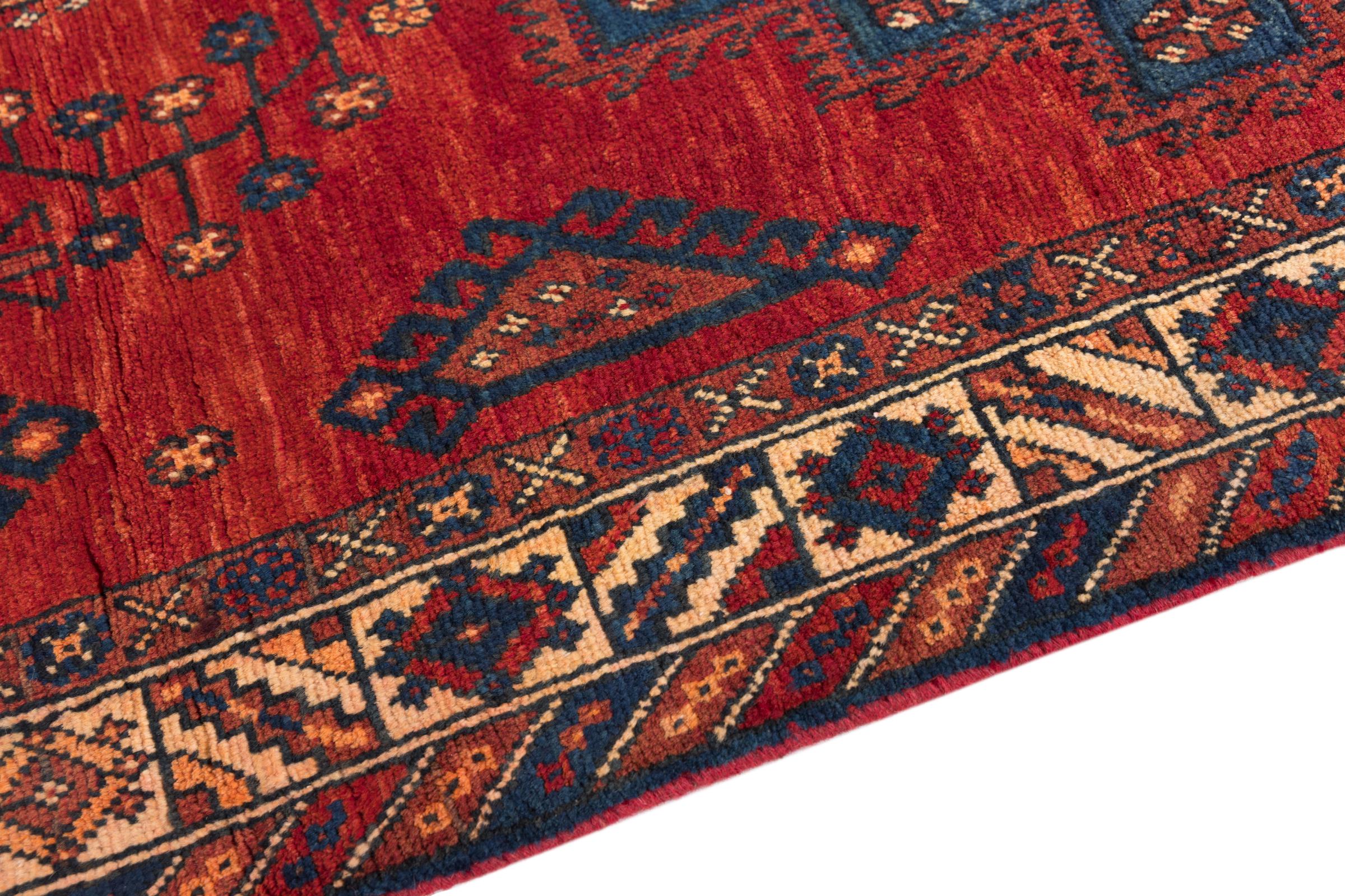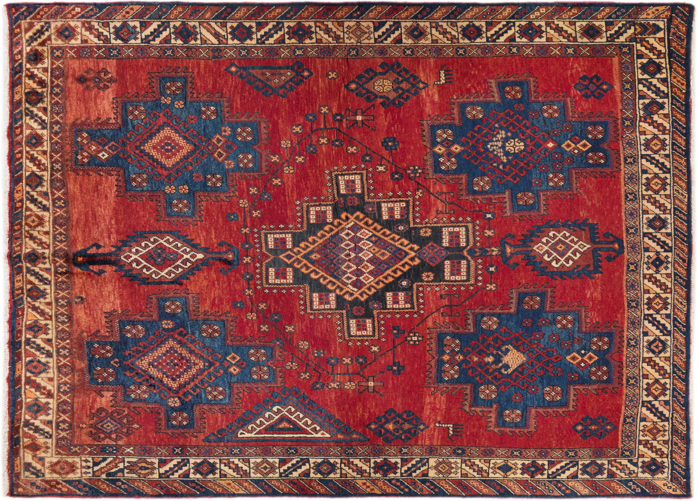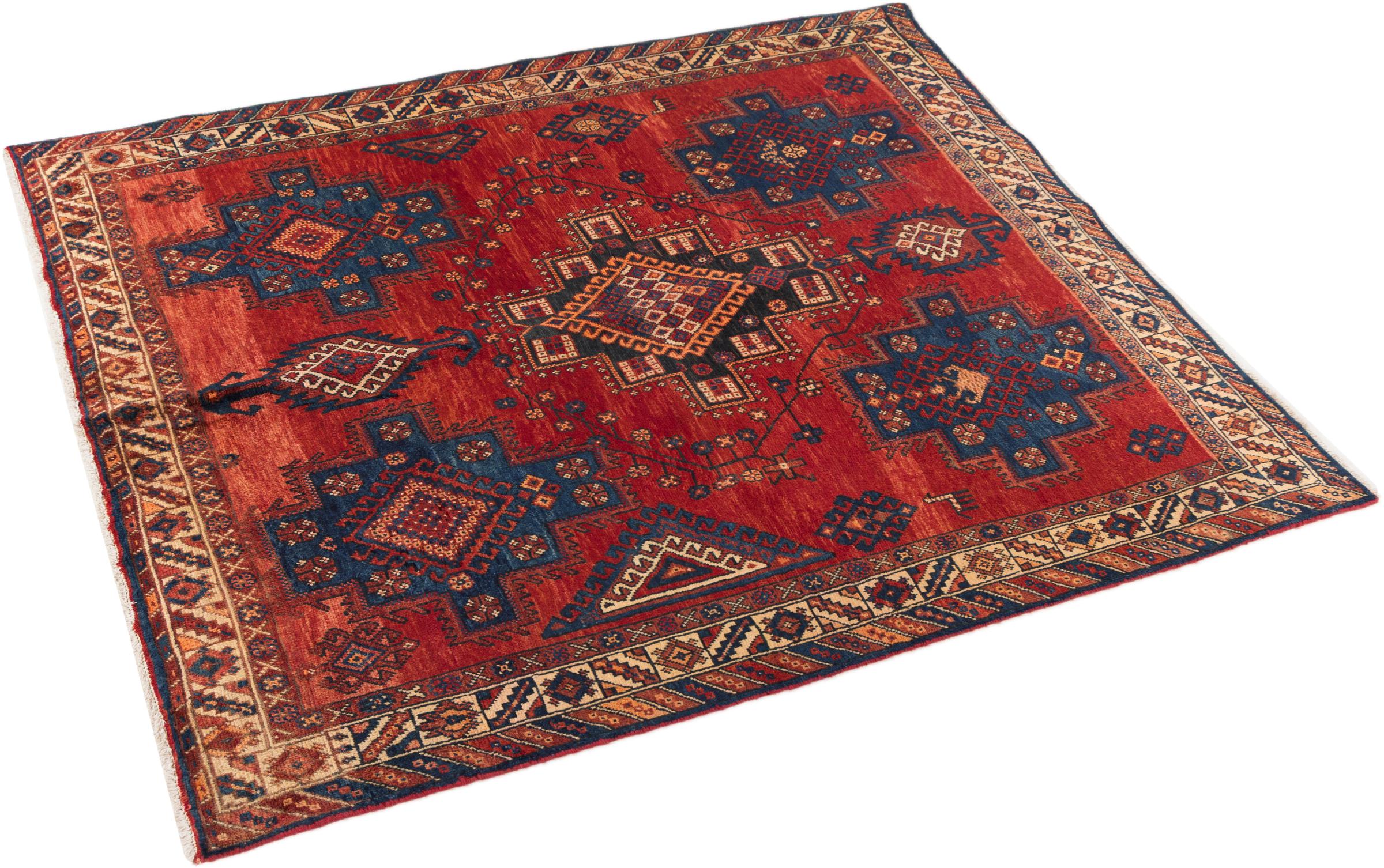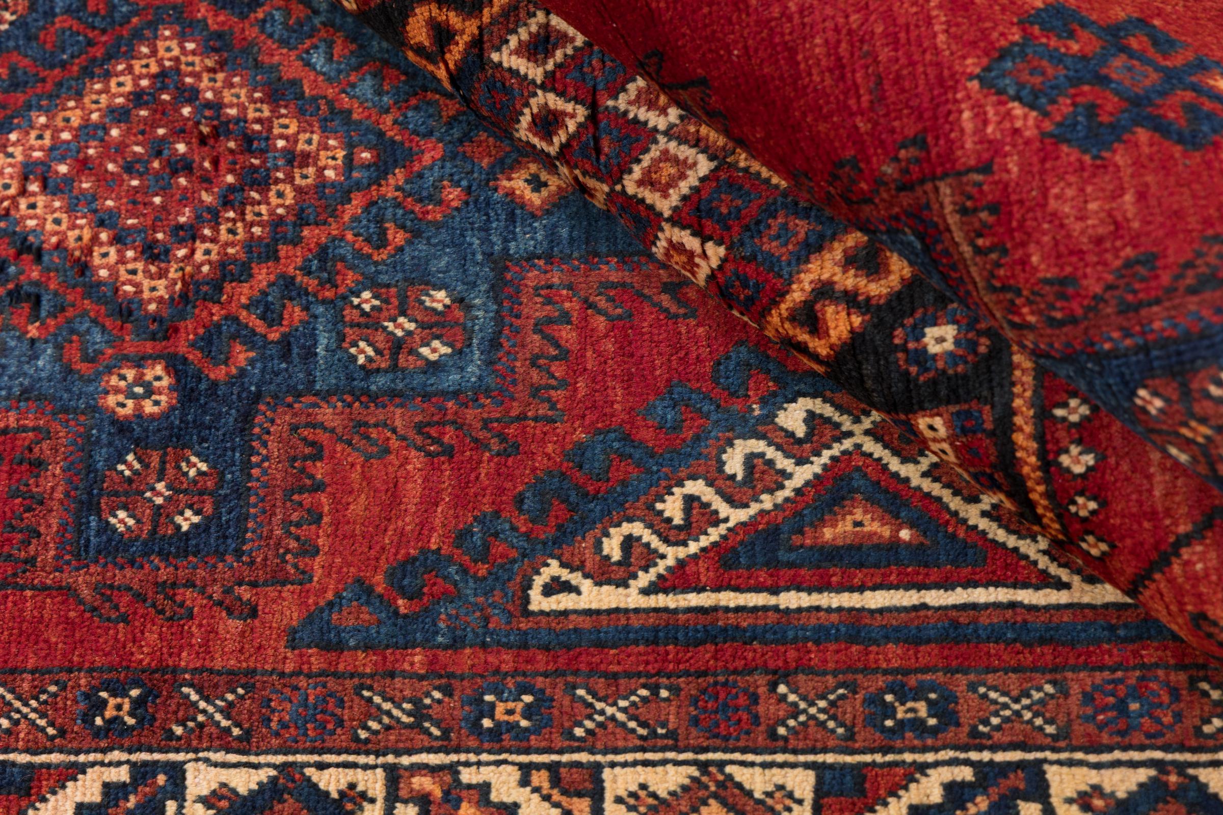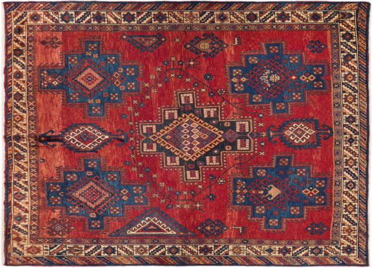 This rug belongs to village and nomadic rugs from Iran, formerly Persia. This type of rug is knotted by hand in smaller towns and villages in old tradition. Even nomads still knot Persian rugs in the open air. The rugs are knotted without a draft and completely from the mind. They are characterized by classical ornaments, which are arranged in straight and geometrical patterns. Thanks to their cultural-traditional origin, these rugs have a unique character that embodies ancient Persia.