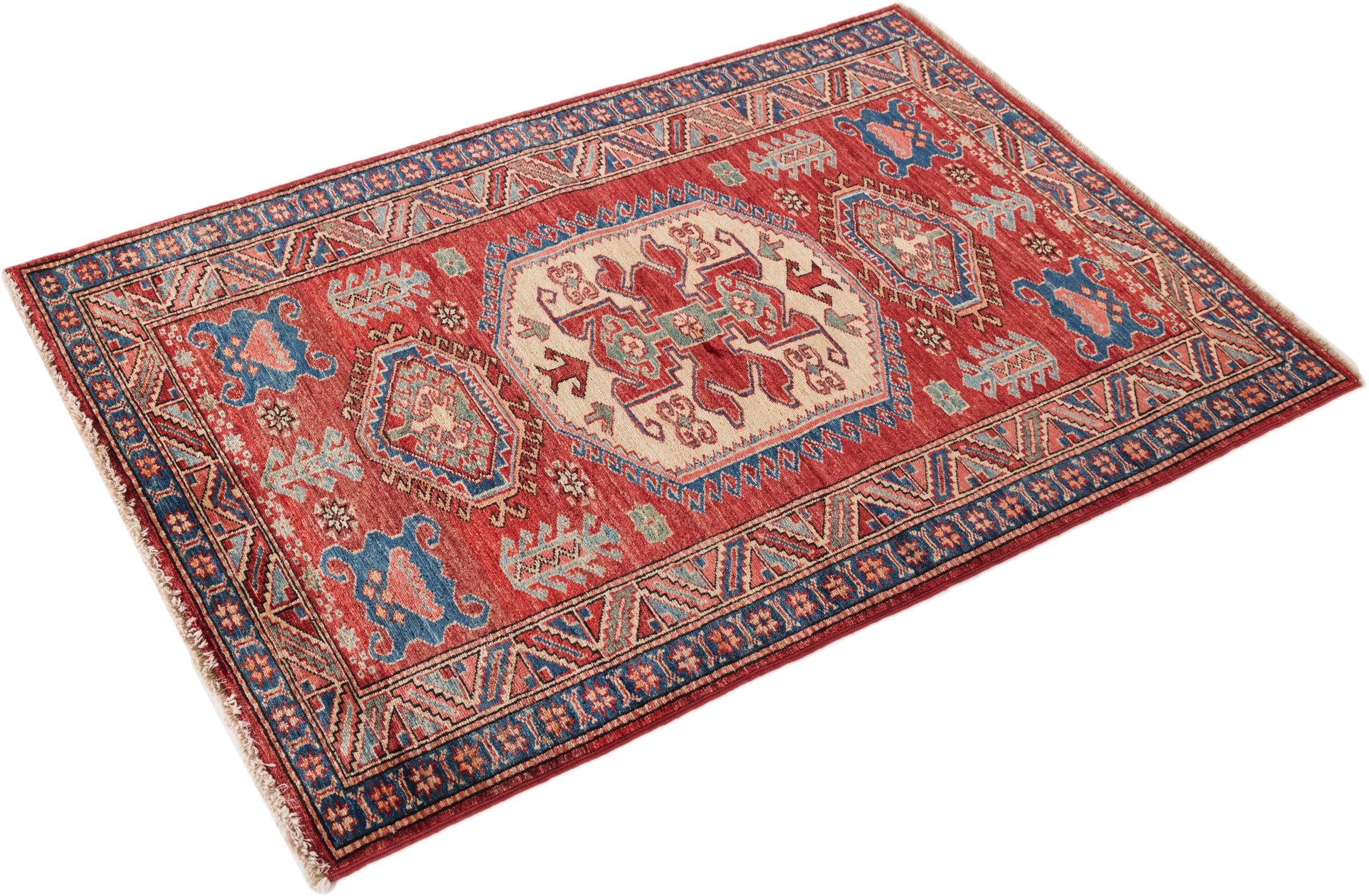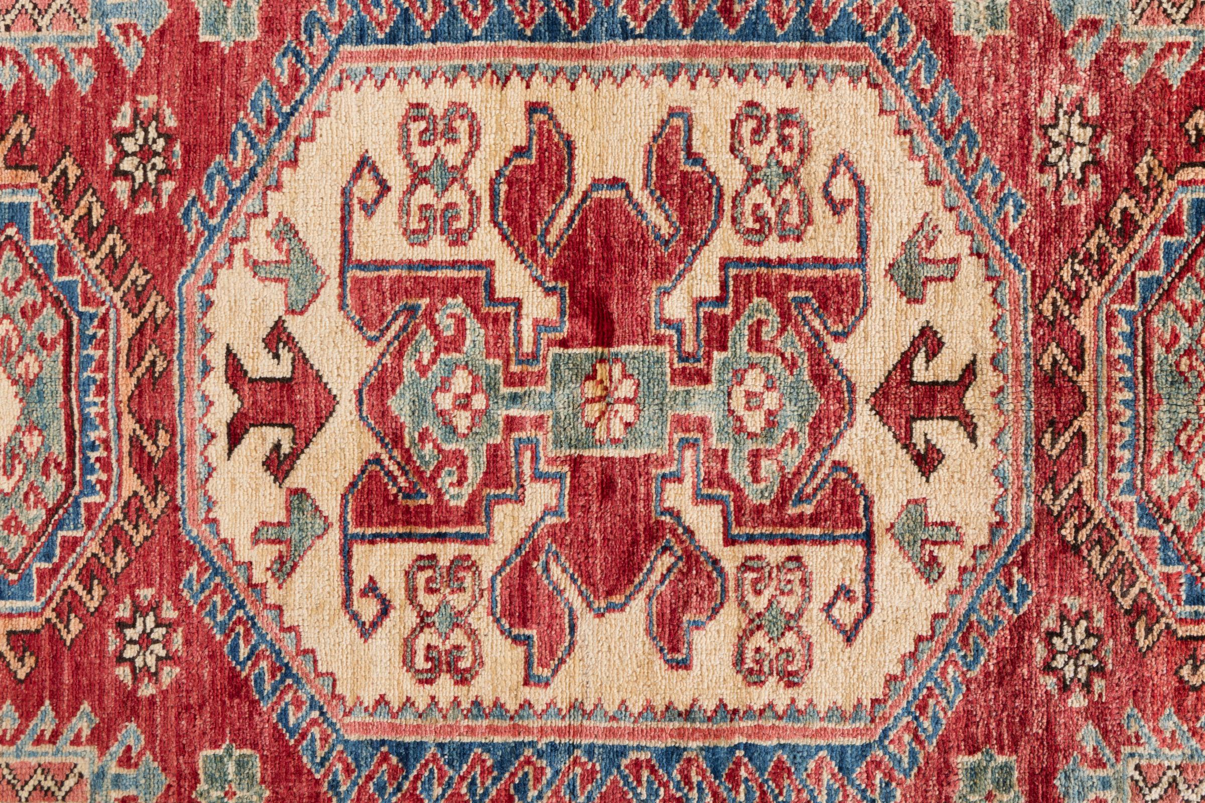Kazak rugs are originally Caucasian rugs and are considered the best of their kind. They are hand-knotted from high-quality wool and are characterised by their design with warm natural colours and straight geometric shapes.