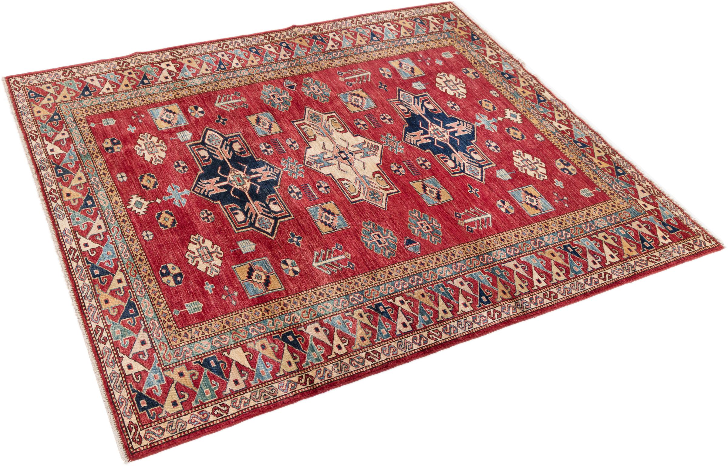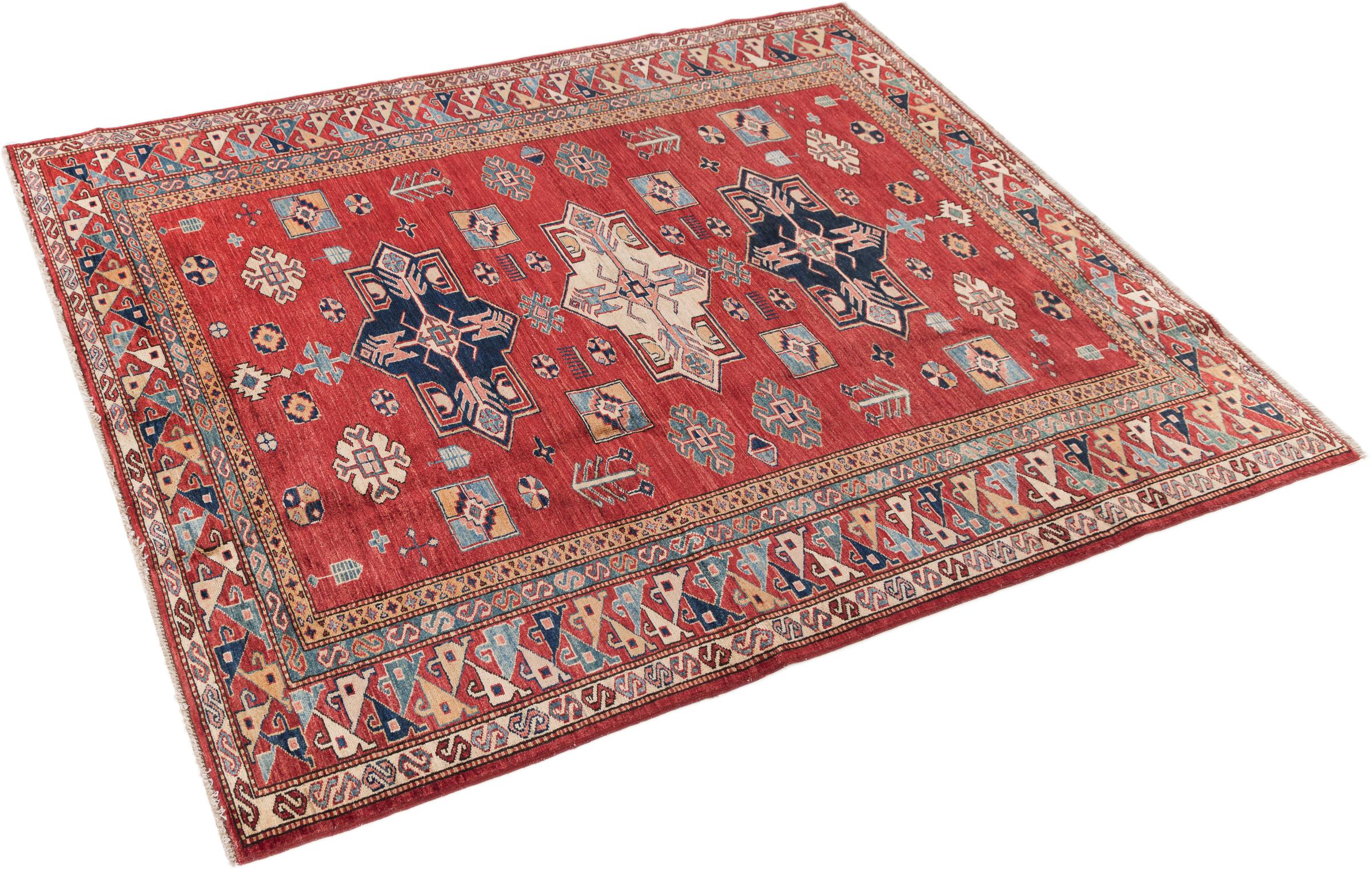 Kazak rugs are originally Caucasian rugs and are considered the best of their kind. They are hand-knotted from high-quality wool and are characterised by their design with warm natural colours and straight geometric shapes.