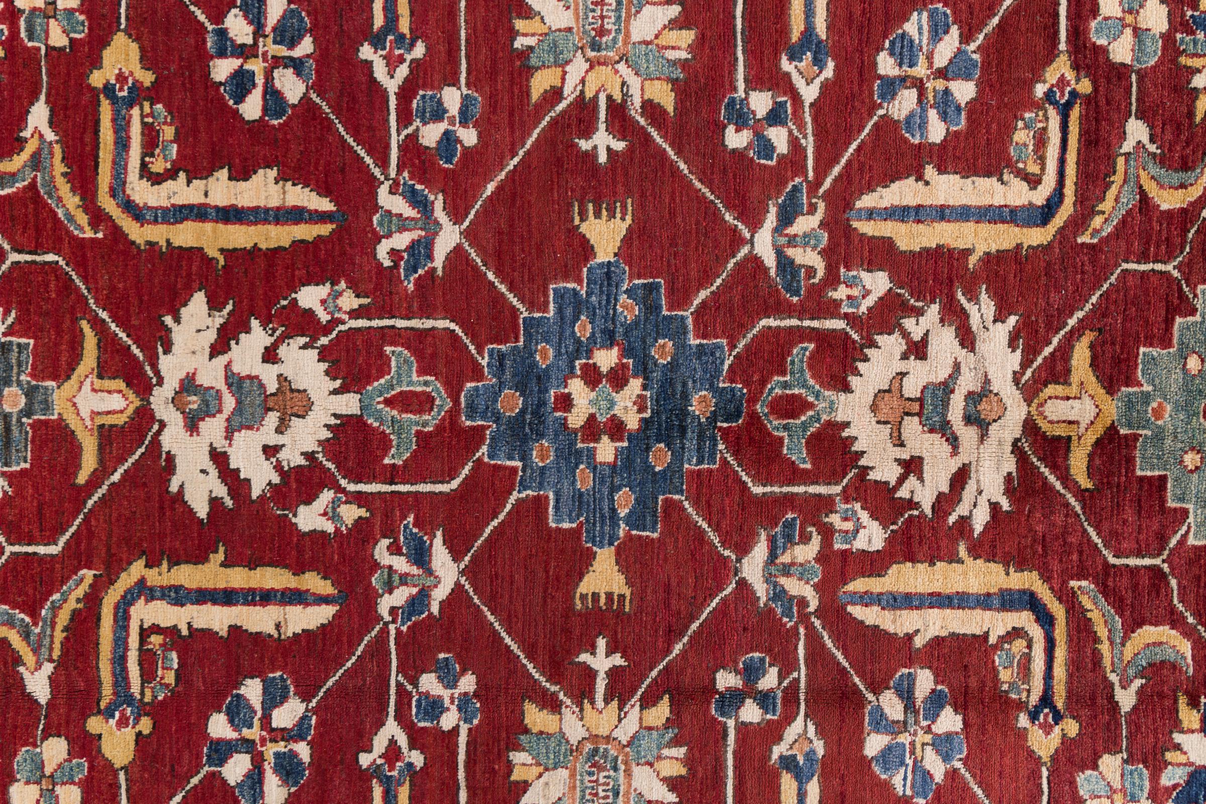 Carpet ID: 298746005243 Size: 351x274 cm Thickness: ap. 5 mm Knot density: 200 000 - 250 000 / m² Manufacturing: Knotted by hand Pile: Handspun wool Warp: Sheep wool Origin: Afghanistan Age: New Weight: ap. 24 kg In stock: Unique - Only 1 in stock