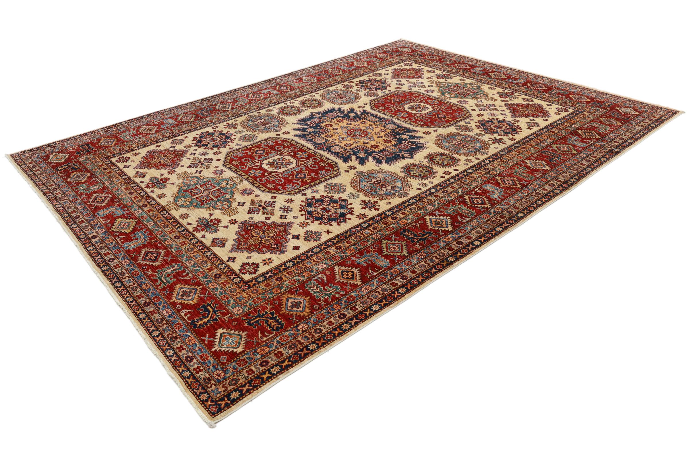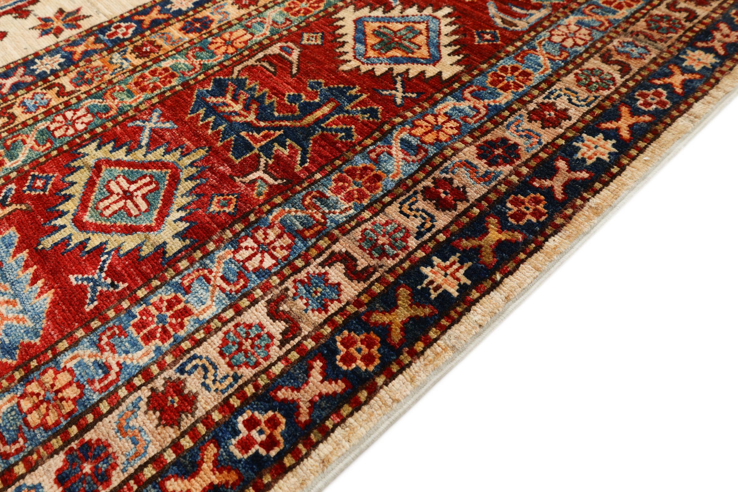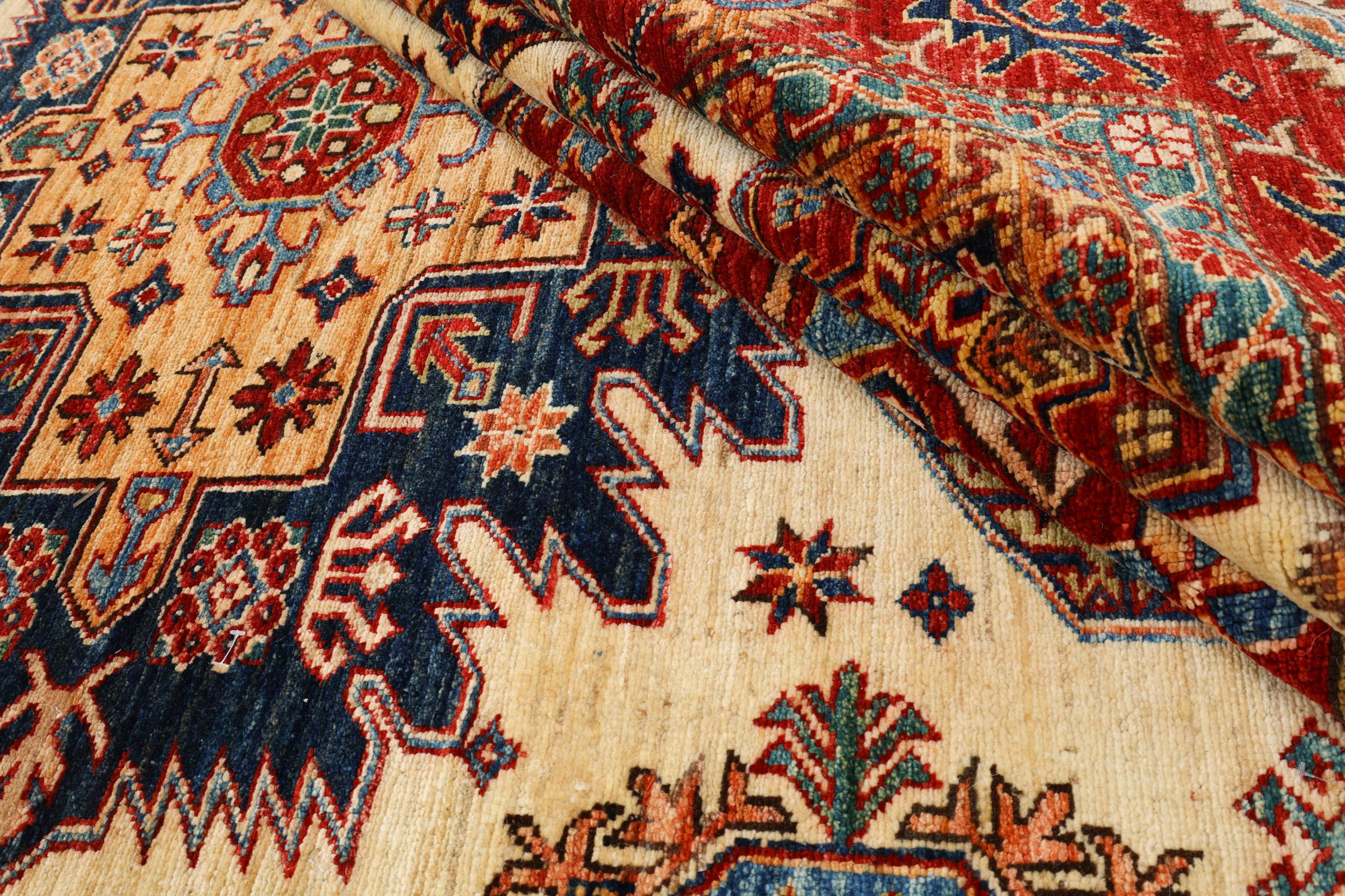 Kazak rugs are originally Caucasian rugs and are considered the best of their kind. They are hand-knotted from high-quality wool and are characterised by their design with warm natural colours and straight geometric shapes.