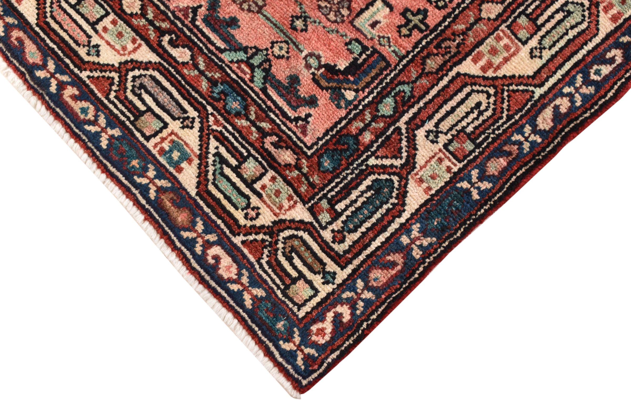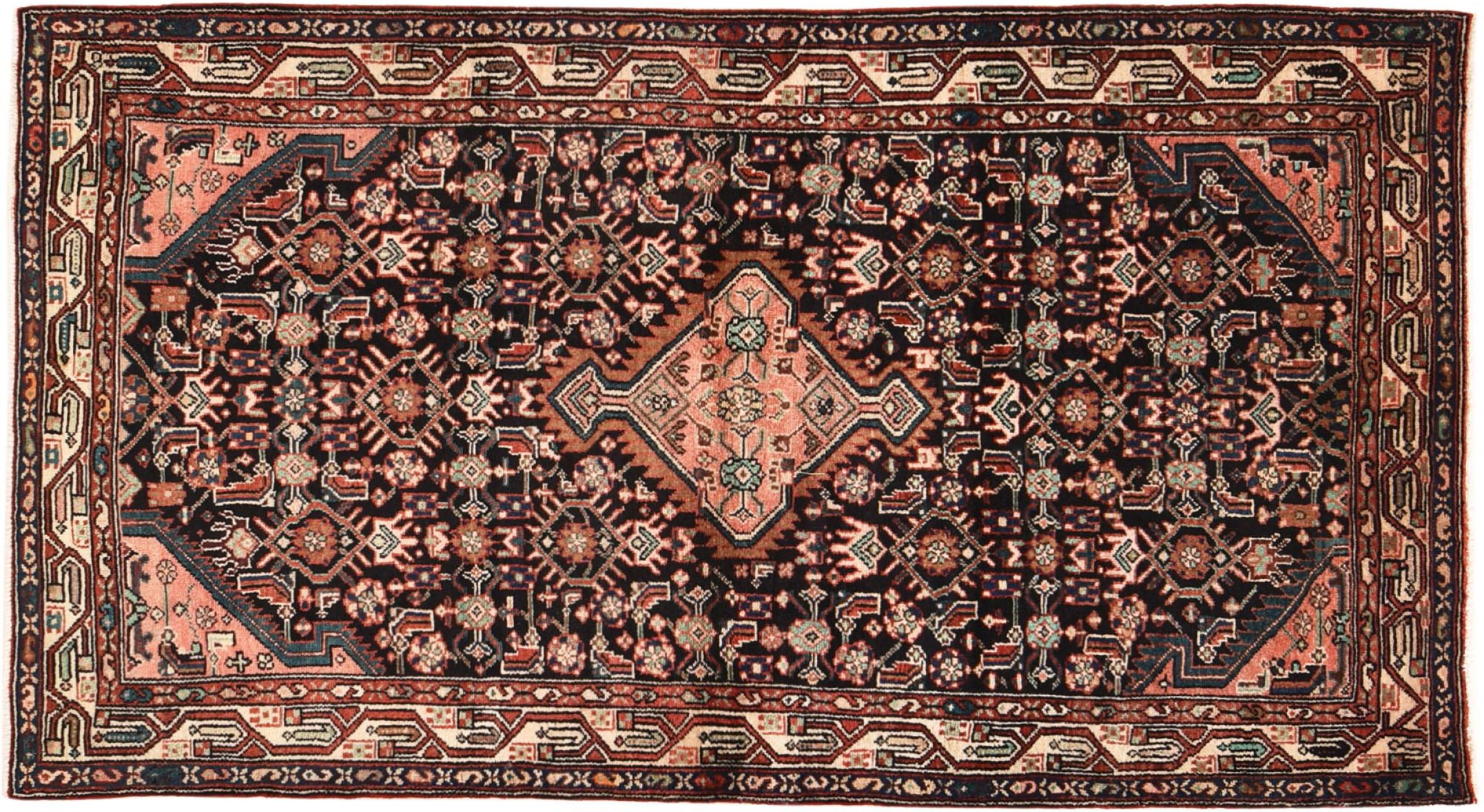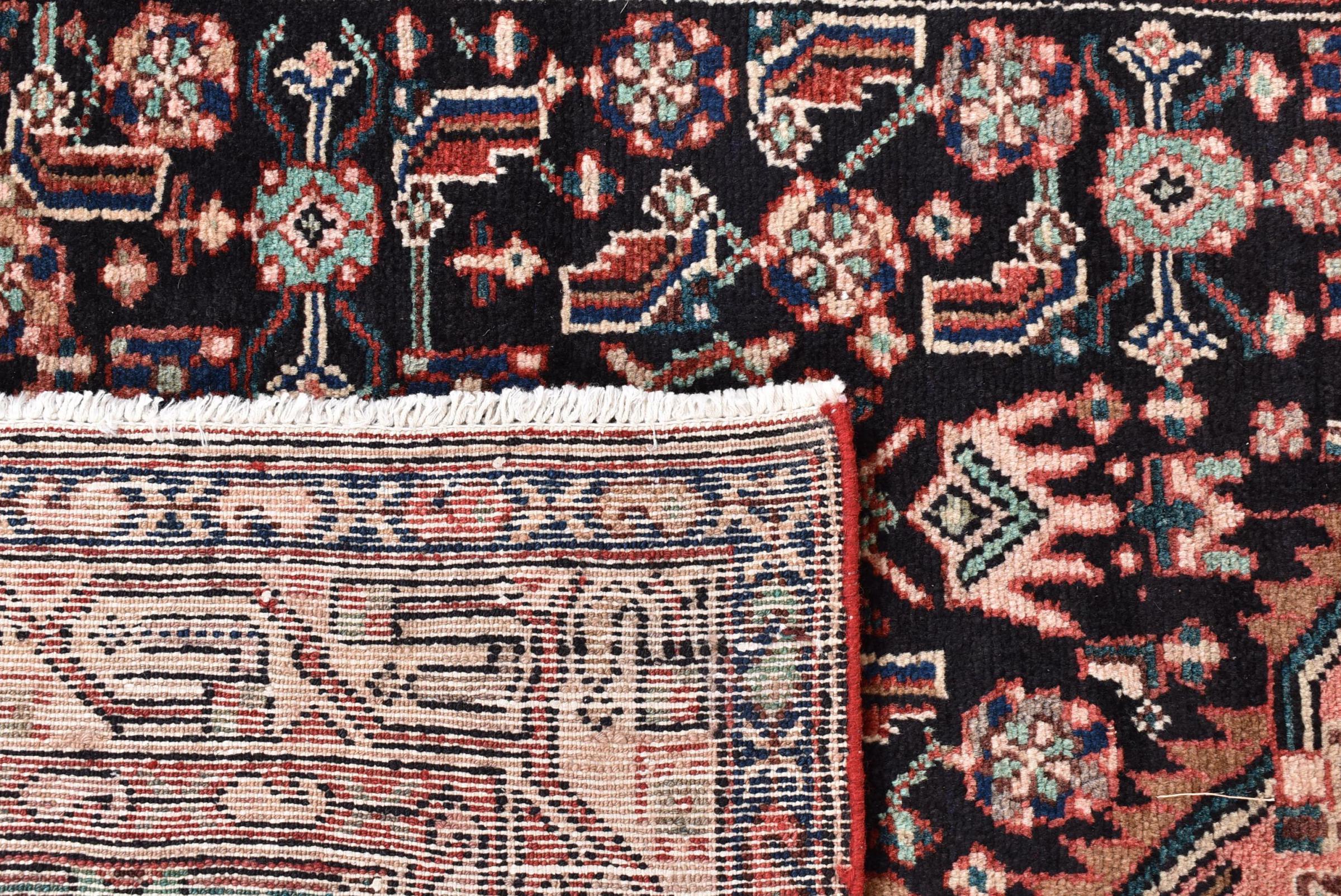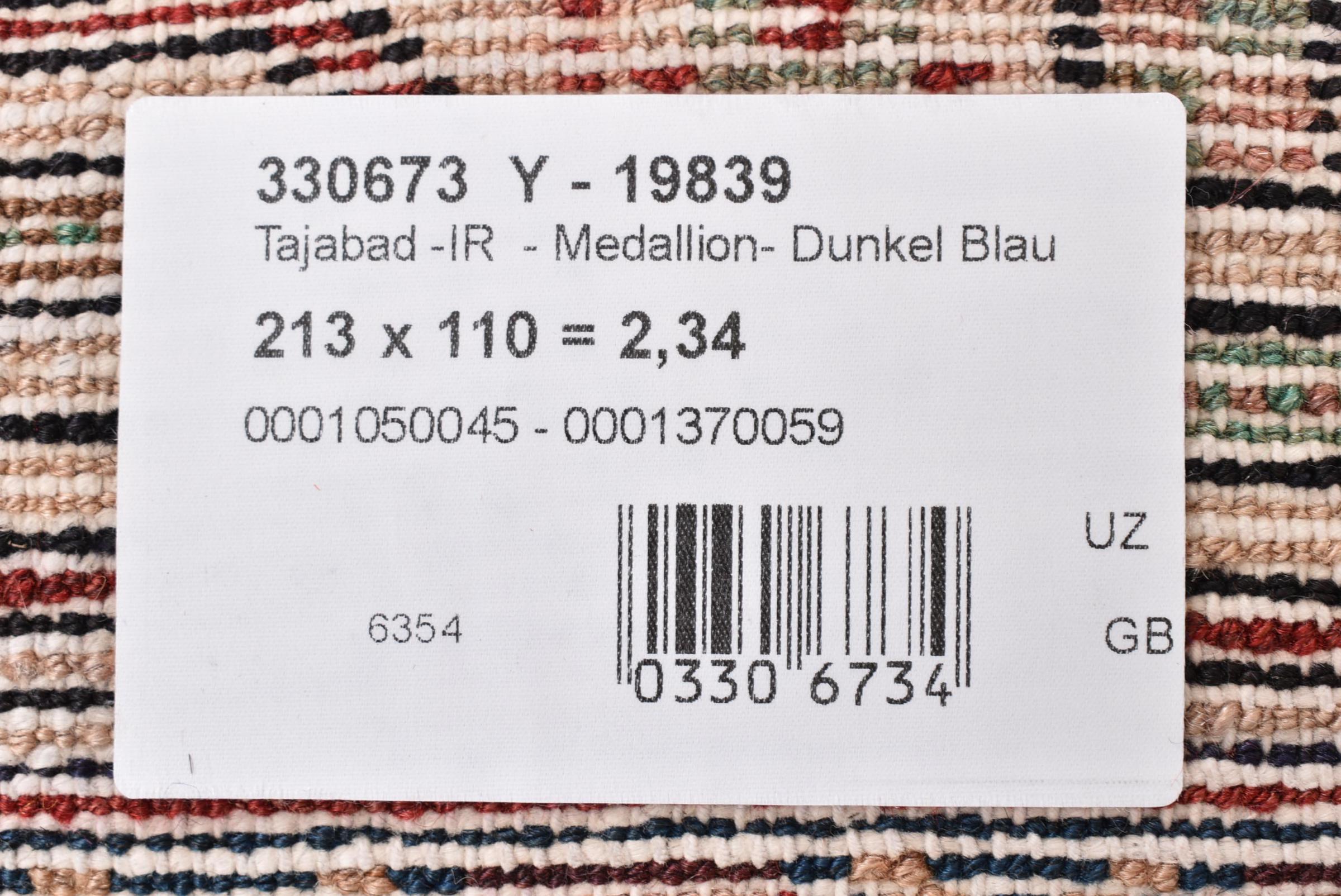 Carpet ID: 286235003389541 Size: 214x111 cm Thickness: ap. 12 mm Knot density: 72 000 - 90 000 / m² Manufacturing: Knotted by hand Pile: Handspun wool Warp: Cotton Origin: Persia Age: New Weight: ap. 8 kg Also know as Huseinabad In stock: Unique - Only 1 in stock