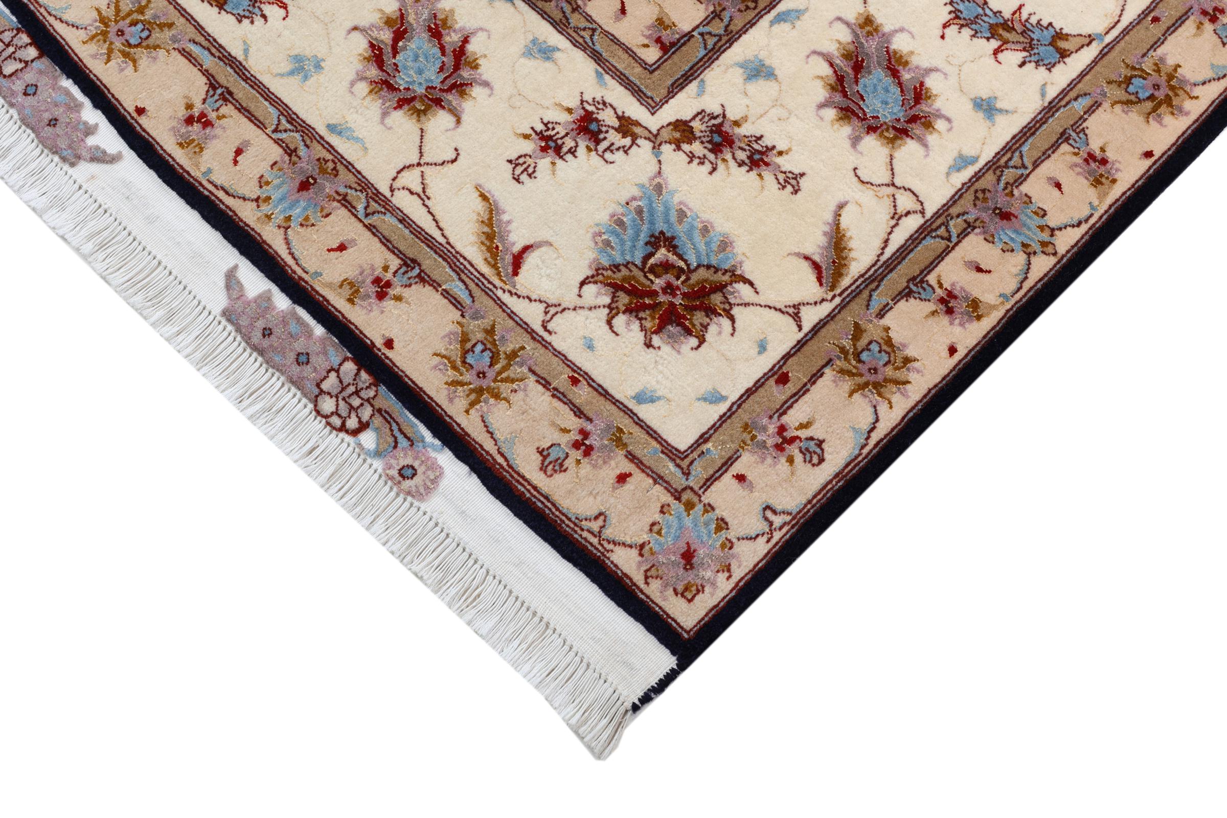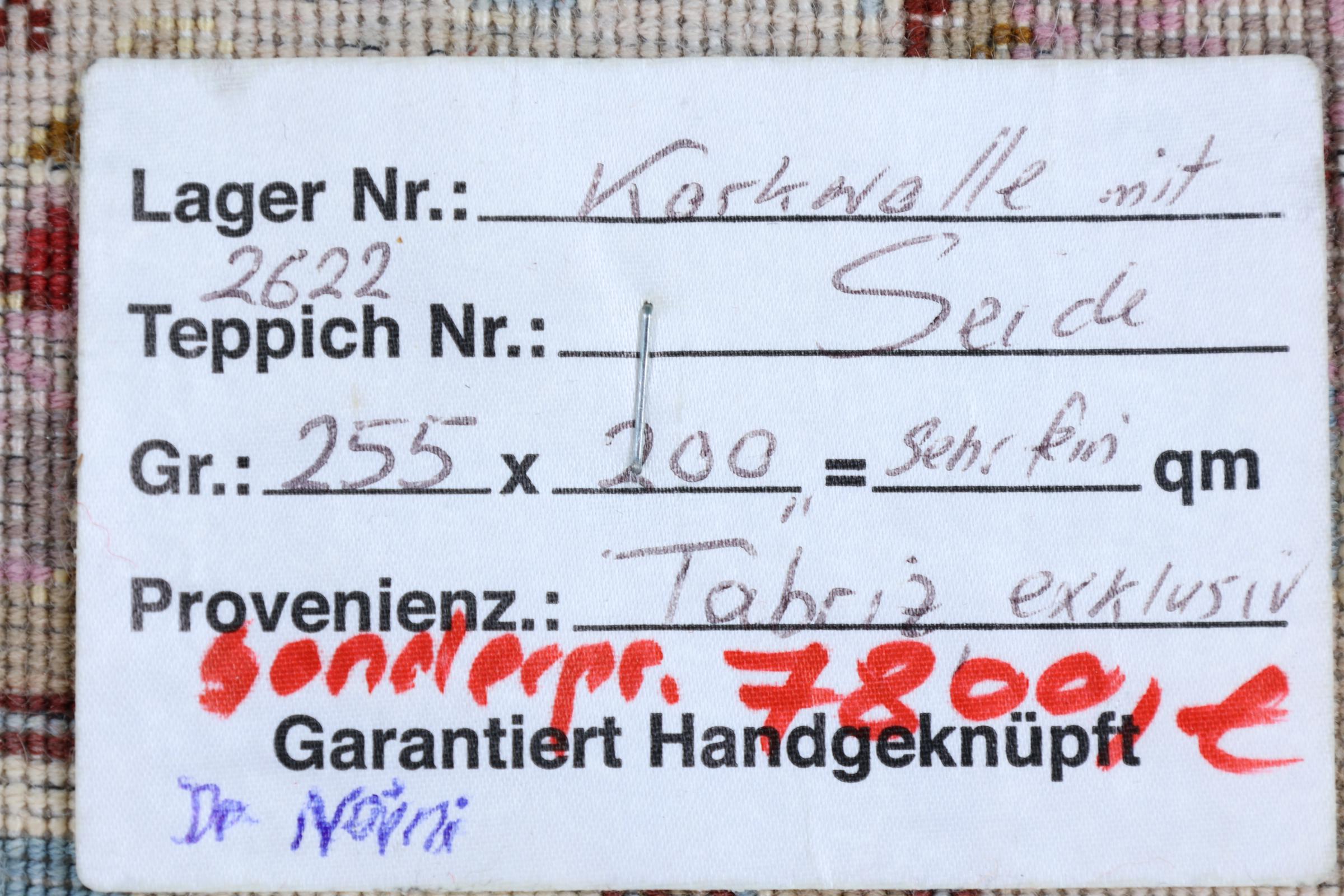 Carpet ID: 191766002622 Size: 255x200 cm Thickness: ap. 6 mm Knot density: 440 000 - 490 000 / m² Manufacturing: Knotted by hand Pile: Wool with silk Warp: Cotton Origin: Persia Age: New Weight: ap. 15 kg Also know as Tabris, Tabriz, Tebris, Tebriz, Täbris, 60Raj In stock: Unique - Only 1 in stock
