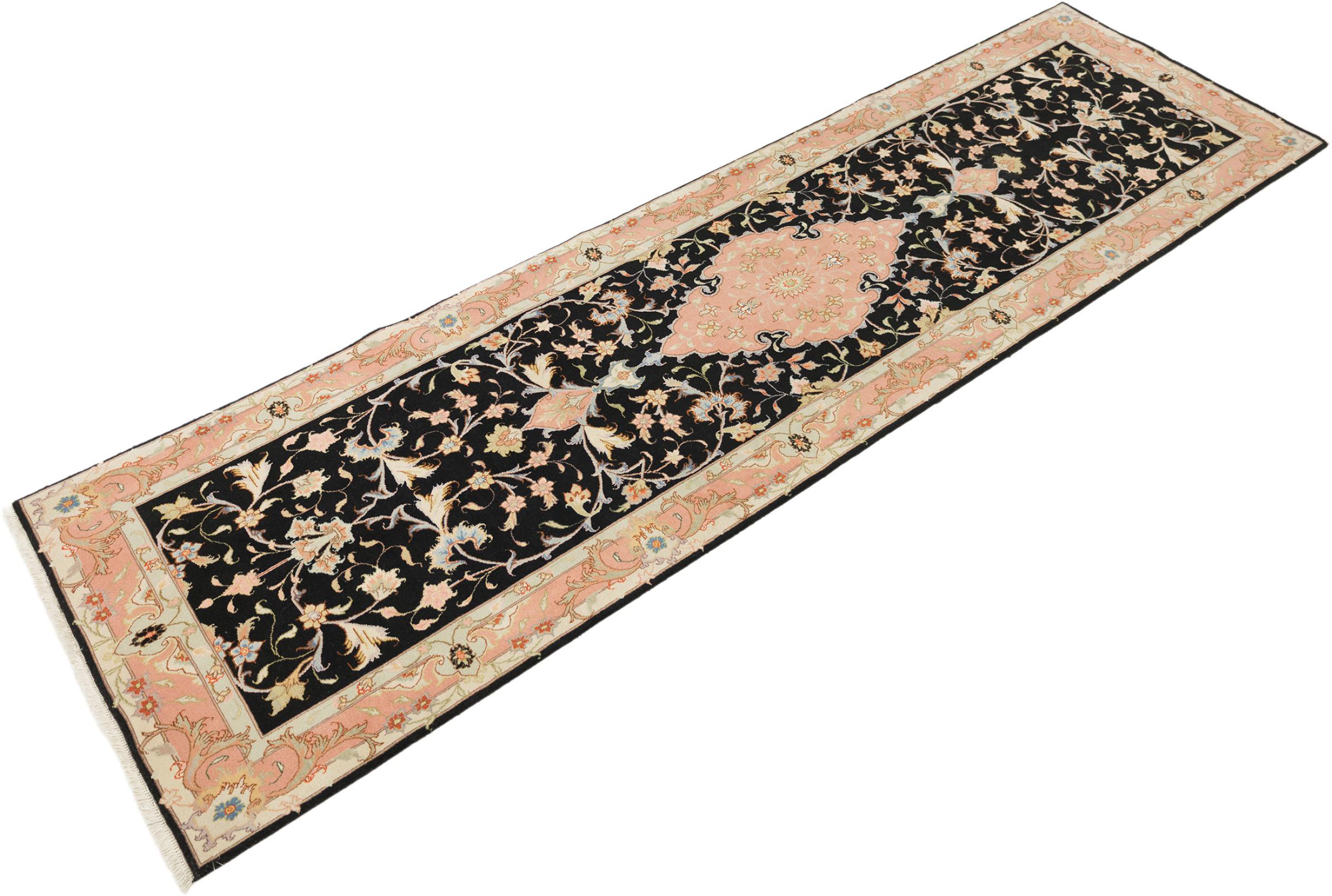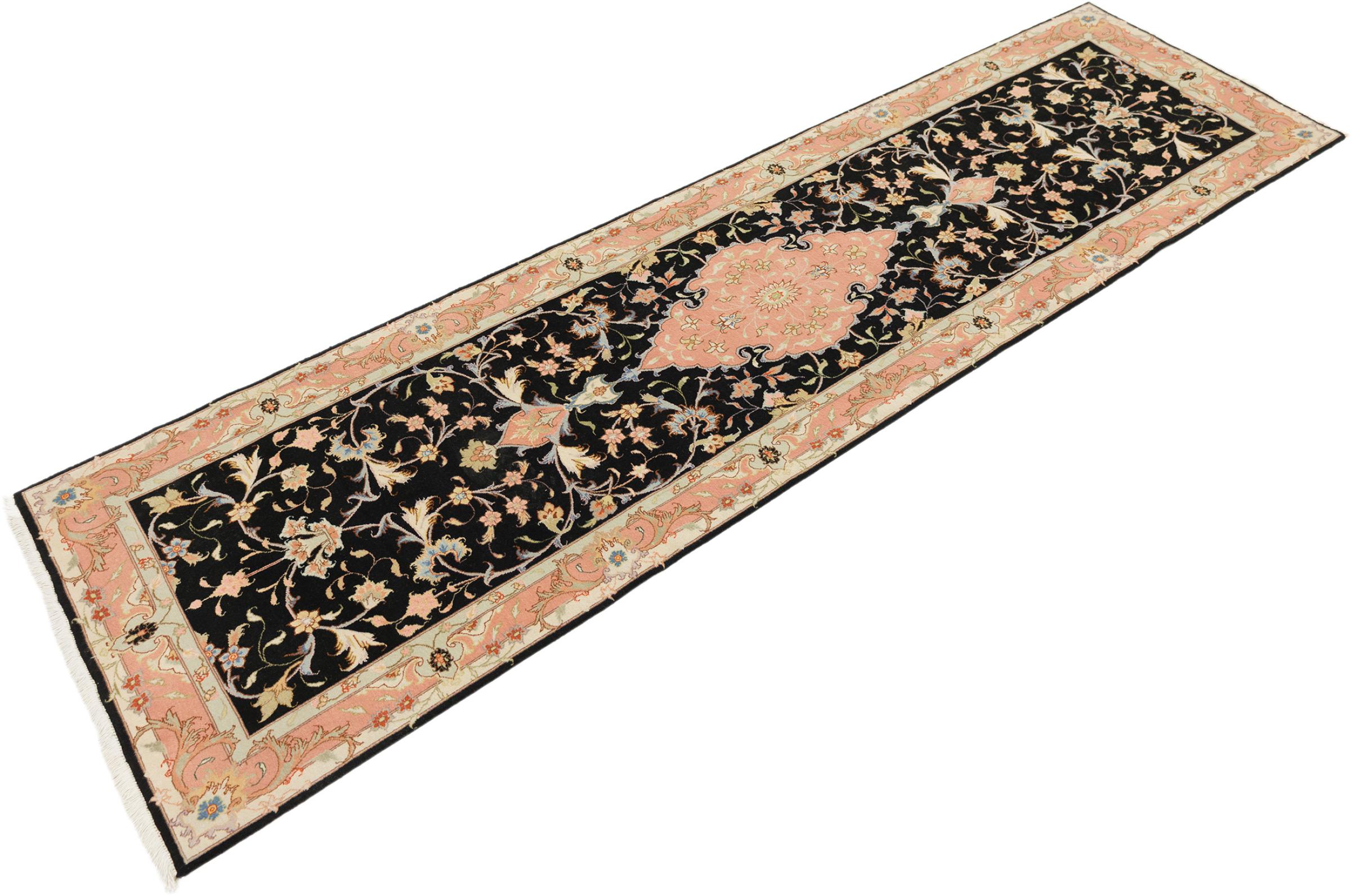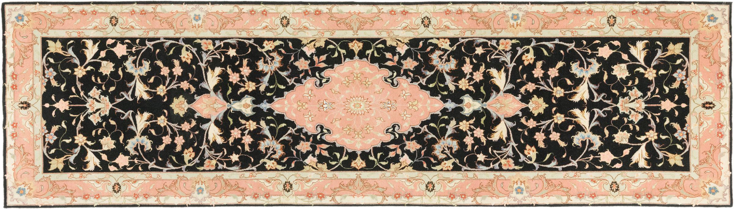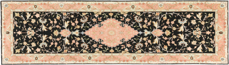 Carpet ID: 316777007274675 Size: 294x80 cm Thickness: ap. 10 mm Knot density: 440 000 - 490 000 / m² Manufacturing: Knotted by hand Pile: Wool with silk Warp: Cotton Origin: Persia Age: New Weight: ap. 7 kg In stock: Unique - Only 1 in stock