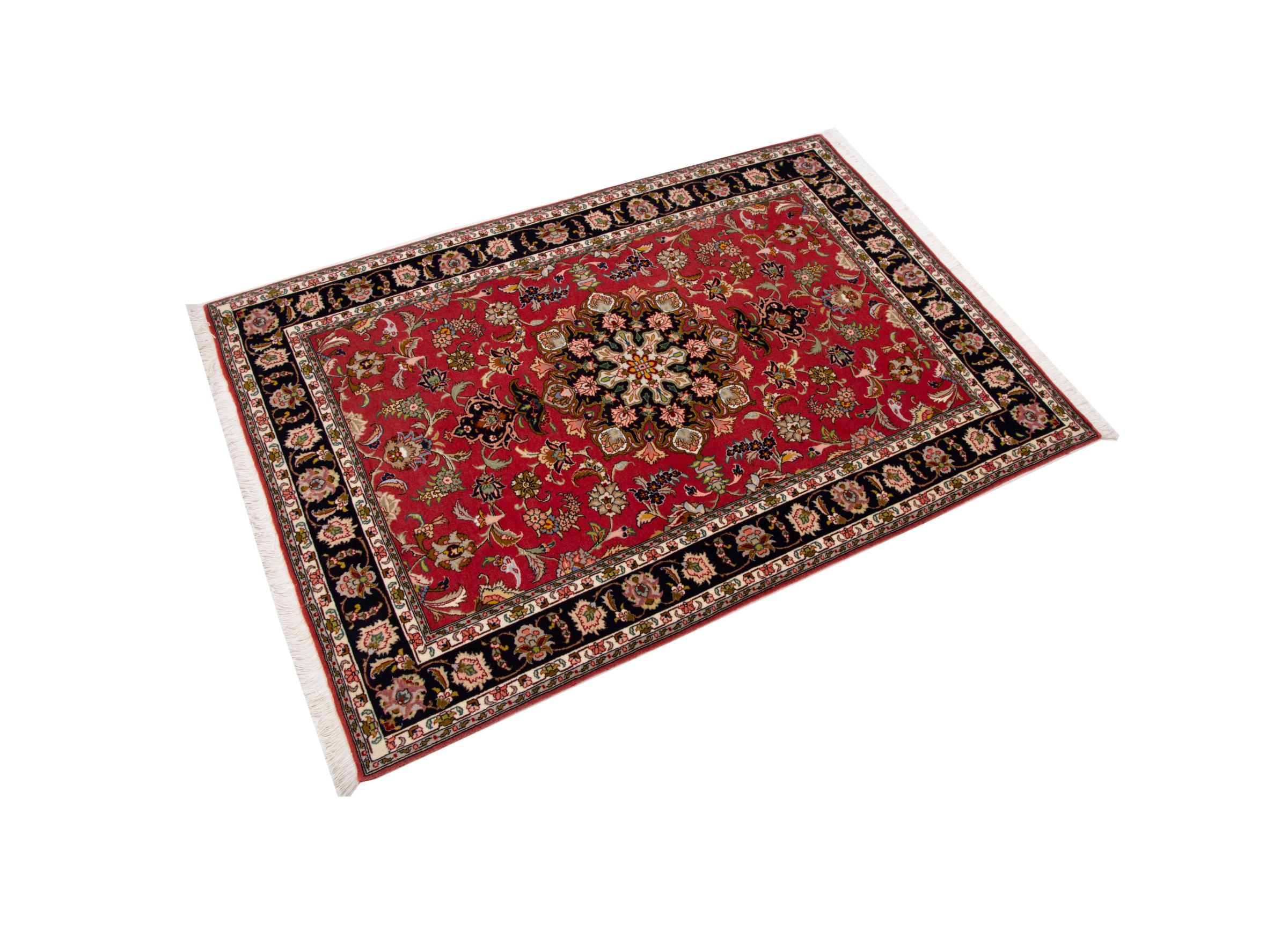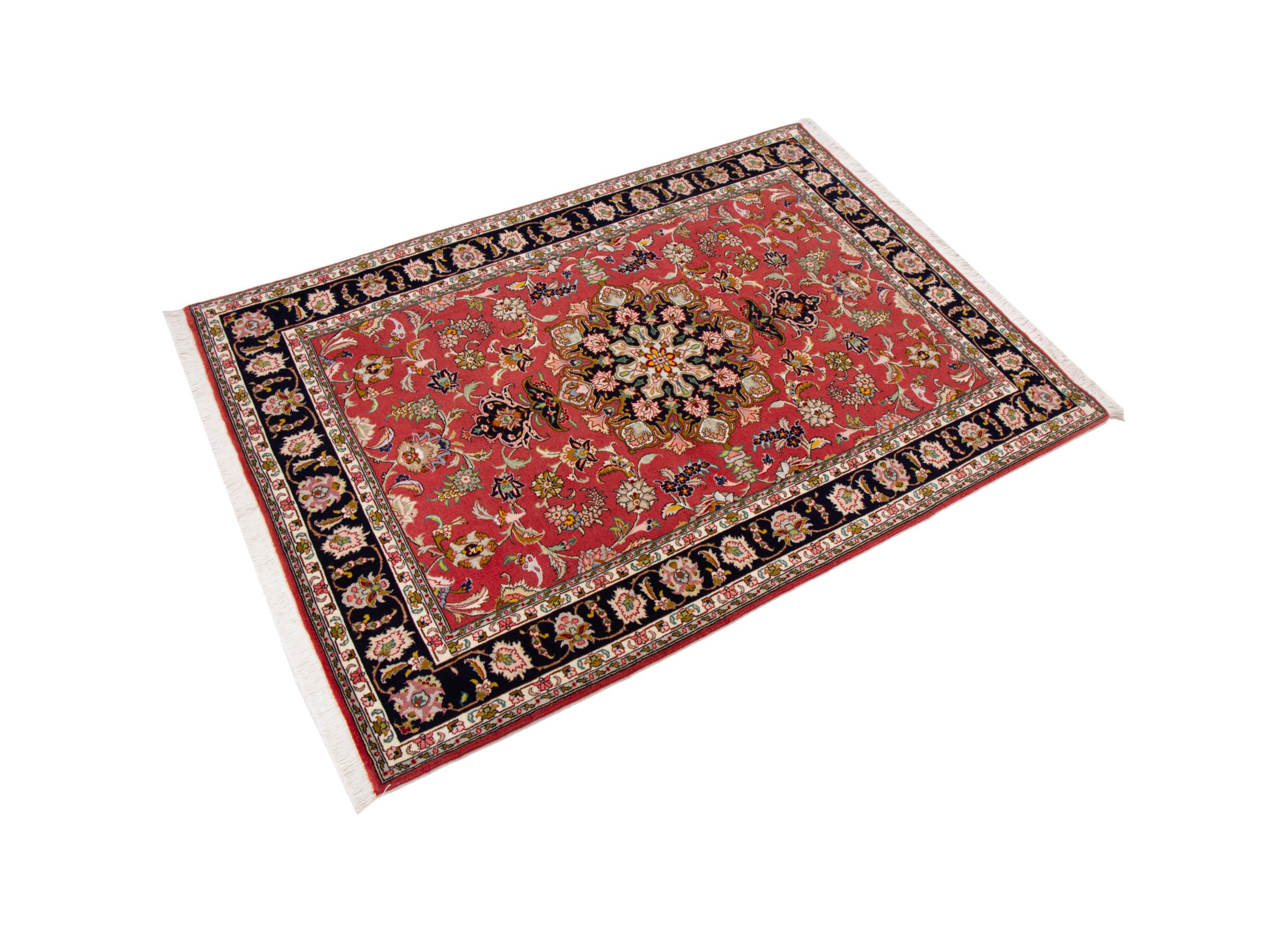 Carpet ID: 292457004347592 Size: 147x103 cm Thickness: ap. 7 mm Knot density: 440 000 - 490 000 / m² Manufacturing: Knotted by hand Pile: Wool with silk Warp: Cotton Origin: Persia Age: New Weight: ap. 5 kg Also know as Tabriz, Tabris, Täbris, Tebriz, Tebris, 40Raj, 50Raj In stock: Unique - Only 1 in stock