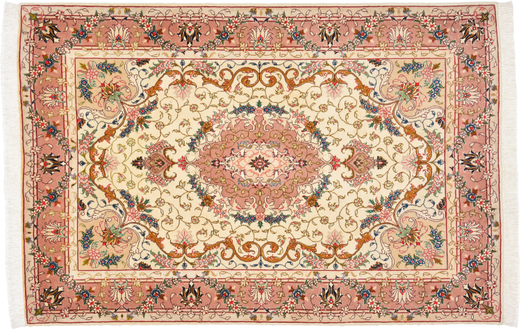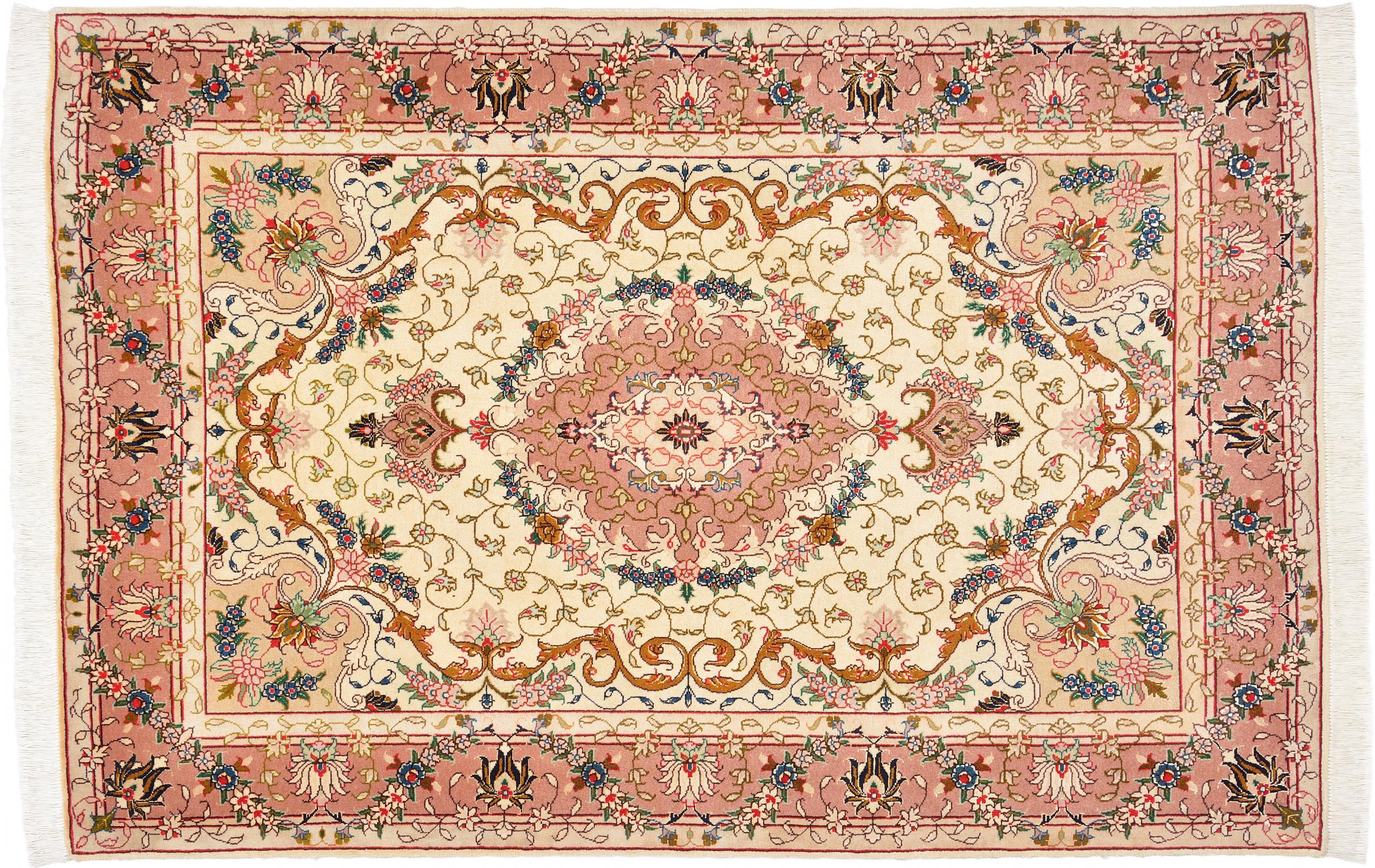 Carpet ID: 67106008627586 Size: 153x101 cm Thickness: ap. 7 mm Knot density: 450 000 - 500 000 / m² Manufacturing: Knotted by hand Pile: Wool with silk Warp: Cotton Origin: Persia Age: New Weight: ap. 5 kg Also know as Tabriz, Tabris, Täbris, Tebriz, Tebris, 40Raj, 50Raj In stock: Unique - Only 1 in stock