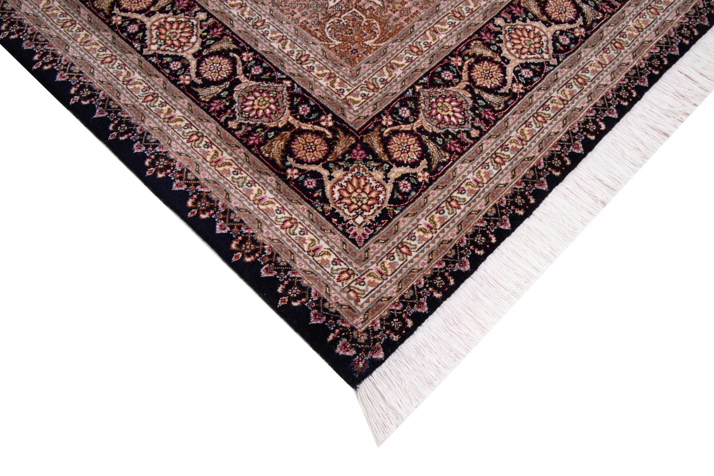 Carpet ID: 292233006044263 Size: 197x152 cm Thickness: ap. 7 mm Knot density: 440 000 - 490 000 / m² Manufacturing: Knotted by hand Pile: Wool with silk Warp: Cotton Origin: Persia Age: New Weight: ap. 9 kg Also know as Tabriz, Tabris, Täbris, Tebriz, Tebris, 40Raj, 50Raj In stock: Unique - Only 1 in stock