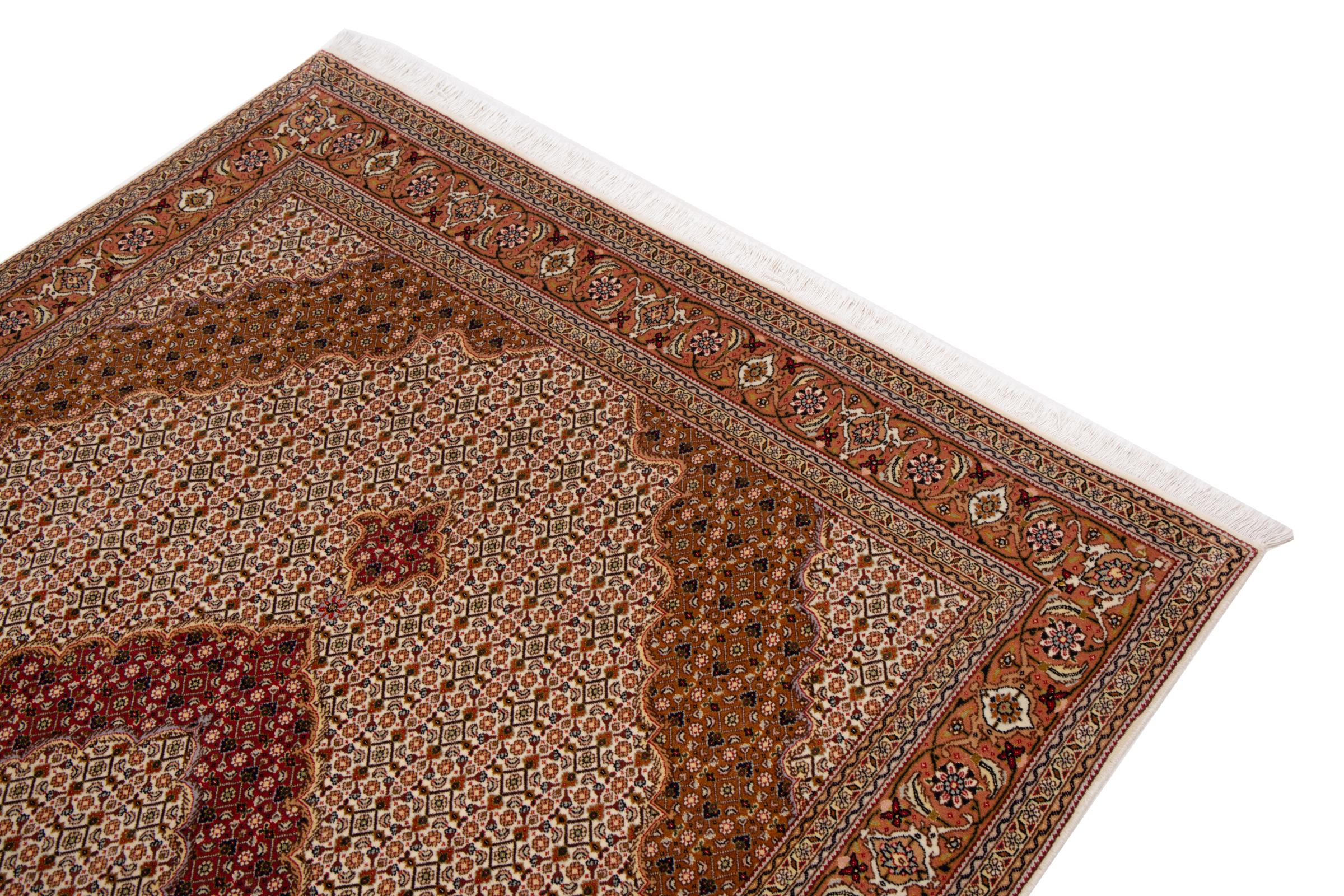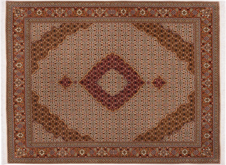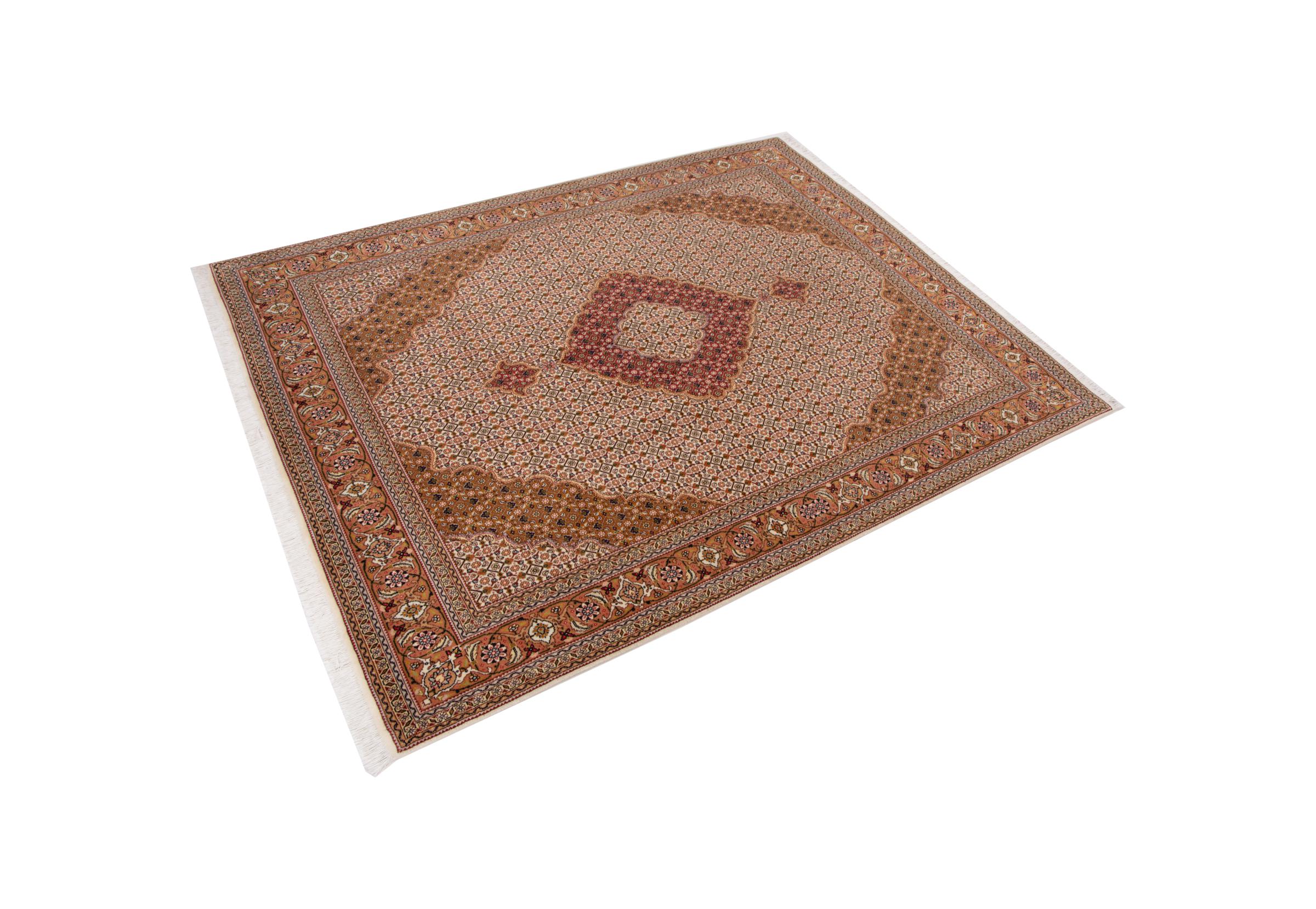 Carpet ID: 292326004569794 Size: 199x147 cm Thickness: ap. 7 mm Knot density: 440 000 - 490 000 / m² Manufacturing: Knotted by hand Pile: Wool with silk Warp: Cotton Origin: Persia Age: New Weight: ap. 9 kg Also know as Tabriz, Tabris, Täbris, Tebriz, Tebris, 40Raj, 50Raj In stock: Unique - Only 1 in stock