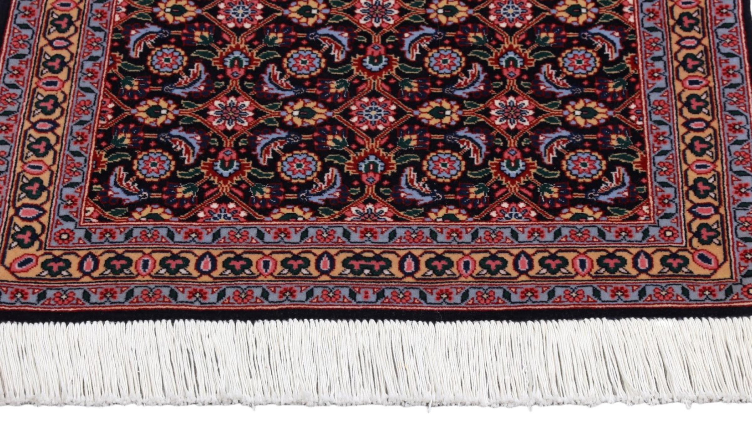 Carpet ID: 262433008522773 Size: 200x61 cm Thickness: ap. 7 mm Knot density: 450 000 - 500 000 / m² Manufacturing: Knotted by hand Pile: Wool with silk Warp: Cotton Origin: Persia Age: New Weight: ap. 4 kg Also know as Tabriz, Tabris, Täbris, Tebriz, Tebris, 40Raj, 50Raj In stock: Unique - Only 1 in stock