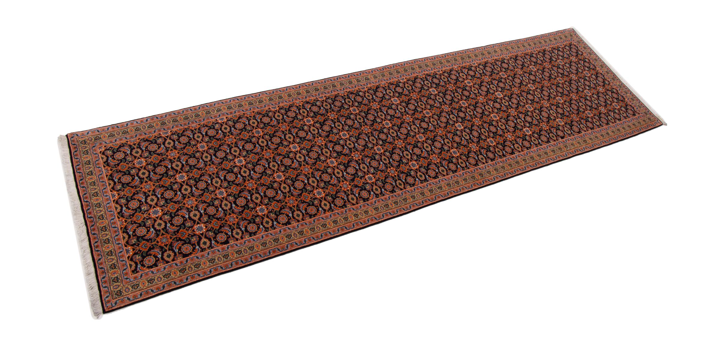 Carpet ID: 29289200535522 Size: 279x75 cm Thickness: ap. 7 mm Knot density: 440 000 - 490 000 / m² Manufacturing: Knotted by hand Pile: Handspun wool Warp: Cotton Origin: Persia Age: New Weight: ap. 6 kg Also know as Tabriz, Tabris, Täbris, Tebriz, Tebris, 40Raj, 50Raj In stock: Unique - Only 1 in stock