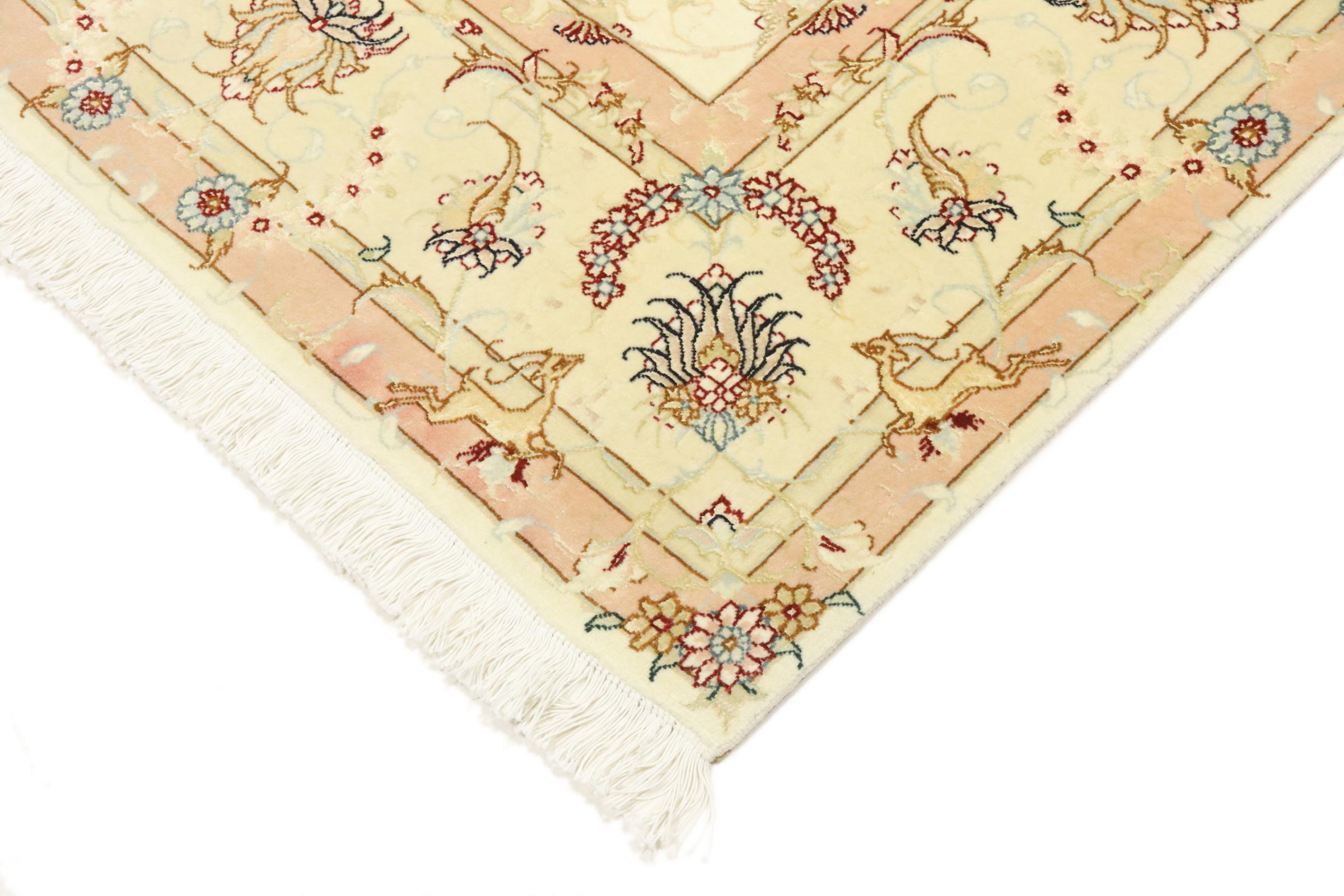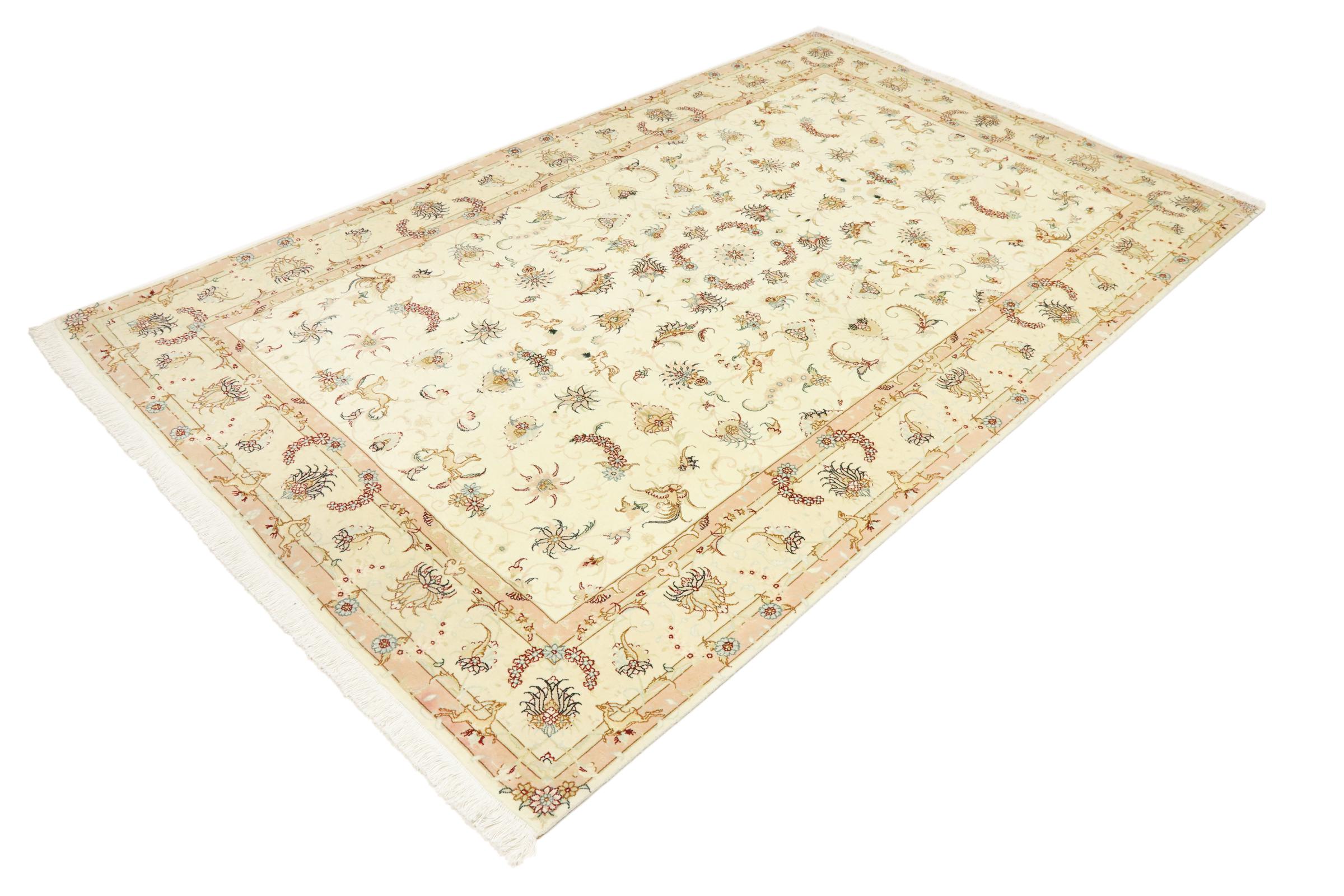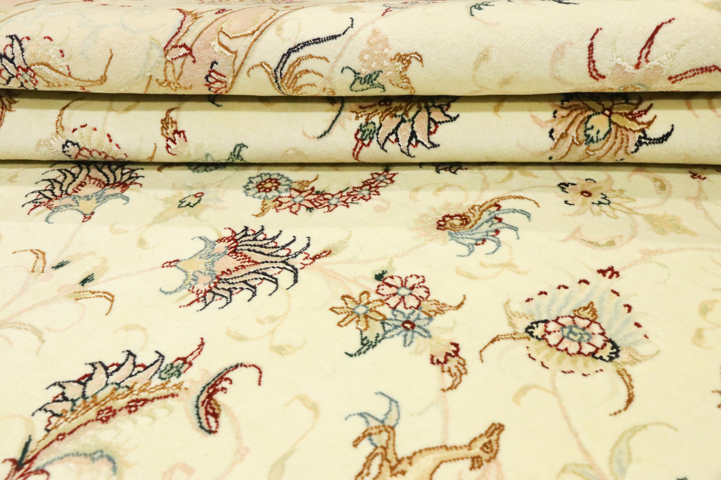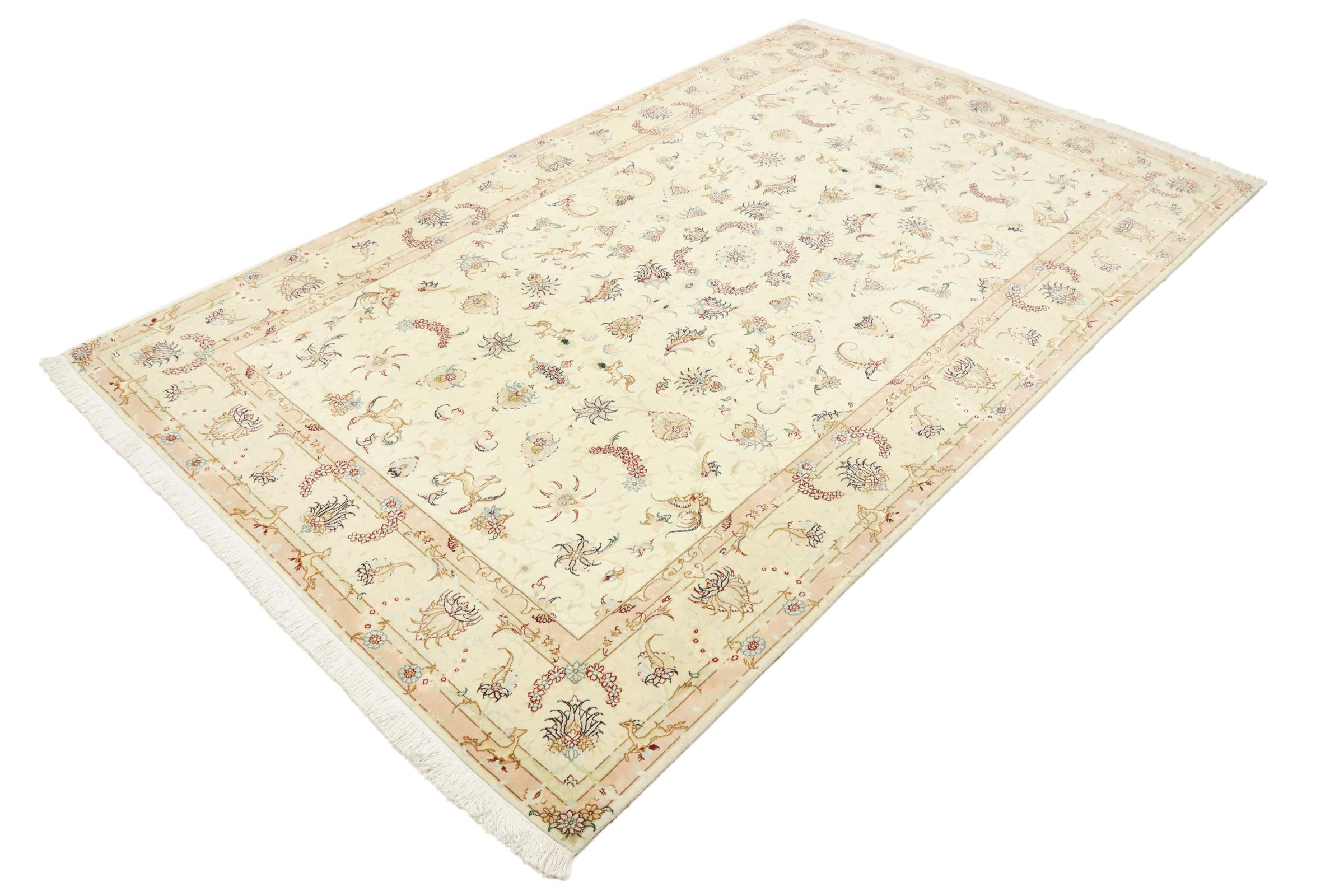 Carpet ID: 181573005066805 Size: 285x177 cm Thickness: ap. 7 mm Knot density: 440 000 - 490 000 / m² Manufacturing: Knotted by hand Pile: Wool with silk Warp: Cotton Origin: Persia Age: New Weight: ap. 15 kg Also know as Tabriz, Tabris, Täbris, Tebriz, Tebris, 40Raj, 50Raj In stock: Unique - Only 1 in stock