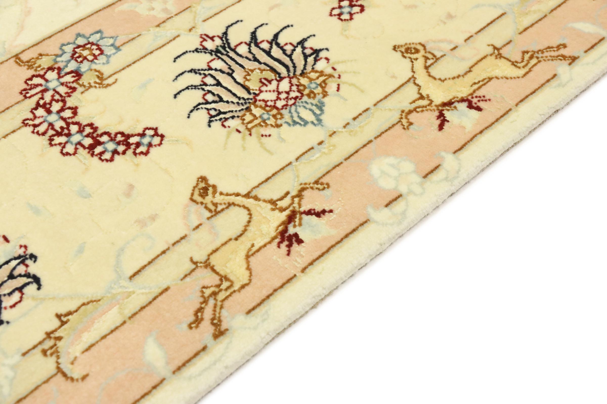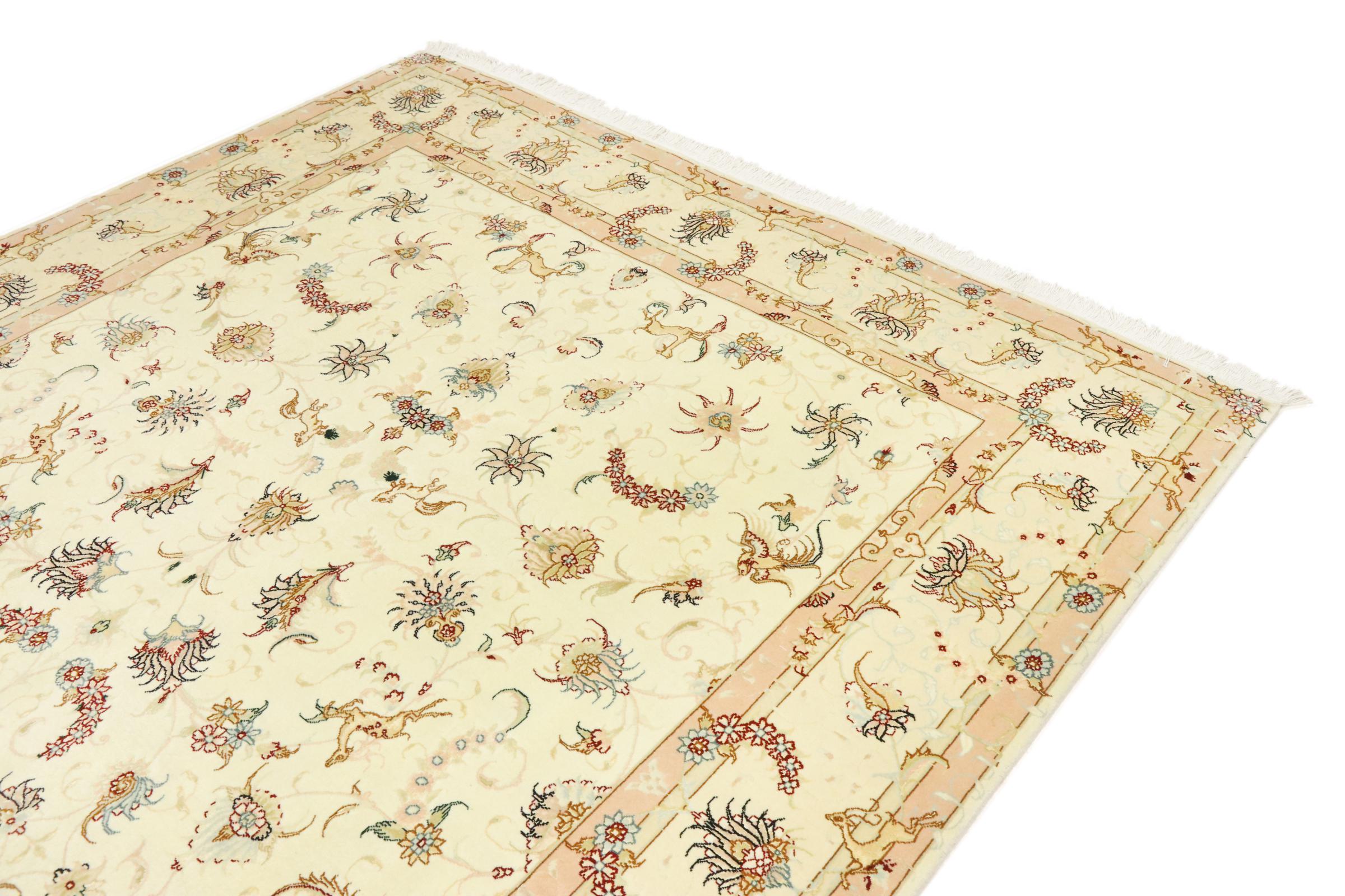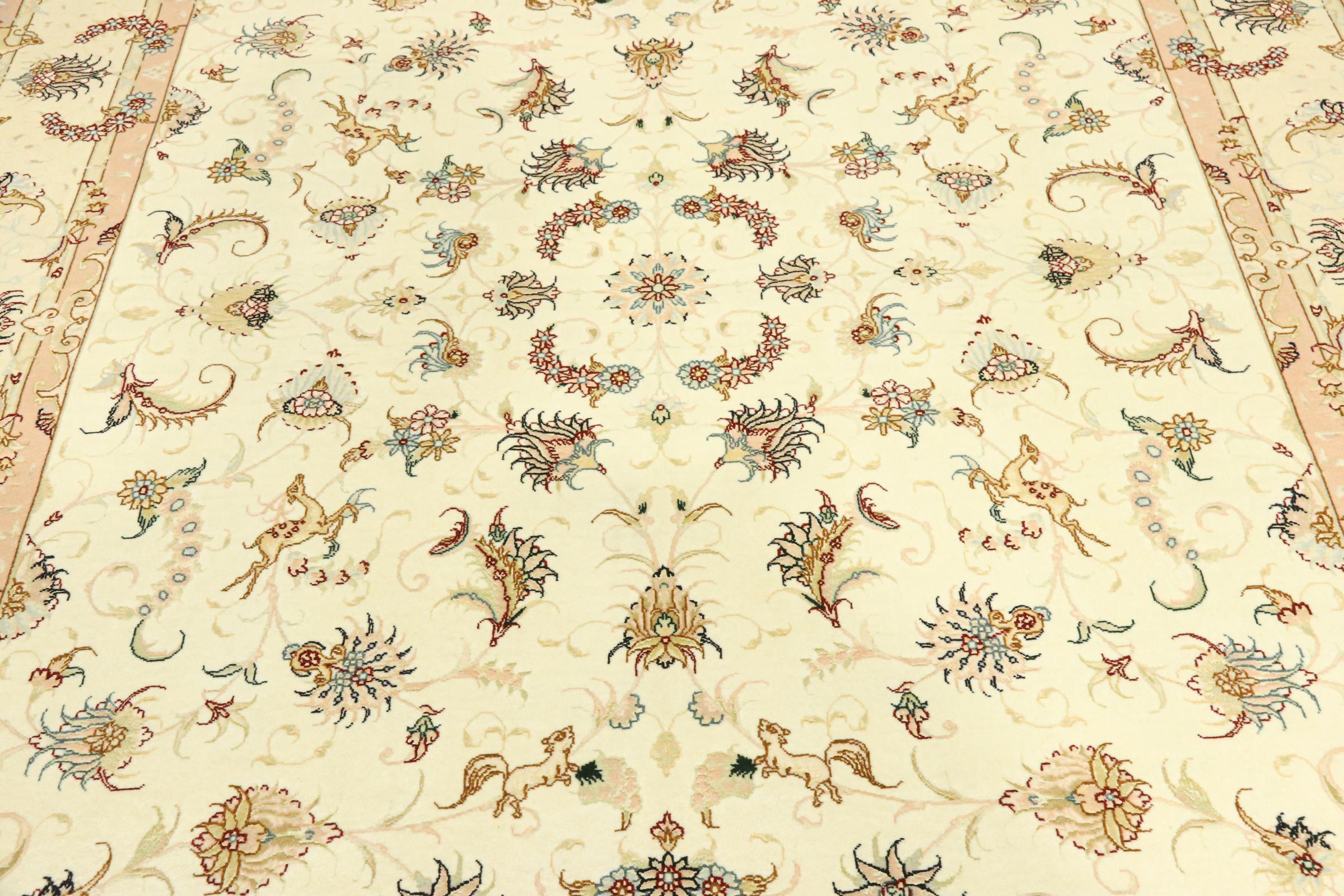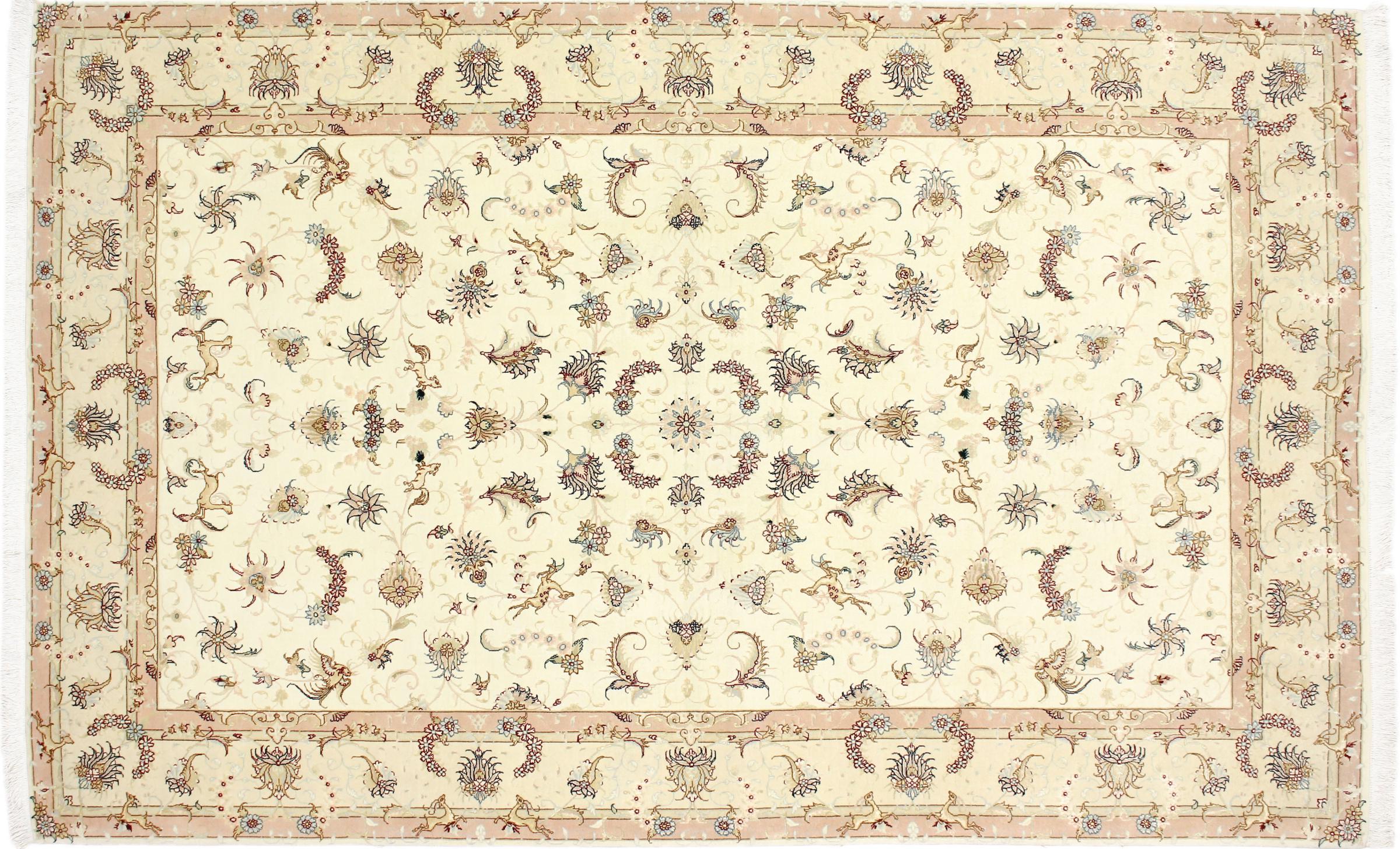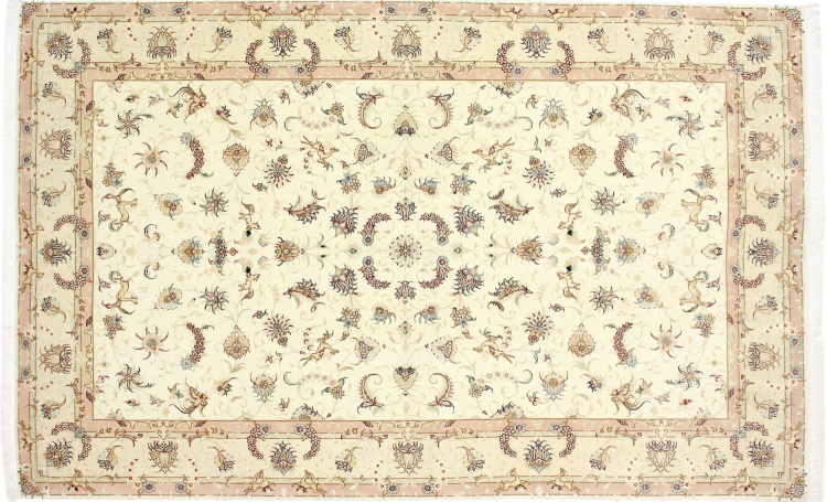 Carpet ID: 181573005066805 Size: 285x177 cm Thickness: ap. 7 mm Knot density: 440 000 - 490 000 / m² Manufacturing: Knotted by hand Pile: Wool with silk Warp: Cotton Origin: Persia Age: New Weight: ap. 15 kg Also know as Tabriz, Tabris, Täbris, Tebriz, Tebris, 40Raj, 50Raj In stock: Unique - Only 1 in stock