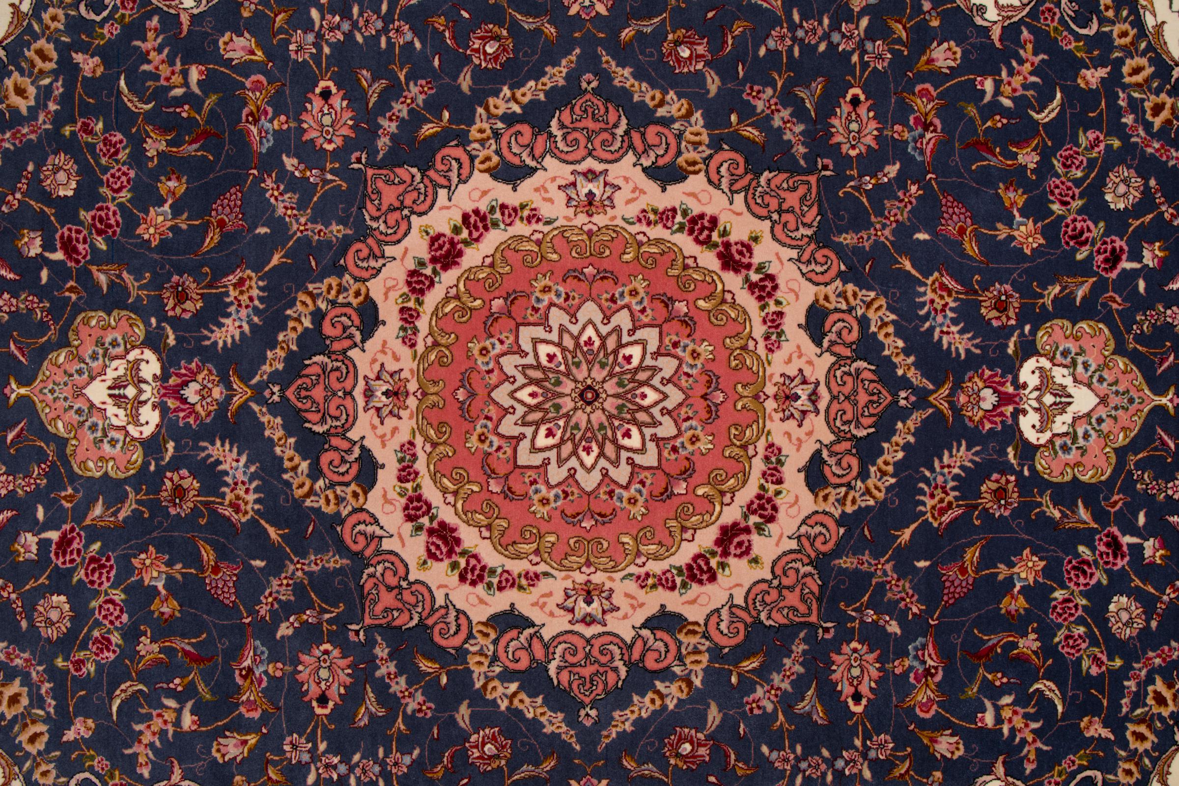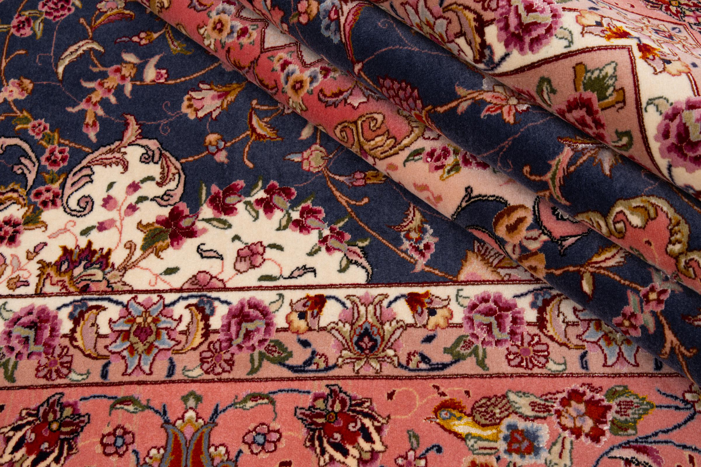 Carpet ID: 292970002615859 Size: 291x205 cm Thickness: ap. 7 mm Knot density: 440 000 - 490 000 / m² Manufacturing: Knotted by hand Pile: Wool with silk Warp: Cotton Origin: Persia Age: New Weight: ap. 18 kg Also know as Tabriz, Tabris, Täbris, Tebriz, Tebris, 40Raj, 50Raj In stock: Unique - Only 1 in stock