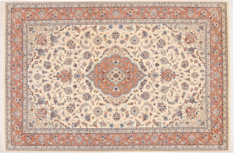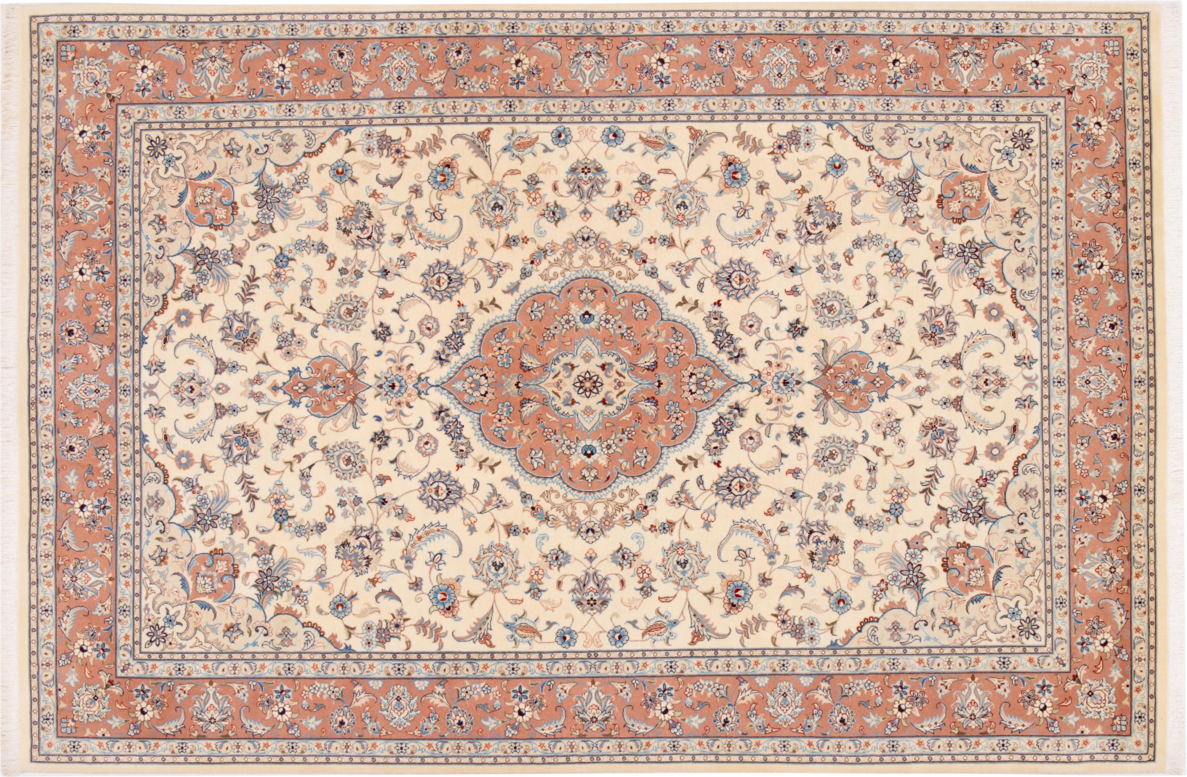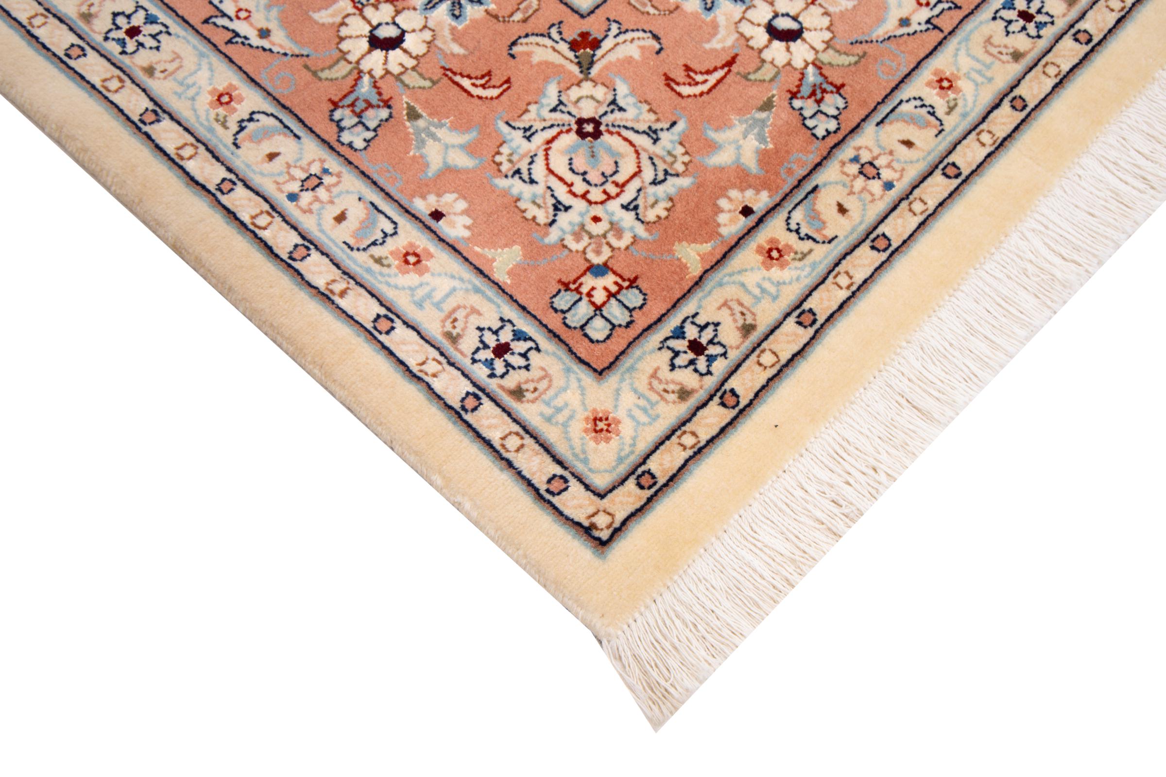 Carpet ID: 292968003339684 Size: 299x199 cm Thickness: ap. 7 mm Knot density: 440 000 - 490 000 / m² Manufacturing: Knotted by hand Pile: Wool with silk Warp: Cotton Origin: Persia Age: New Weight: ap. 18 kg Also know as Tabriz, Tabris, Täbris, Tebriz, Tebris, 40Raj, 50Raj In stock: Unique - Only 1 in stock