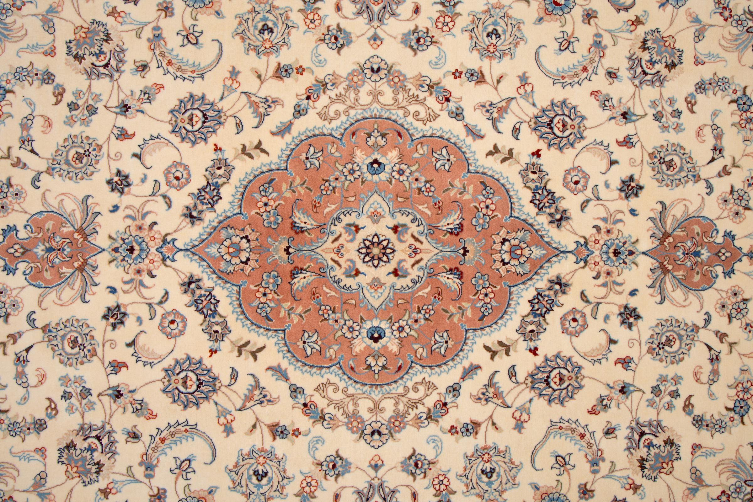 A combination of the probably best properties of sheep wool and pure silk. The natural wool is characterized by high durability, dirt-repellent properties and thermal insulation. At the same time, the silk content creates a unique shine that appears to glow from the right perspective. Ornaments made of silk thus set accents in the design, creating a real wow-effect. Even today, silk is an expression of pure luxury. It is elaborately obtained by hand and woven into textile fibres.