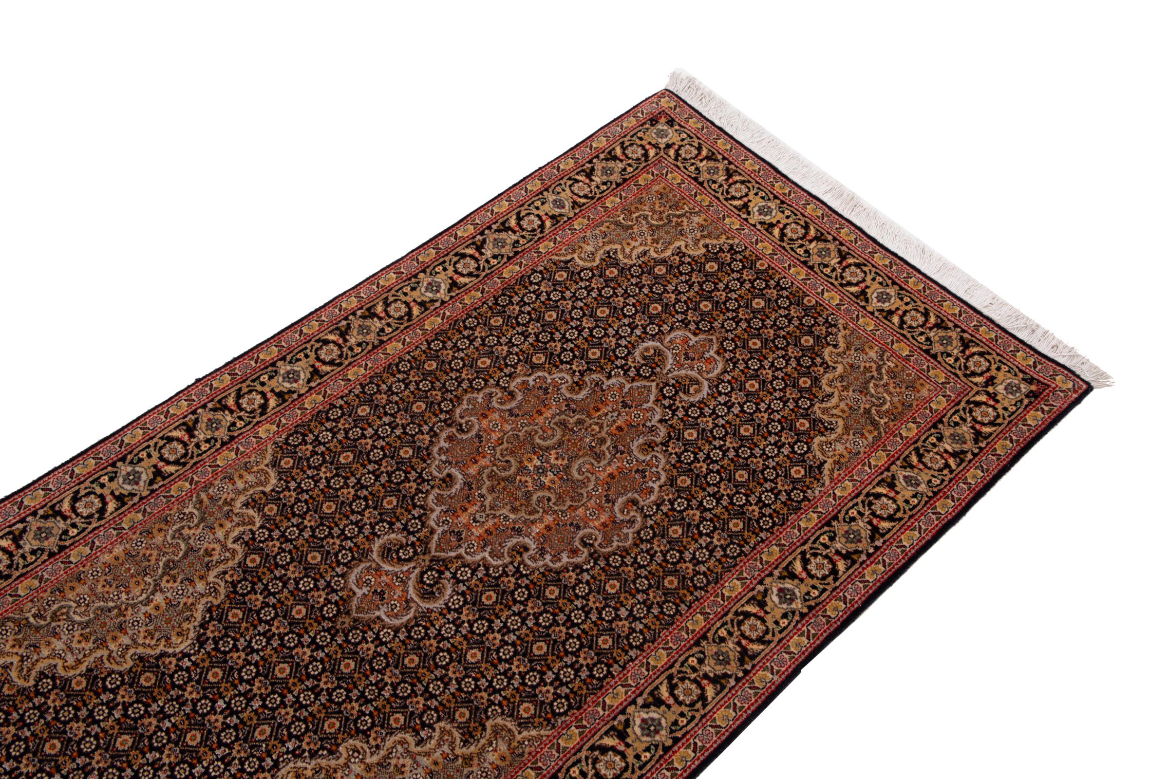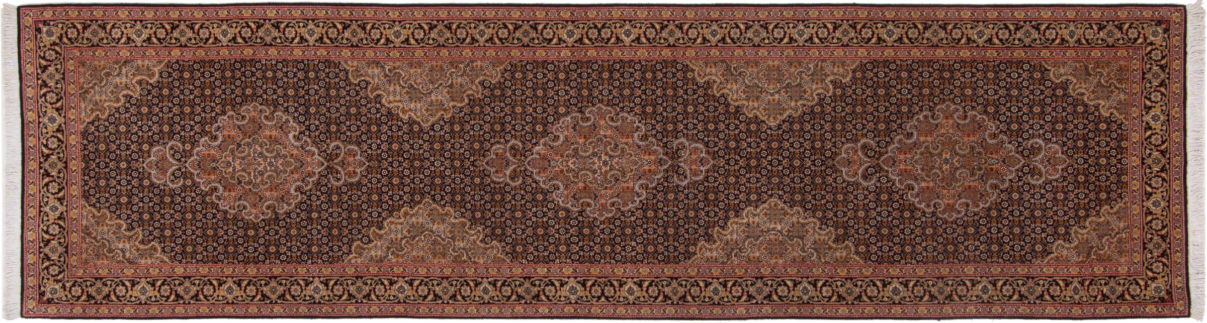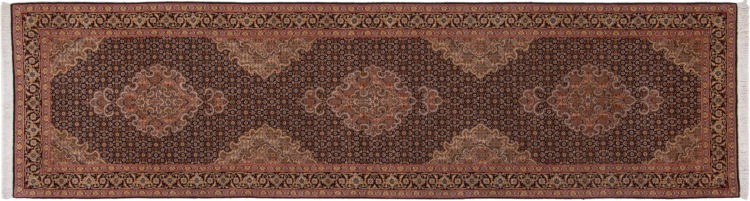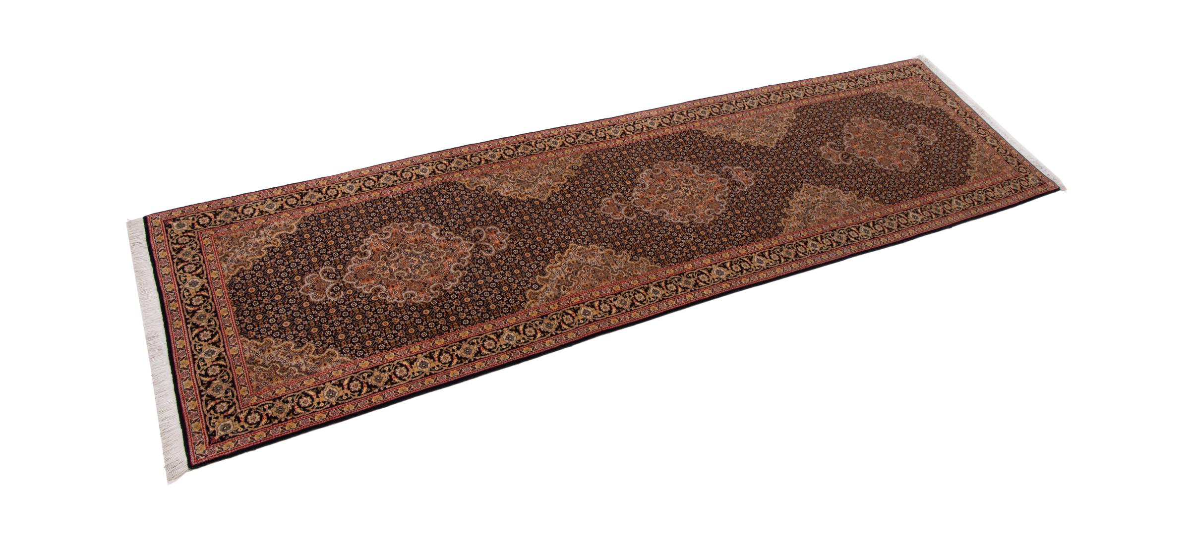 Carpet ID: 292813002568927 Size: 307x83 cm Thickness: ap. 7 mm Knot density: 440 000 - 490 000 / m² Manufacturing: Knotted by hand Pile: Wool with silk Warp: Cotton Origin: Persia Age: New Weight: ap. 8 kg Also know as Tabriz, Tabris, Täbris, Tebriz, Tebris, 40Raj, 50Raj In stock: Unique - Only 1 in stock