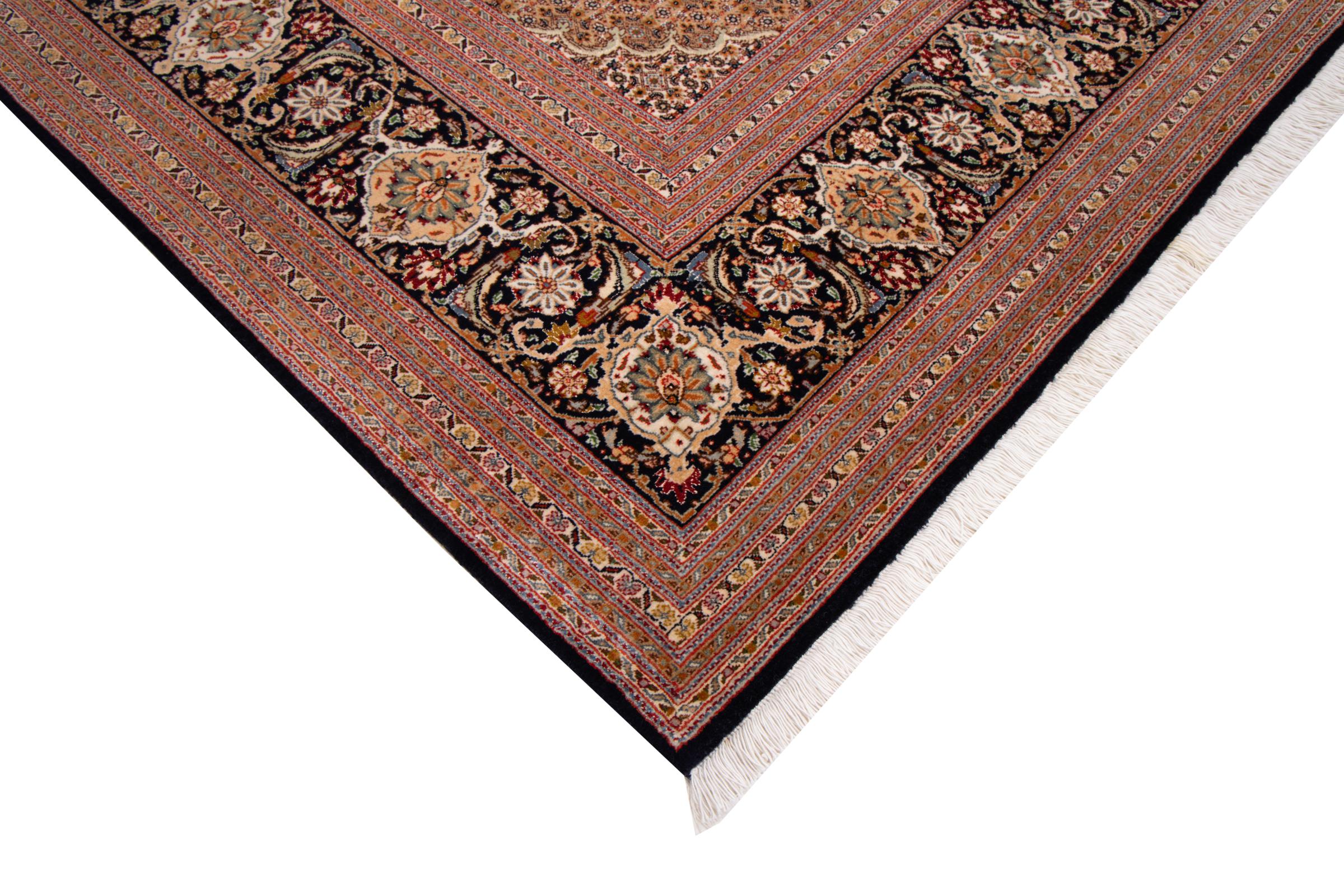 Carpet ID: 293832005199238 Size: 345x248 cm Thickness: ap. 7 mm Knot density: 440 000 - 490 000 / m² Manufacturing: Knotted by hand Pile: Wool with silk Warp: Cotton Origin: Persia Age: New Weight: ap. 26 kg Also know as Tabriz, Tabris, Täbris, Tebriz, Tebris, 40Raj, 50Raj In stock: Unique - Only 1 in stock