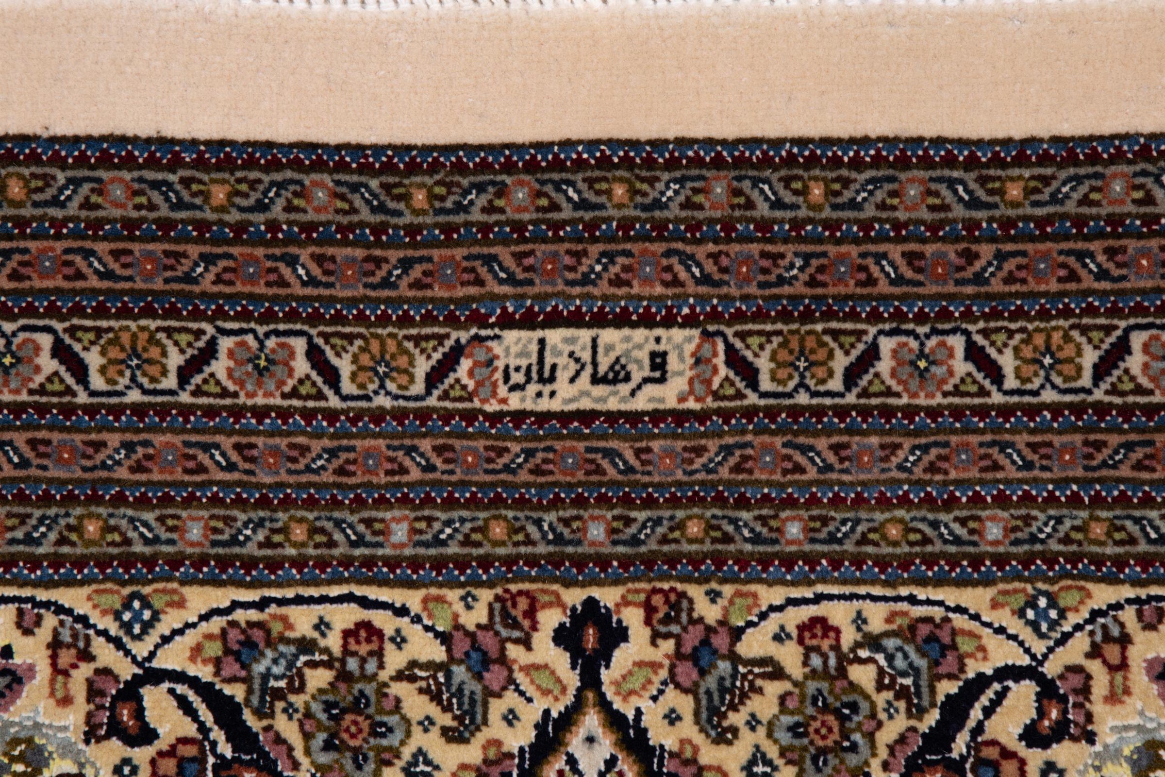 Carpet ID: 293841004022748 Size: 353x249 cm Thickness: ap. 7 mm Knot density: 440 000 - 490 000 / m² Manufacturing: Knotted by hand Pile: Wool with silk Warp: Cotton Origin: Persia Age: New Weight: ap. 26 kg Also know as Tabriz, Tabris, Täbris, Tebriz, Tebris, 40Raj, 50Raj In stock: Unique - Only 1 in stock