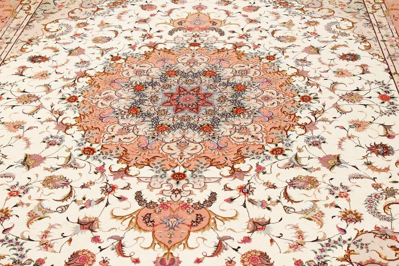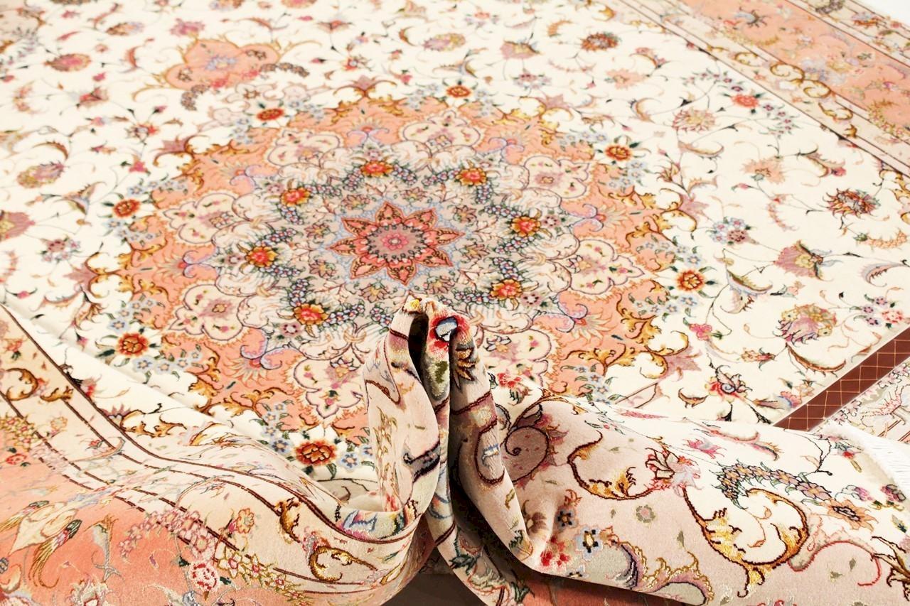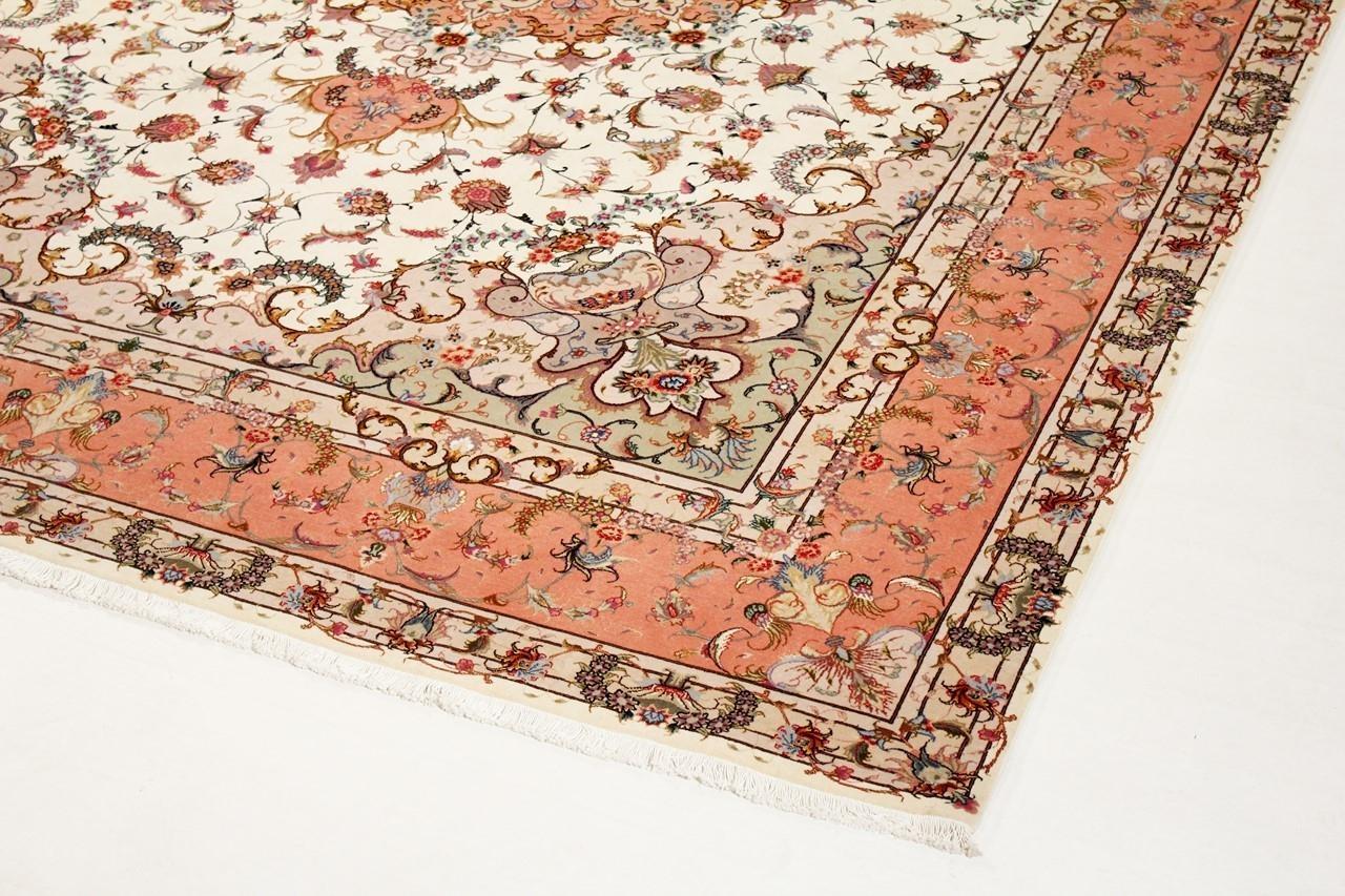 Carpet ID: 68120029257 Size: 357x251 cm Thickness: ap. 7 mm Knot density: 450 000 - 500 000 / m² Manufacturing: Knotted by hand Pile: Wool with silk Warp: Cotton Origin: Persia Age: New Weight: ap. 27 kg Also know as Tabriz, Tabris, Täbris, Tebriz, Tebris, 40Raj, 50Raj In stock: Unique - Only 1 in stock