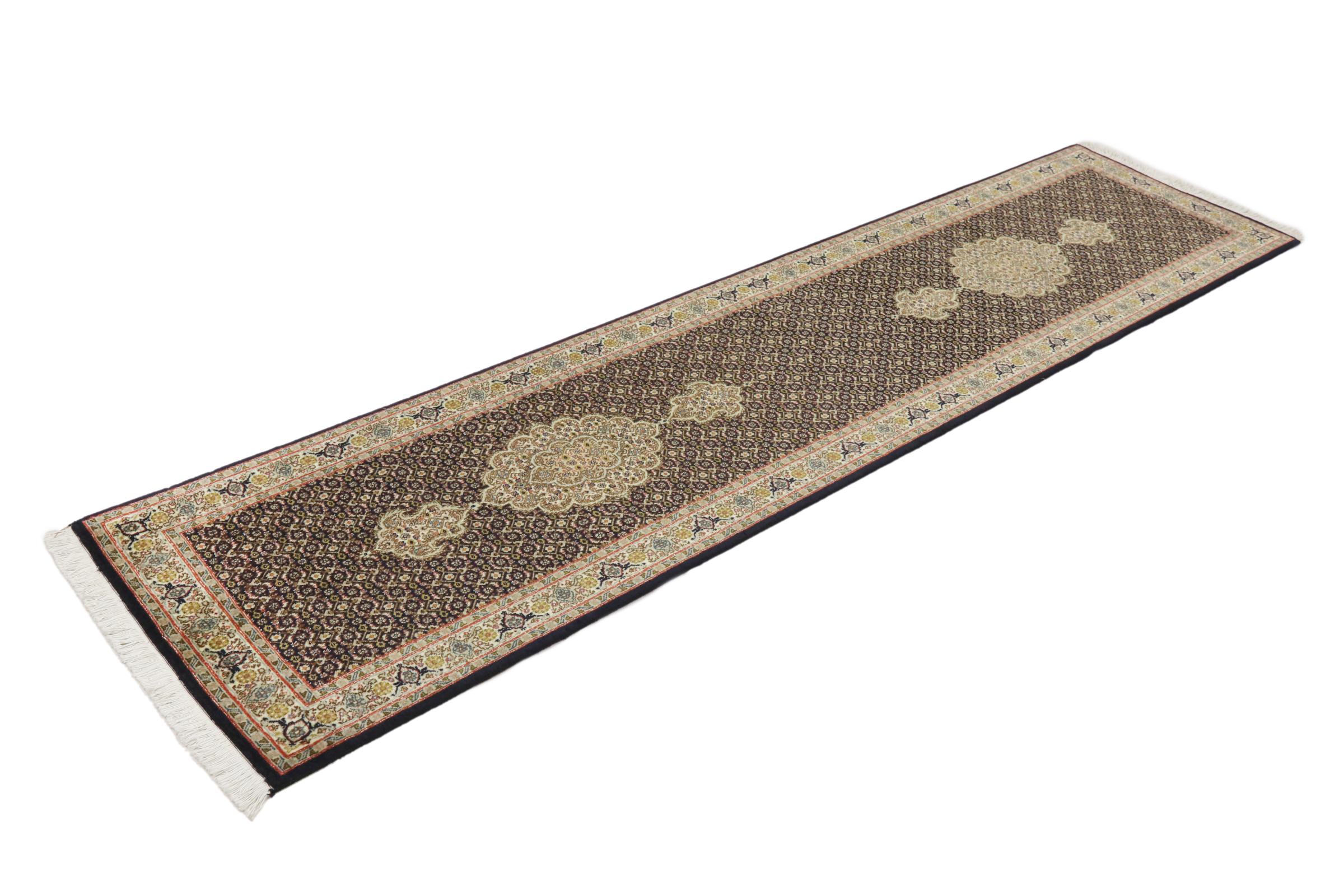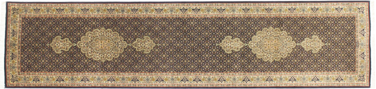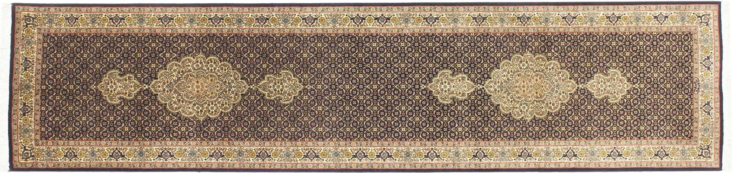 Carpet ID: 181394001597468 Size: 251x59 cm Thickness: ap. 7 mm Knot density: 440 000 - 490 000 / m² Manufacturing: Knotted by hand Pile: Wool with silk Warp: Cotton Origin: Persia Age: New Weight: ap. 4 kg Also know as Tabriz, Tabris, Täbris, Tebriz, Tebris, 40Raj, 50Raj In stock: Unique - Only 1 in stock