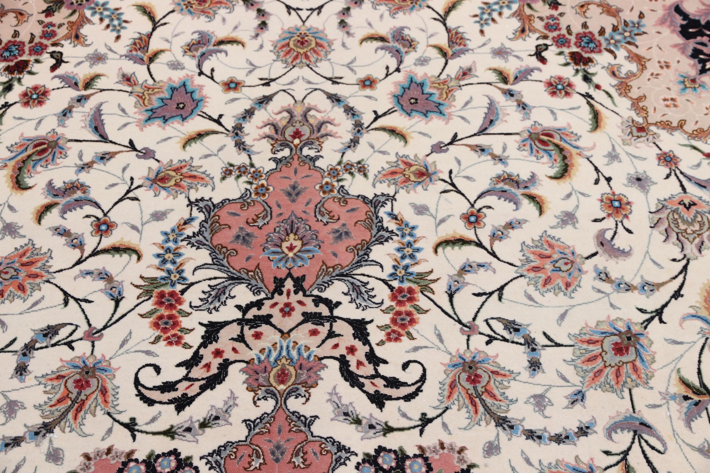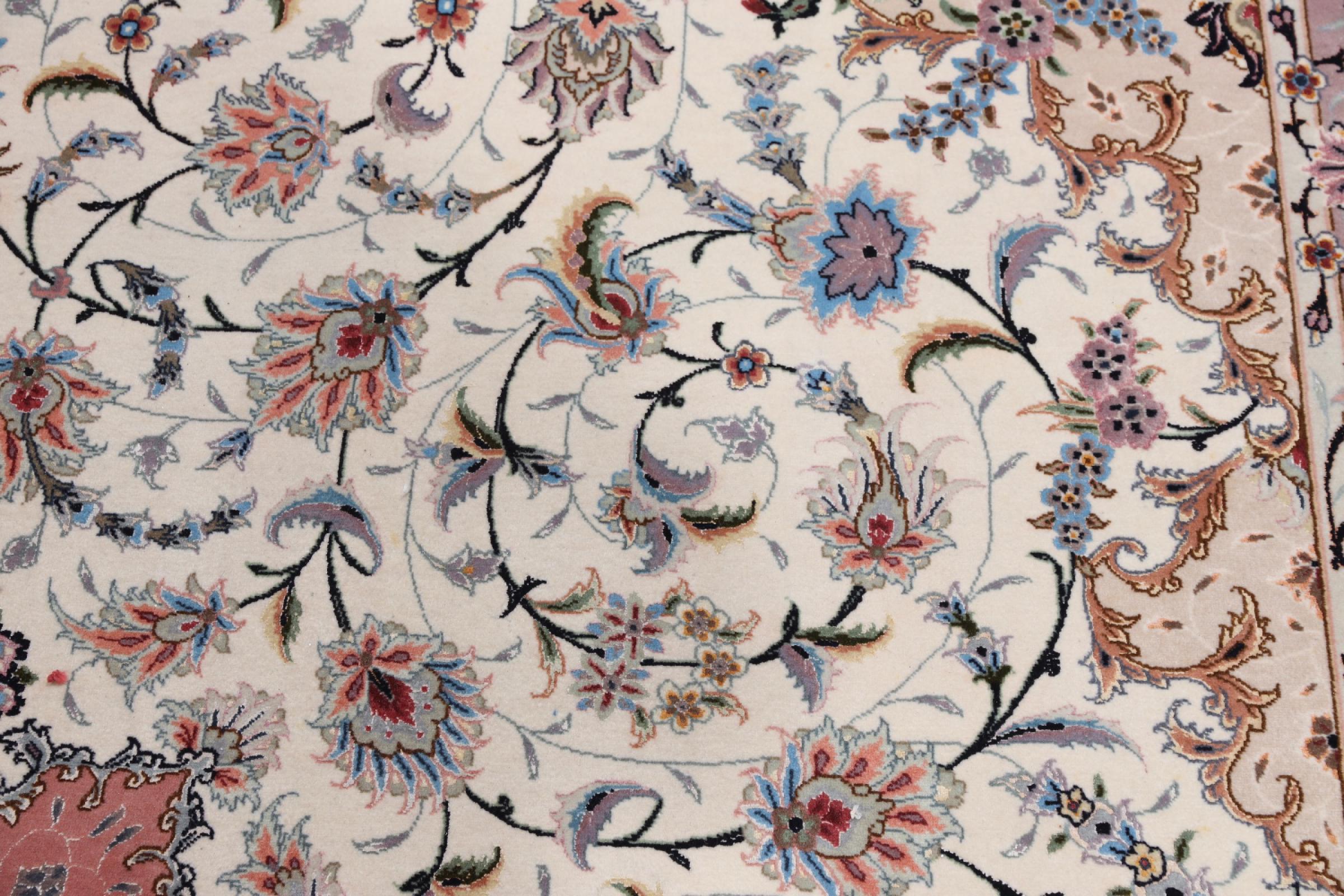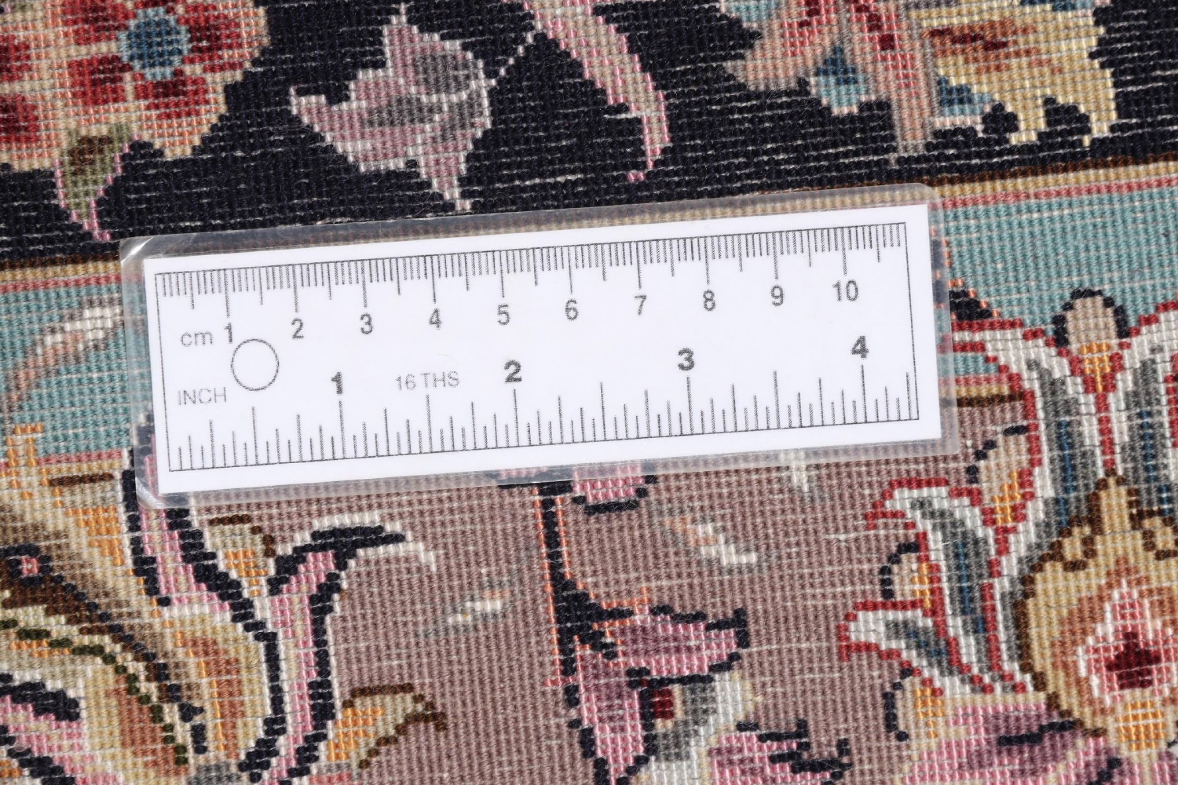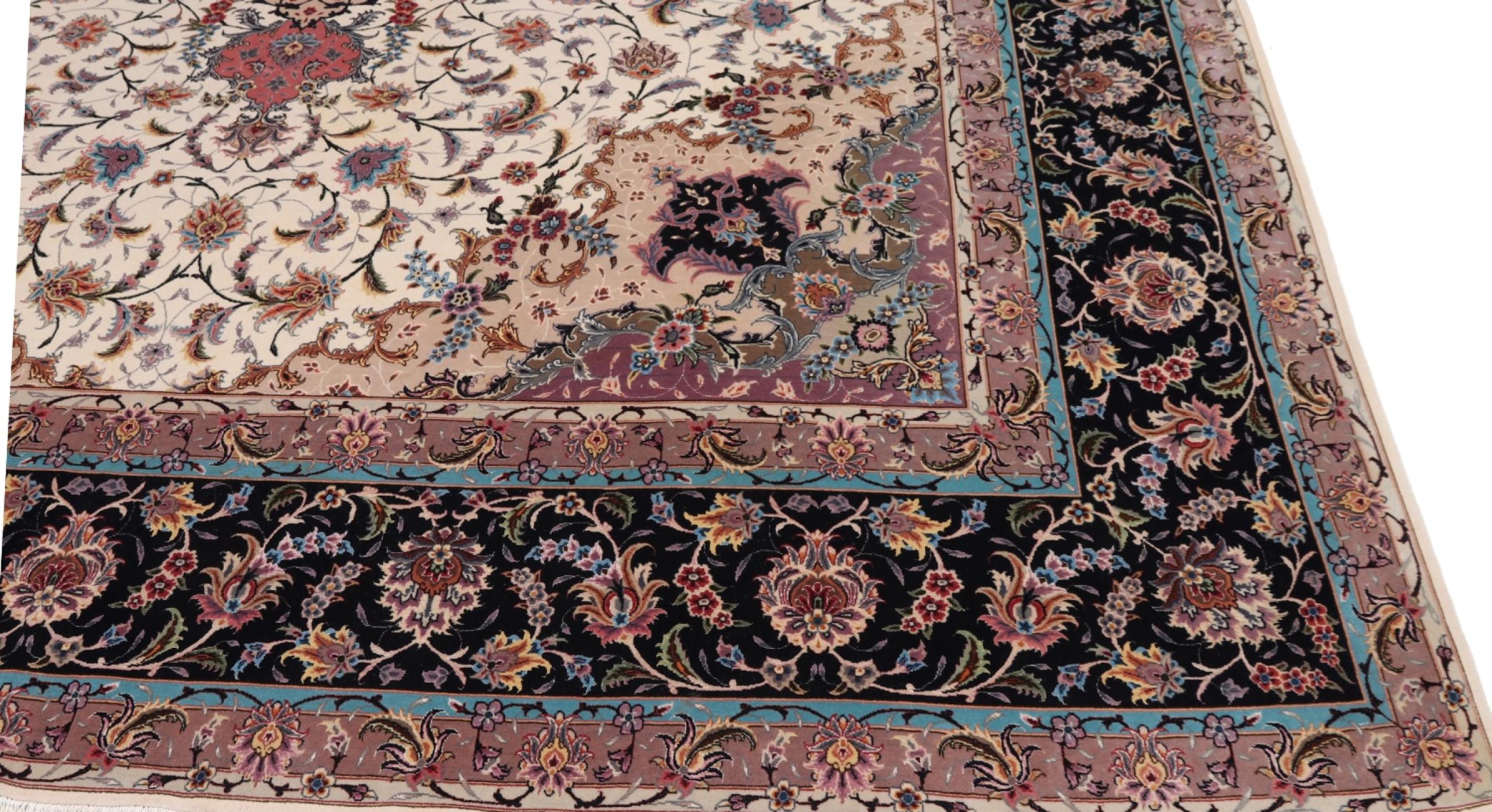 Carpet ID: 291970003759485 Size: 407x291 cm Thickness: ap. 7 mm Knot density: 600 000 / m² Manufacturing: Knotted by hand Pile: Wool with silk Warp: Cotton Origin: Persia Age: New Weight: ap. 36 kg Also know as Tabriz, Tabris, Täbris, Tebriz, Tebris, 40Raj, 50Raj In stock: Unique - Only 1 in stock