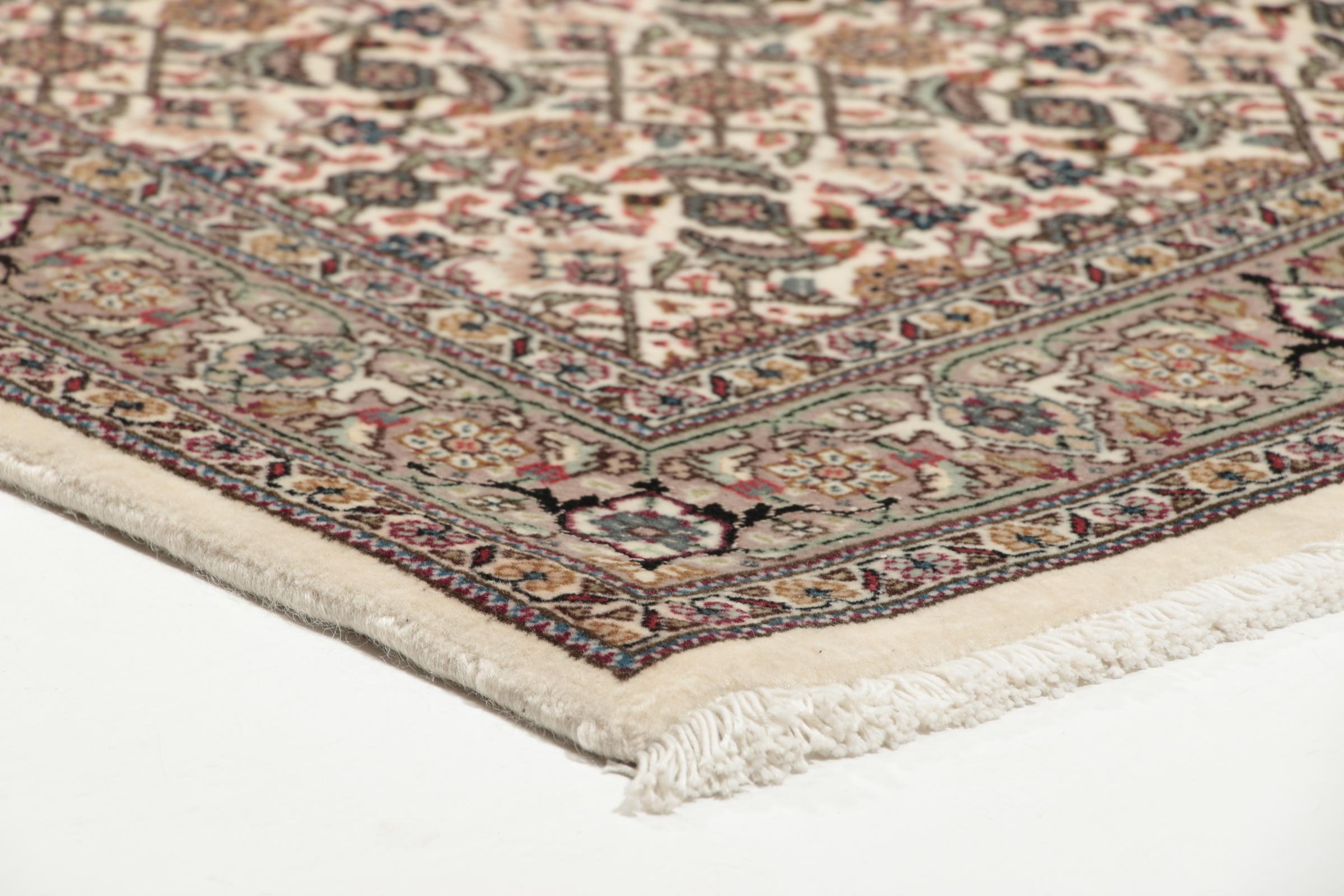 This rug from Tabriz has a traditional look. The Herati or Mahi pattern is one of the most classic designs of all. Anyone who loves traditional design will never want to be without this rug again.