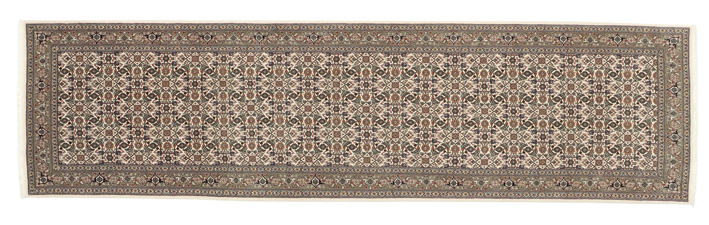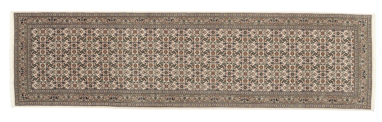 Carpet ID: 219105001137144 Size: 309x82 cm Thickness: ap. 7 mm Knot density: 0 - 7 / m² Manufacturing: Knotted by hand Pile: Wool with silk Warp: Cotton Origin: Persia Age: New Weight: ap. 8 kg Also know as Tabris, Tabriz, Tebris, Tebriz, Täbris In stock: Unique - Only 1 in stock