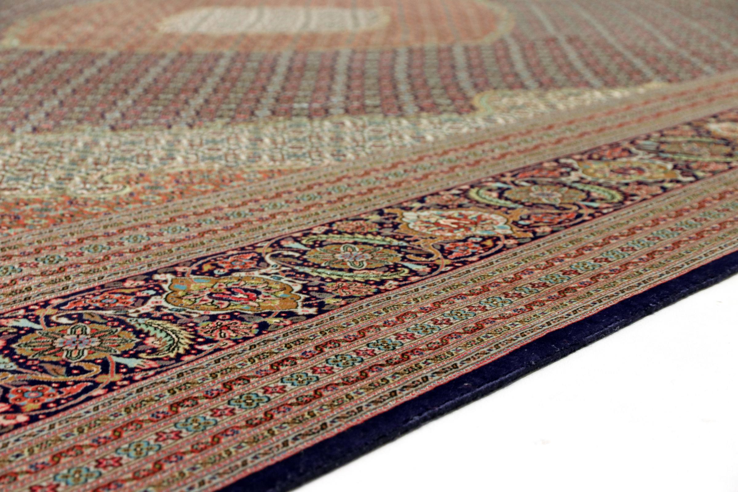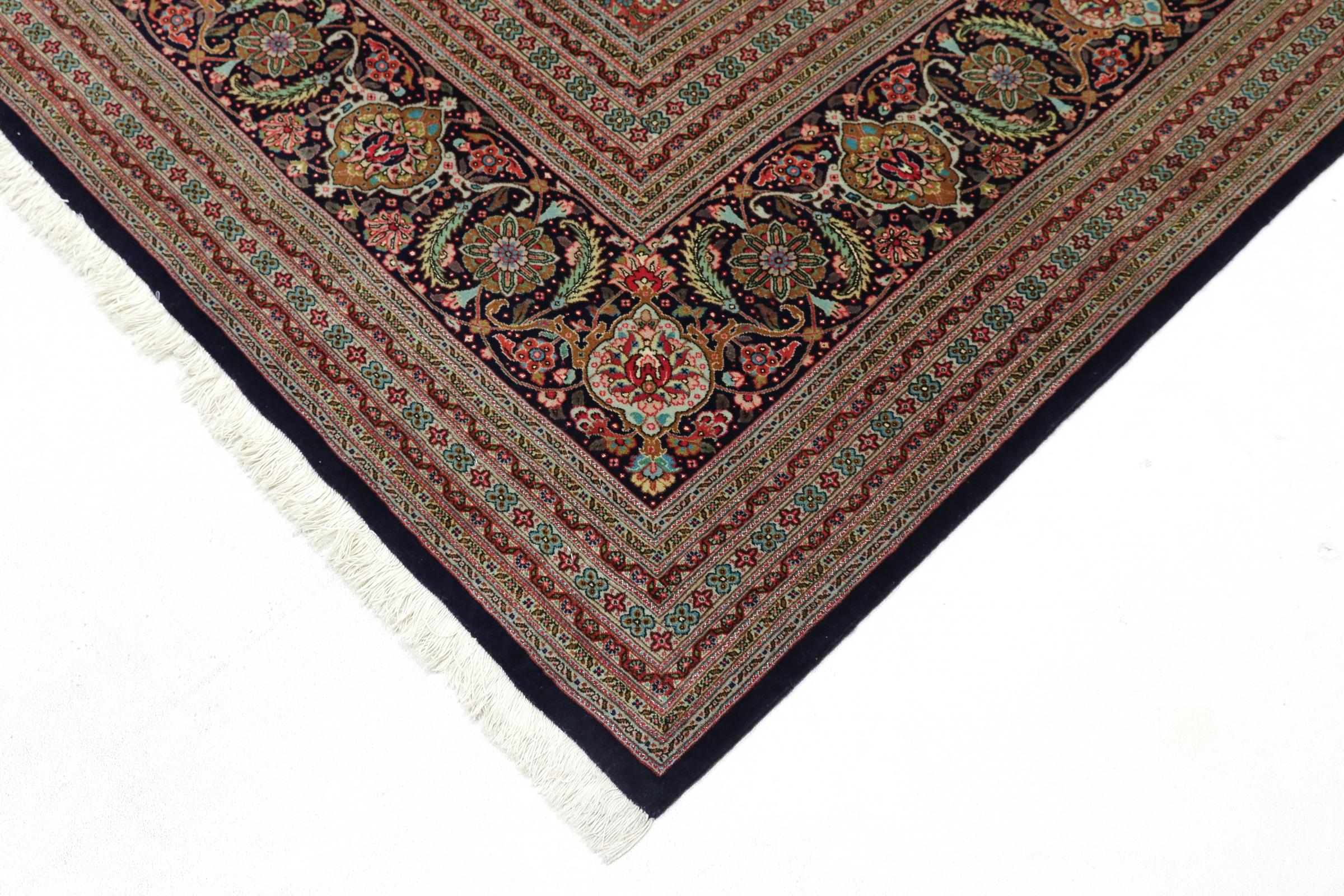 Carpet ID: 106646005225588 Size: 377x289 cm Thickness: ap. 7 mm Knot density: 440 000 - 490 000 / m² Manufacturing: Knotted by hand Pile: Wool with silk Warp: Cotton Origin: Persia Age: New Weight: ap. 33 kg Also know as Tabris, Tabriz, Tebris, Tebriz, Täbris In stock: Unique - Only 1 in stock